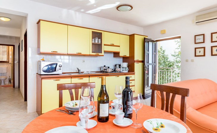 Appartementencomplex "Orhideja". 5 appartementen in de woning. 1 km van het centrum van Rabac, 5 km van het centrum van Labin, tegen een helling, in een woonwijk, 1 km van zee. Voor medegebruik: terrein. Winkel 1 km, supermarkt 5 km, bushalte 1.5 km, kiezelstrand 1 km. Jachthaven 1 km.