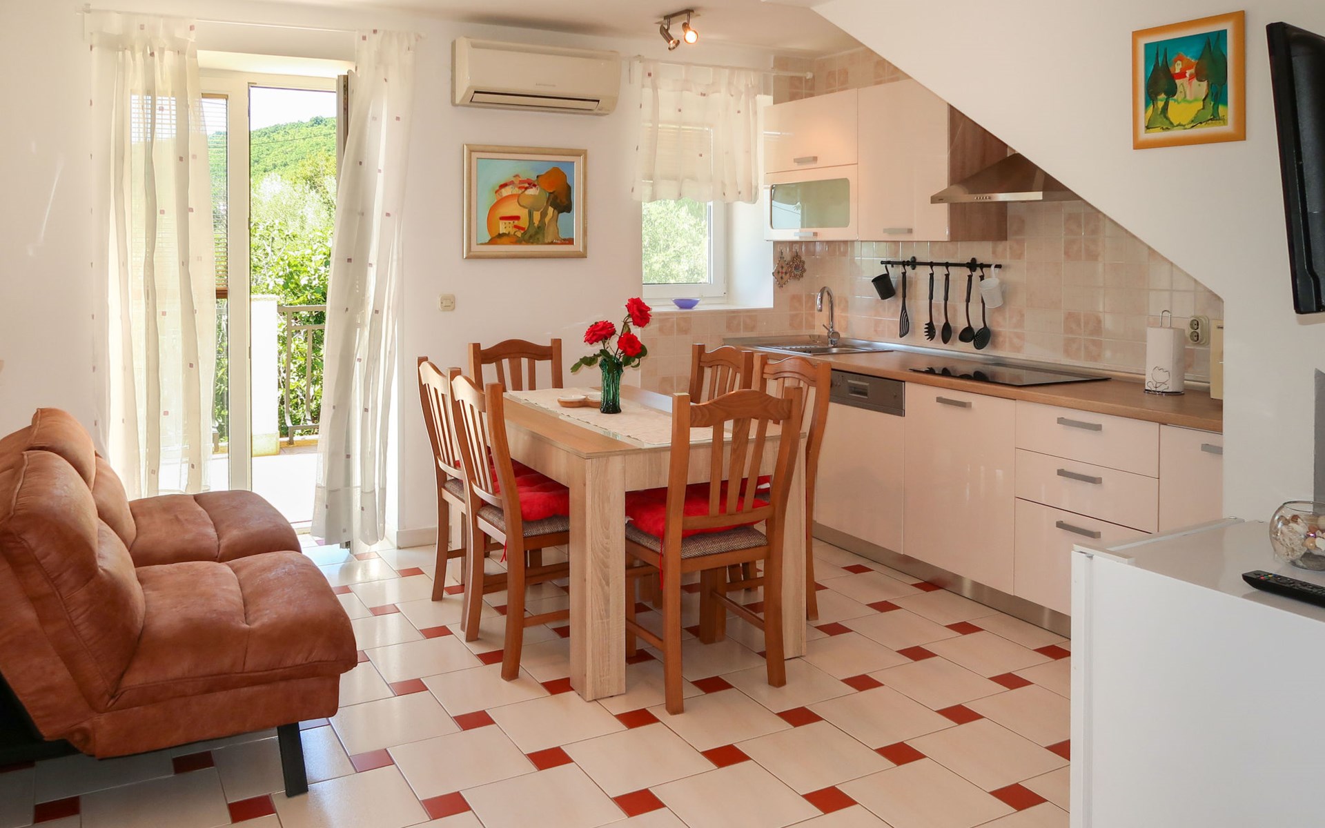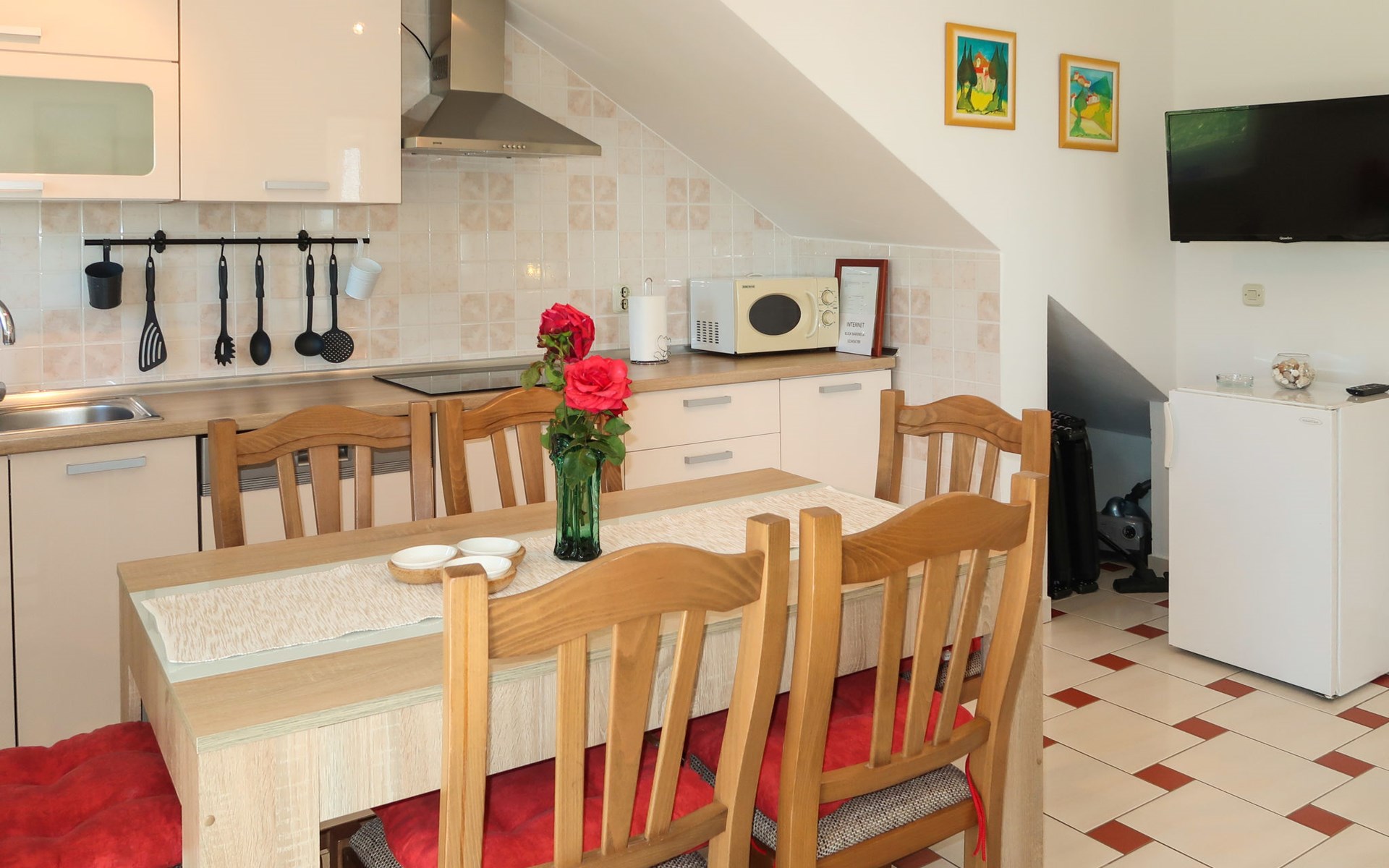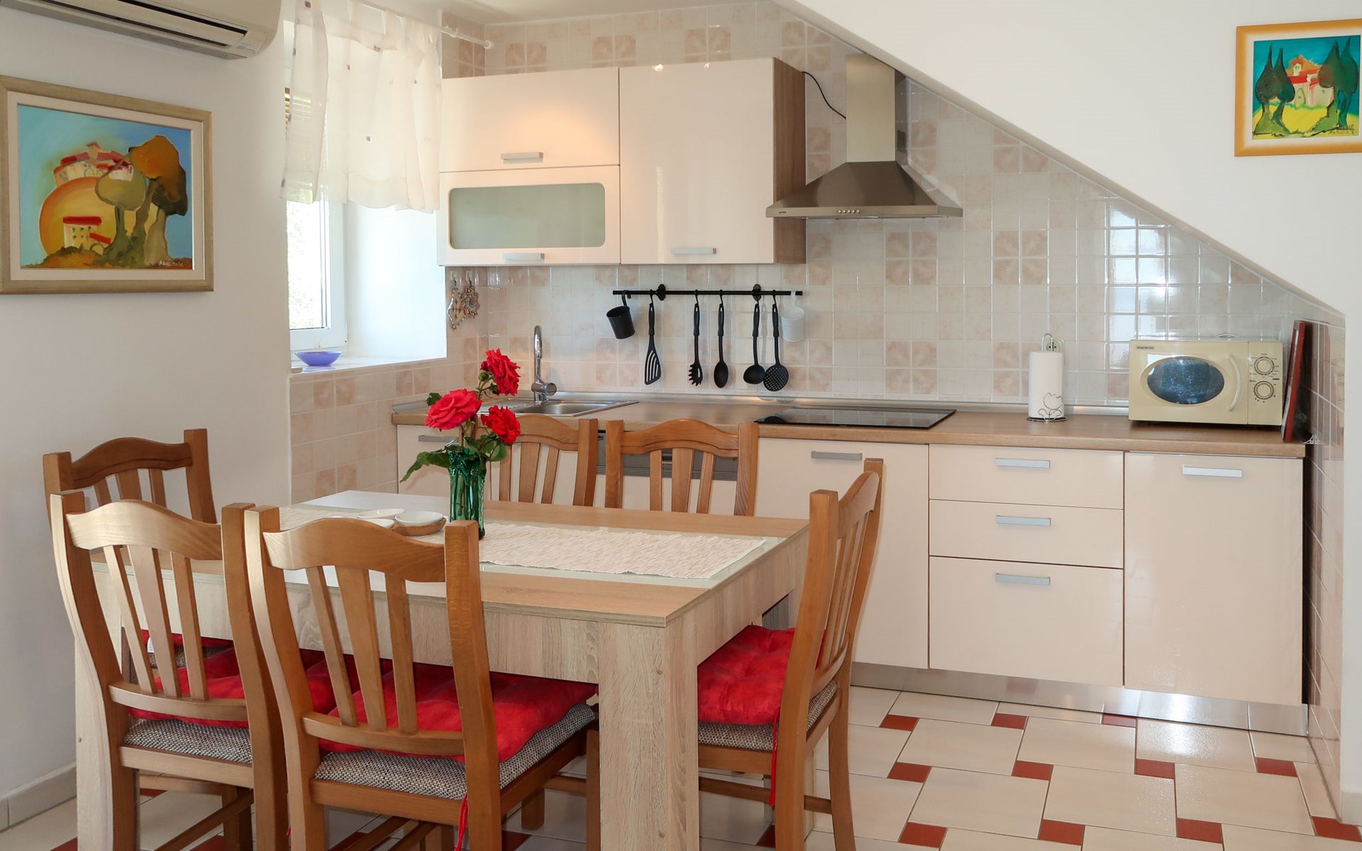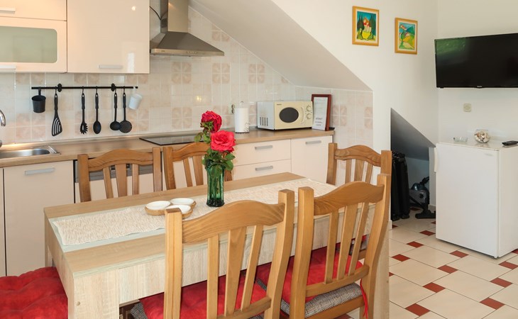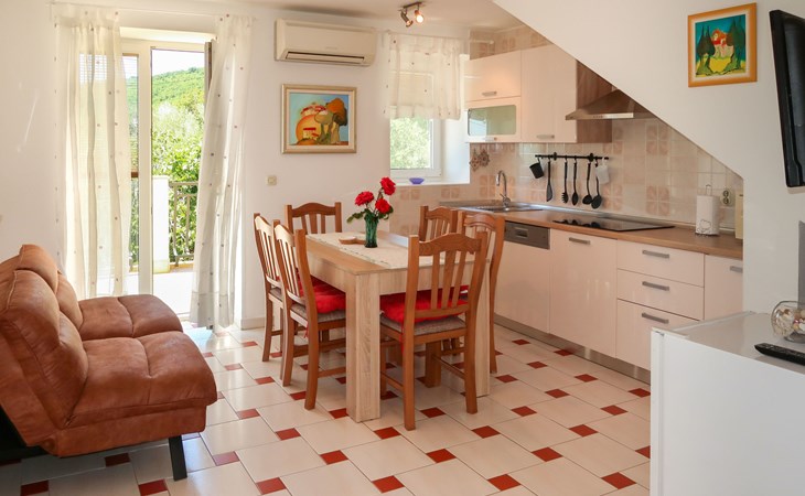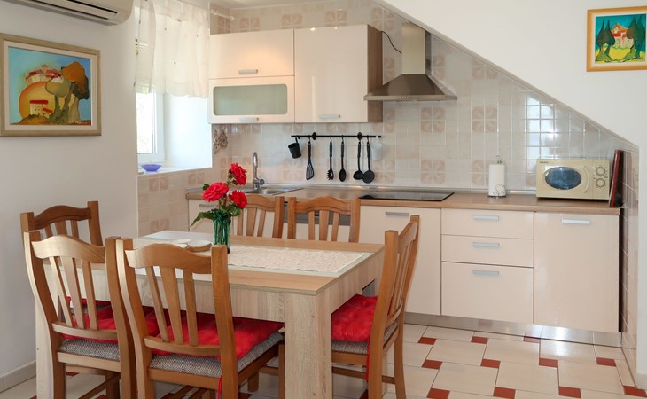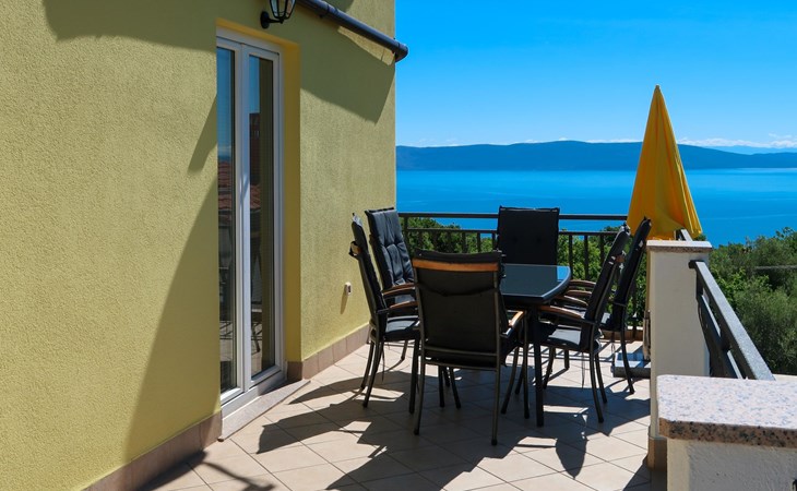 Huis met 3 woningen "Marinella". In het gehucht Crni, 8 km van het centrum van Labin, 2 km van zee, 2 km van het strand. Voor medegebruik: terrein met bomen. Tuinmeubelen, barbecue (schommel). In het huis: internetaansluiting. Parkeerplaats op het terrein. Winkel 2 km, restaurant 2 km, bushalte 8 km, rotsstrand 2 km, duikschool 2 km.