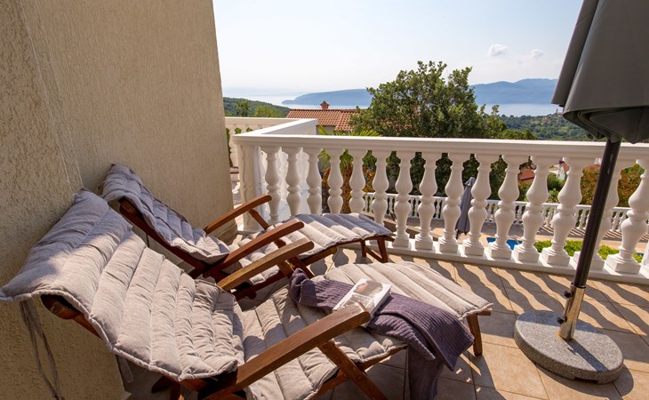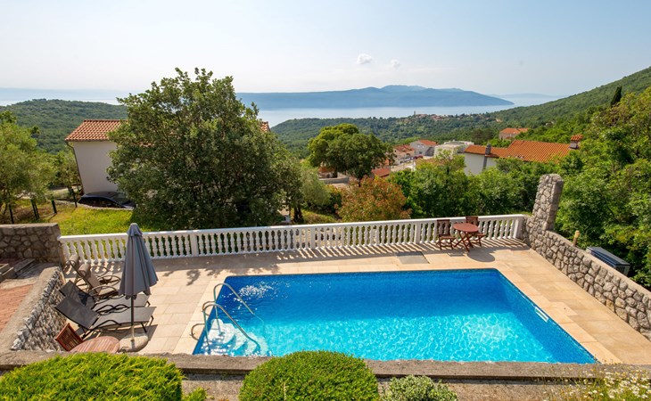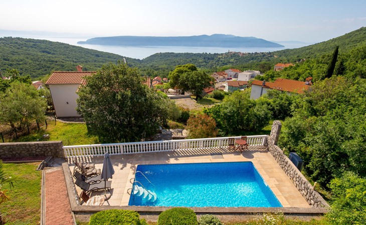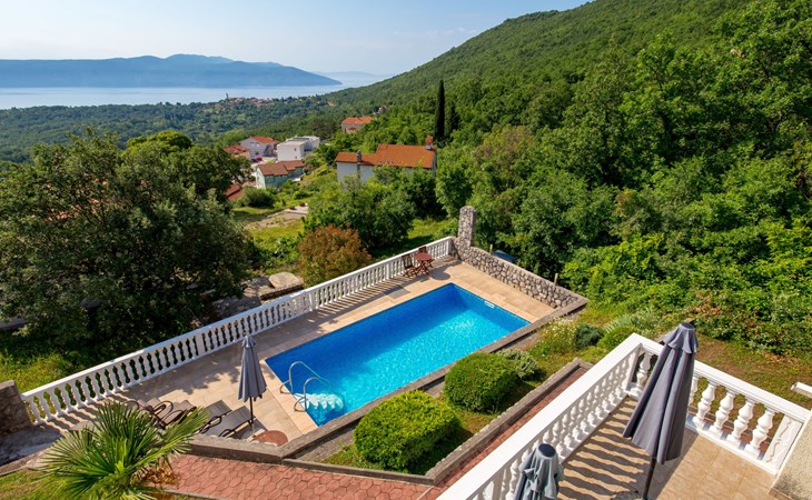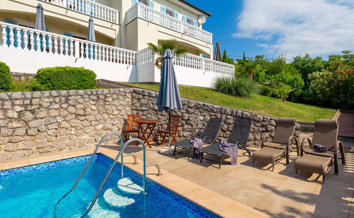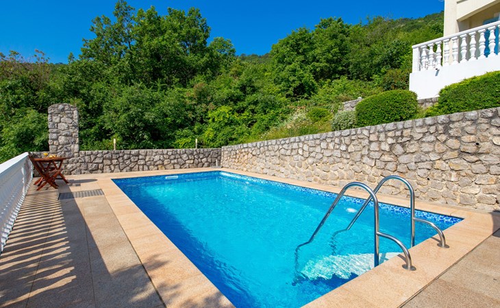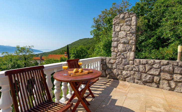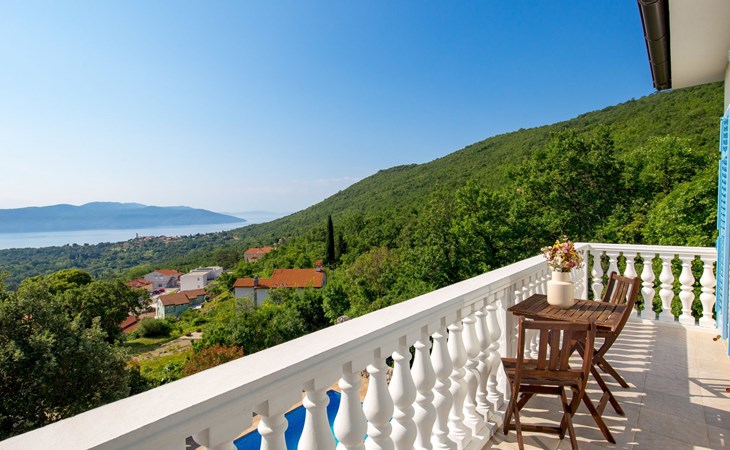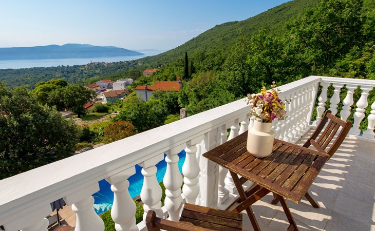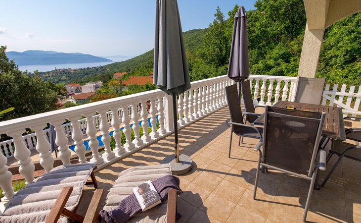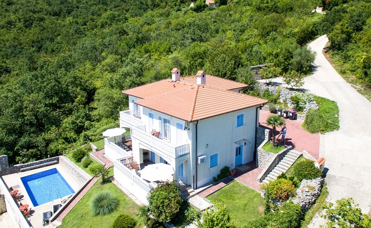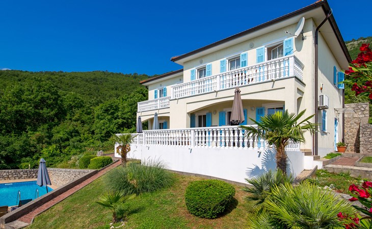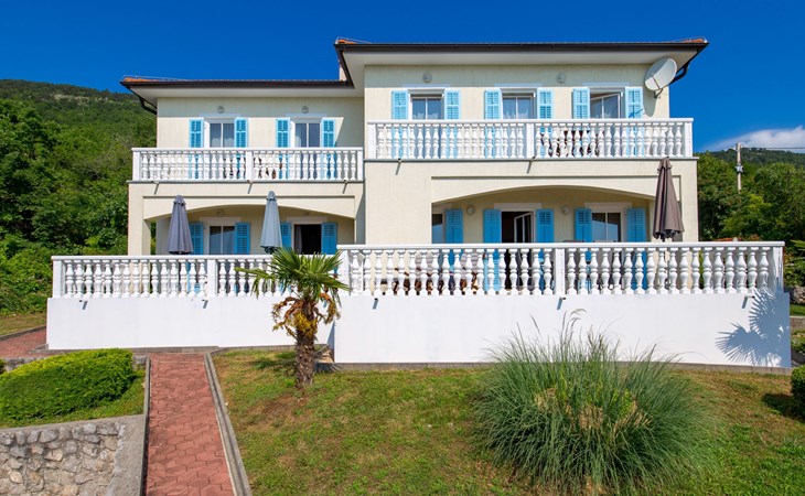 Twee onder één kap woning "Albertina", van 2 verdiepingen. In het gehucht Martina, 2 km van het centrum van Brseč, 8 km van het centrum van Moščenićka Draga, 3.5 km van zee, 3.5 km van het strand. Voor medegebruik: terrein 900 m2 met gazon en planten, openluchtzwembad hoekig (8 x 4 m, 150 cm diepte, seizoensgebonden beschikbaarheid: 01.Mei. - 31.Okt.). Buitendouche, terras, onderhoud zwembad door de eigenaar/tuinman. In het huis: internetaansluiting. 400 m lange steile toegangsweg tot aan het huis. Parkeerplaats op het terrein. Winkel 2 km, restaurant 2 km, bushalte 300 m, kiezelstrand 3.5 km. Groepen jongeren zijn niet toegestaan.