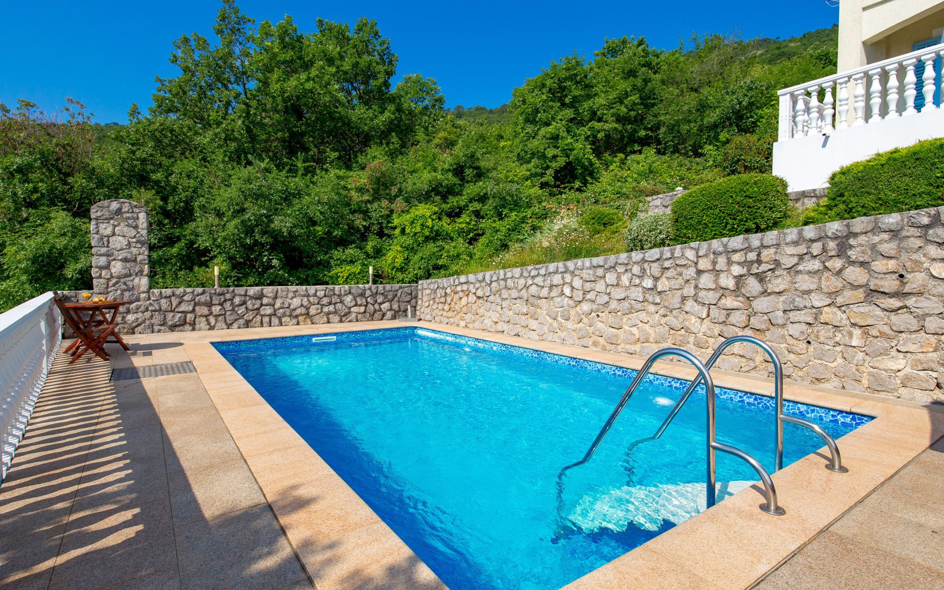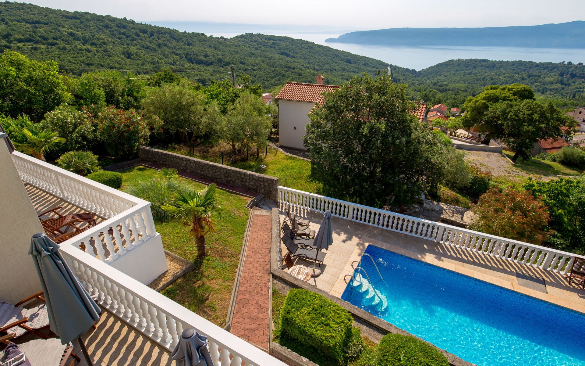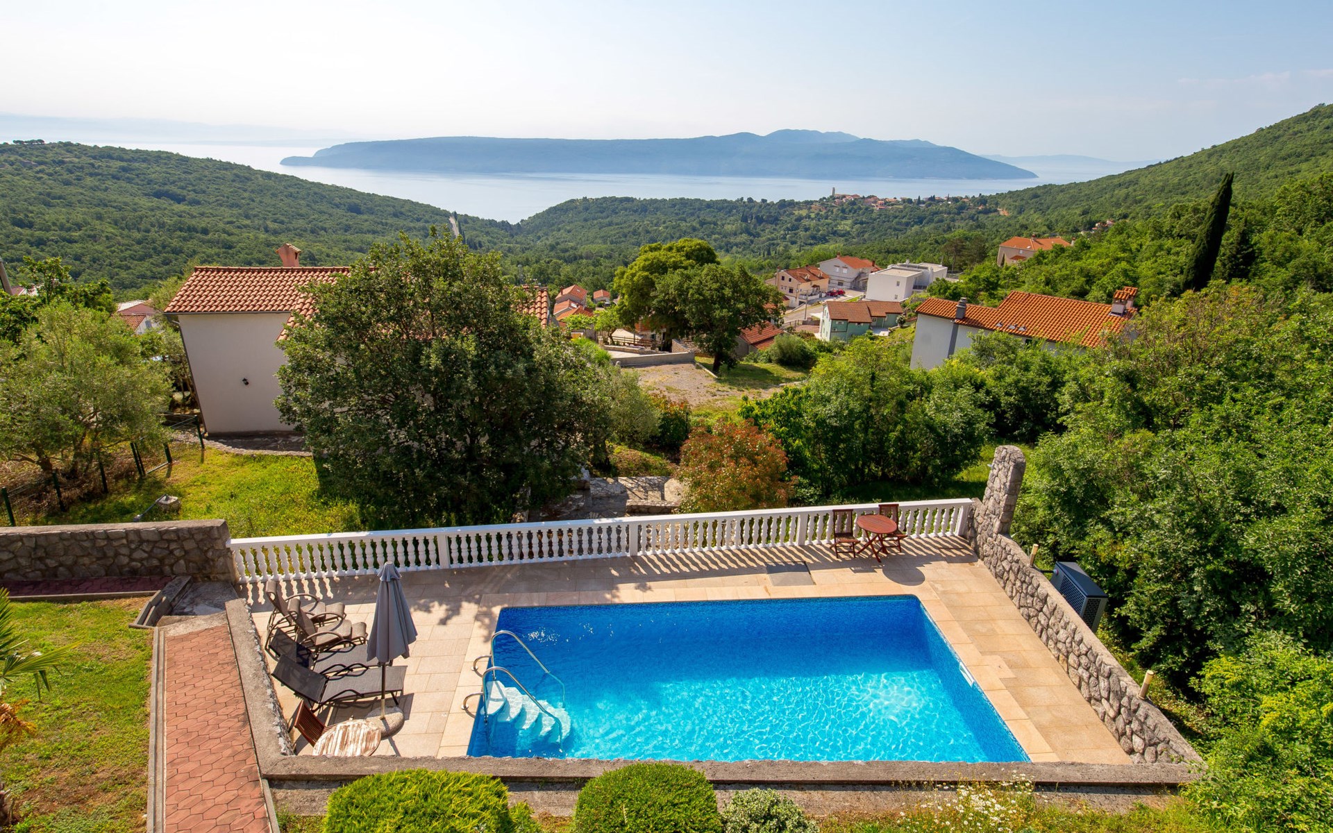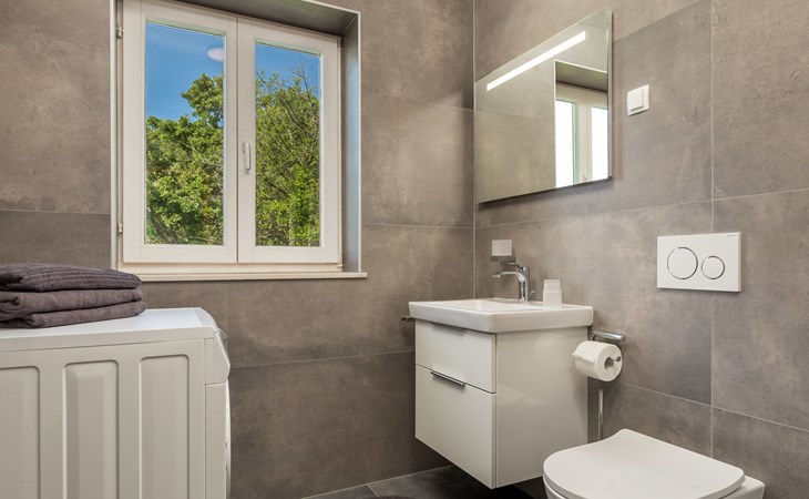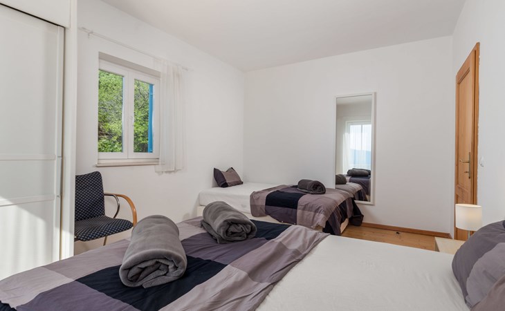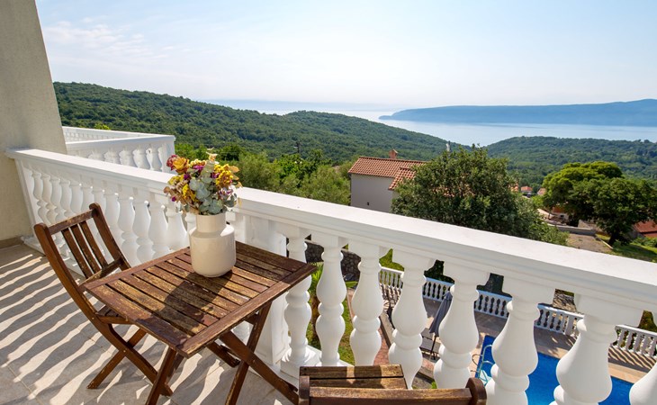 Twee onder één kap woning "Albertina", van 2 verdiepingen. In het gehucht Martina, 2 km van het centrum van Brseč, 8 km van het centrum van Moščenićka Draga, 3.5 km van zee, 3.5 km van het strand. Voor medegebruik: terrein 900 m2 met gazon en planten, openluchtzwembad hoekig (8 x 4 m, 150 cm diepte, seizoensgebonden beschikbaarheid: 01.Mei. - 31.Okt.). Buitendouche, terras, onderhoud zwembad door de eigenaar/tuinman. In het huis: internetaansluiting. 400 m lange steile toegangsweg tot aan het huis. Parkeerplaats op het terrein. Winkel 2 km, restaurant 2 km, bushalte 300 m, kiezelstrand 3.5 km. Groepen jongeren zijn niet toegestaan.