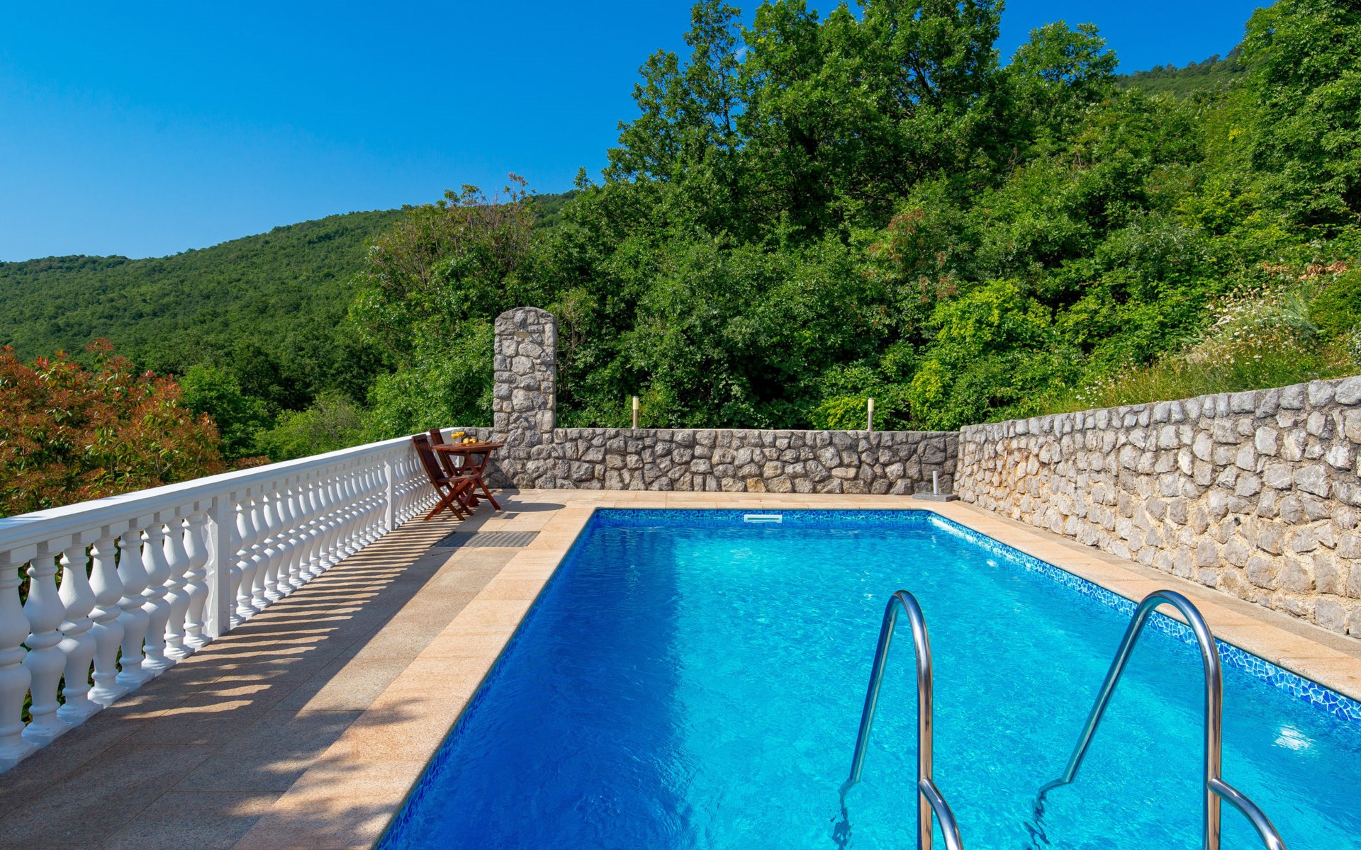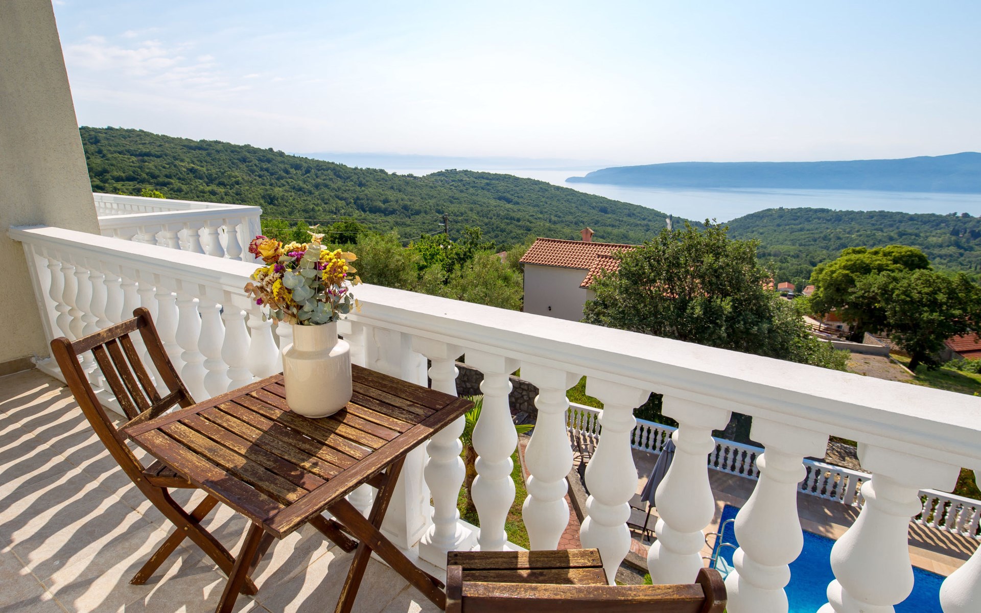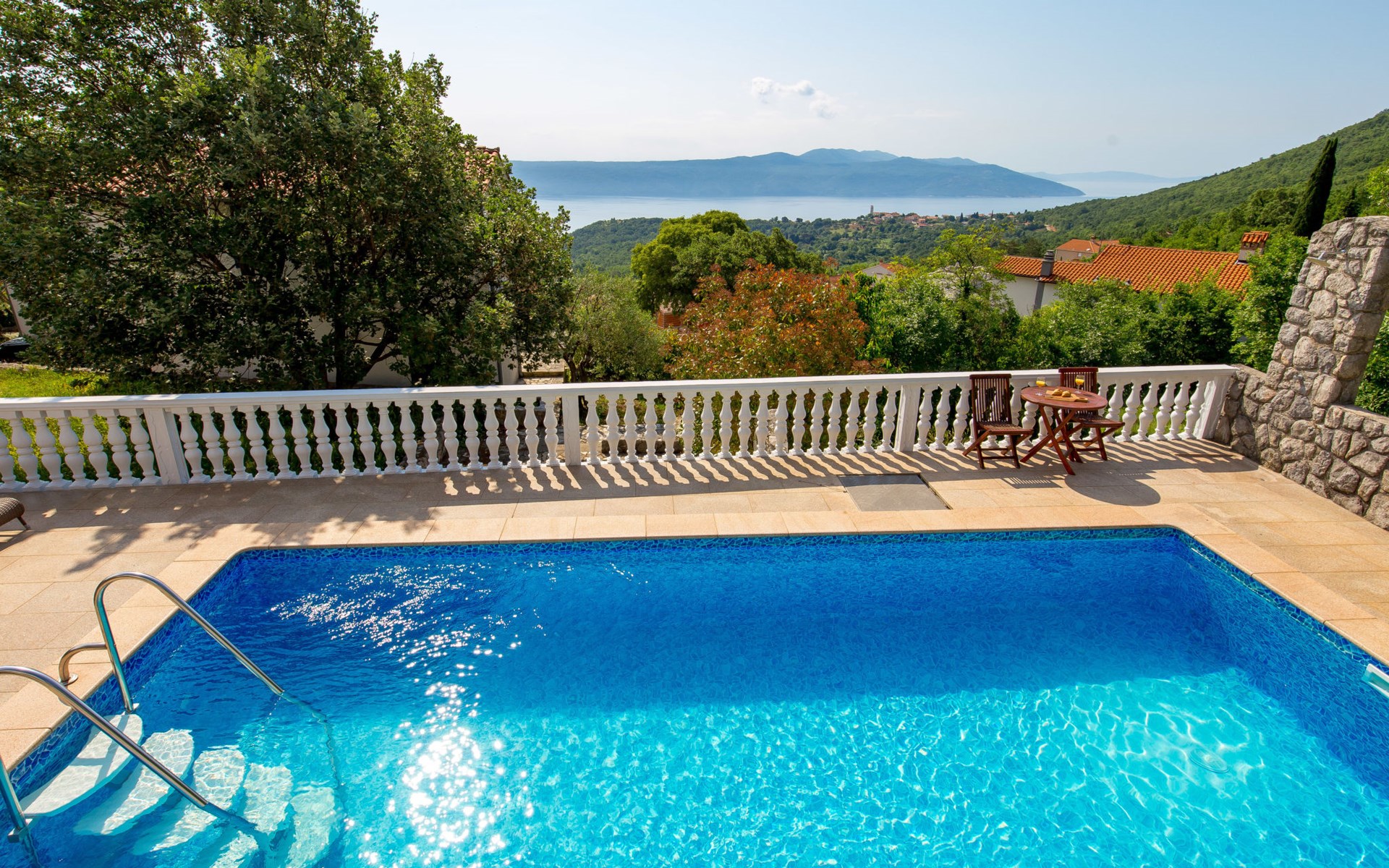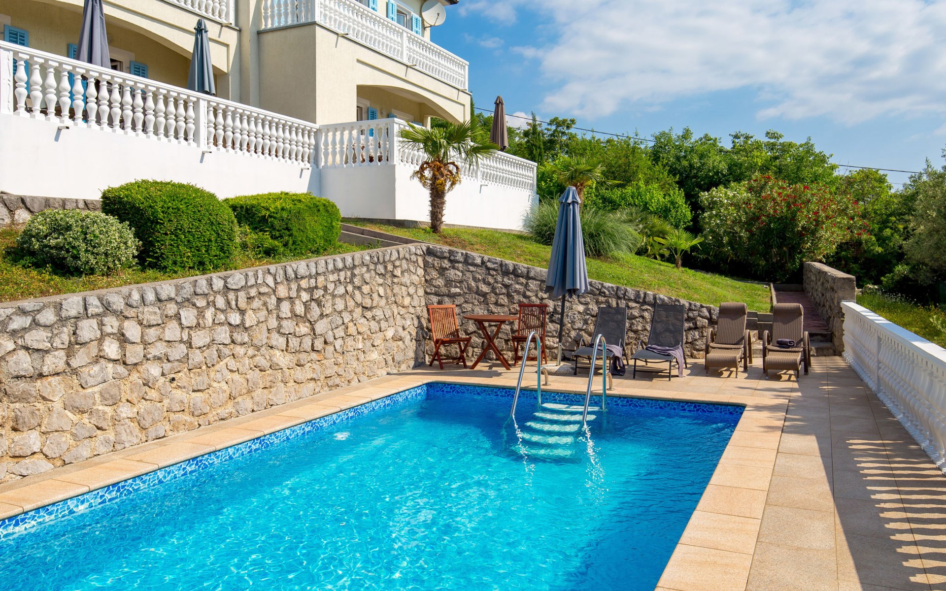 Twee onder één kap woning "Albertina", van 2 verdiepingen. In het gehucht Martina, 2 km van het centrum van Brseč, 8 km van het centrum van Moščenićka Draga, 3.5 km van zee, 3.5 km van het strand. Voor medegebruik: terrein 900 m2 met gazon en planten, openluchtzwembad hoekig (8 x 4 m, 150 cm diepte, seizoensgebonden beschikbaarheid: 01.Mei. - 31.Okt.). Buitendouche, terras, onderhoud zwembad door de eigenaar/tuinman. In het huis: internetaansluiting. 400 m lange steile toegangsweg tot aan het huis. Parkeerplaats op het terrein. Winkel 2 km, restaurant 2 km, bushalte 300 m, kiezelstrand 3.5 km. Groepen jongeren zijn niet toegestaan.