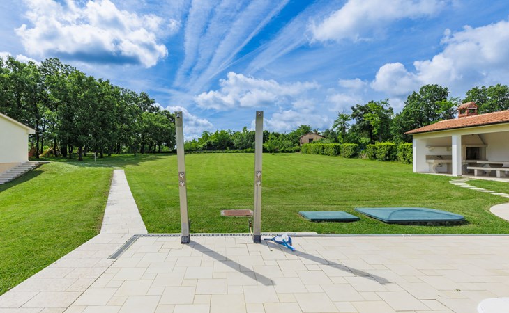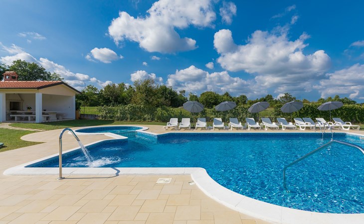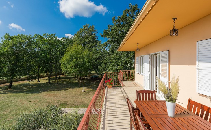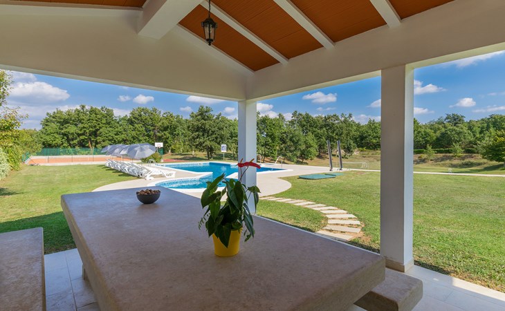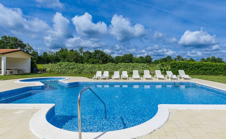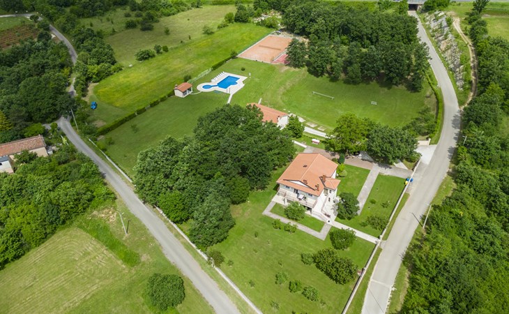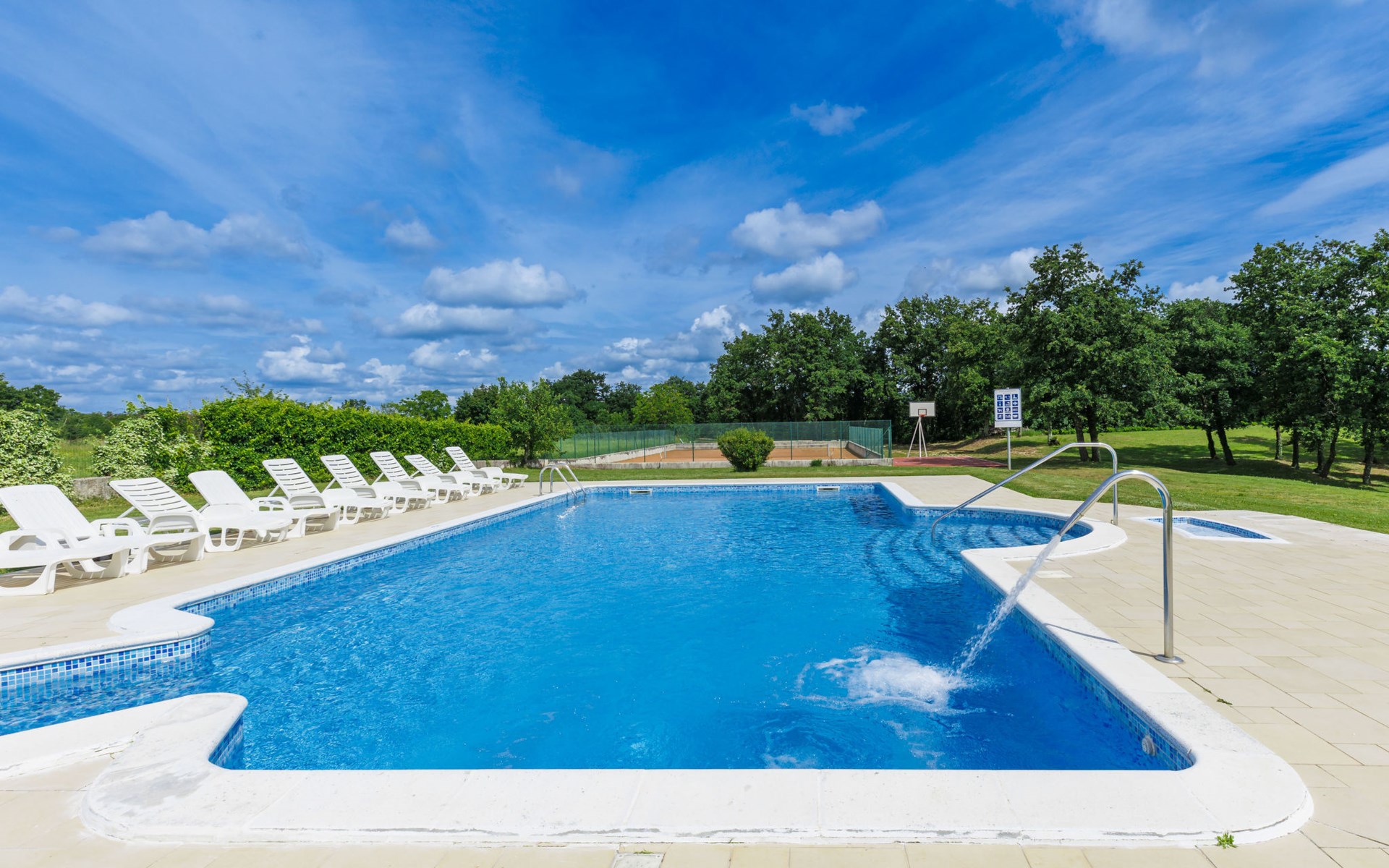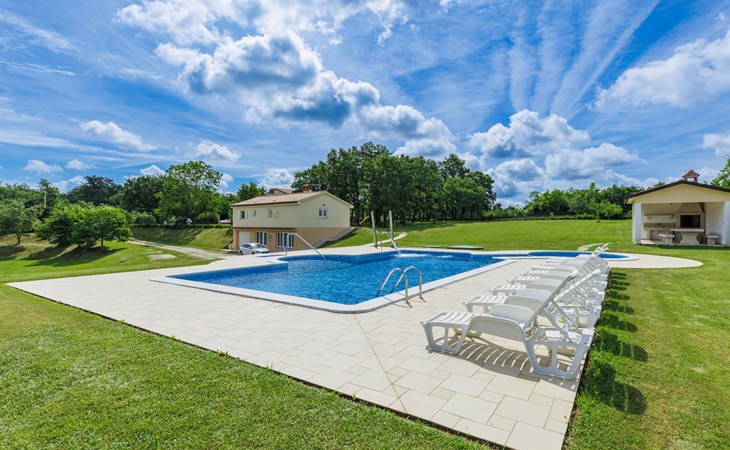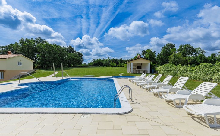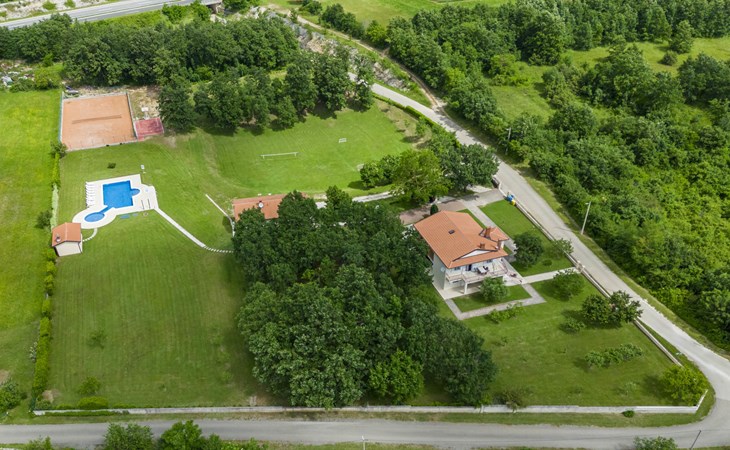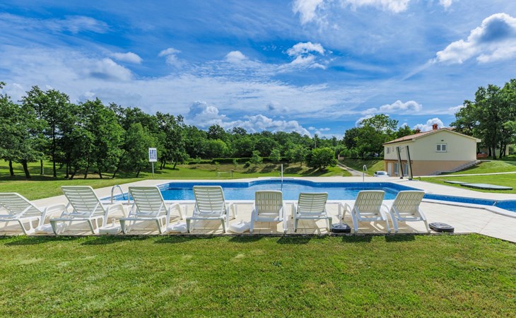 Huis met 3 woningen "Macini". 20 km van het centrum van Rovinj, 6 km van het centrum van Žminj, 33 km van het centrum van Pula, geïsoleerde ligging, 20 km van zee. Voor medegebruik: wild terrein 15.000 m2 met bomen, weide, openluchtzwembad (12 x 6 m, 130 cm diepte, seizoensgebonden beschikbaarheid: 04.Apr. - 06.Nov.). Buitendouche, tennisbaan, basketbal, volleybal, volleybalveld, tuinmeubelen (glijbaan, schommel). In het huis: internetaansluiting. Parkeerplaats op het terrein. Winkel 4 km, restaurant 6 km, bushalte 2.3 km, kiezelstrand 20 km. Jachthaven 20 km.