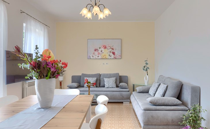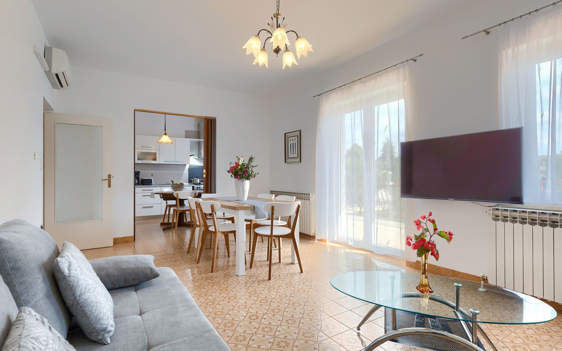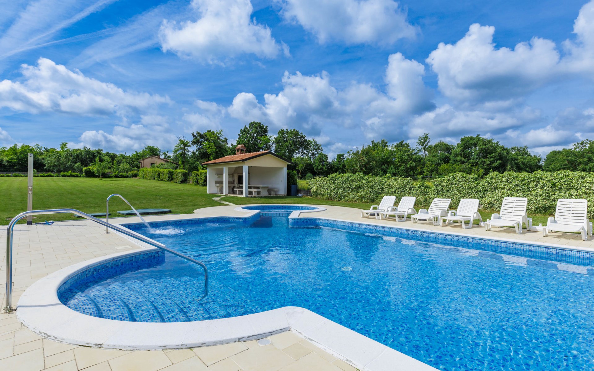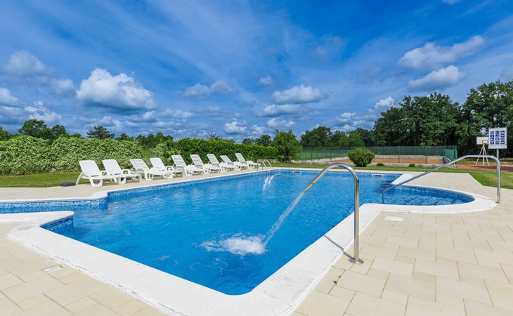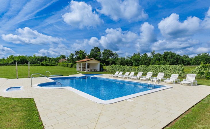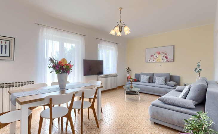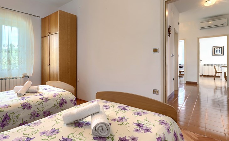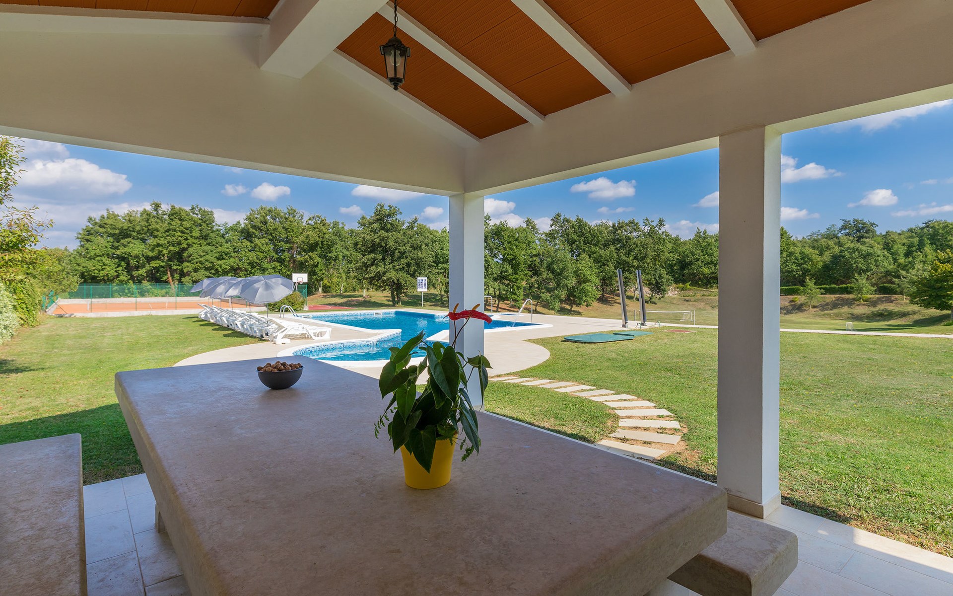 Huis met 3 woningen "Macini". 20 km van het centrum van Rovinj, 6 km van het centrum van Žminj, 33 km van het centrum van Pula, geïsoleerde ligging, 20 km van zee. Voor medegebruik: wild terrein 15.000 m2 met bomen, weide, openluchtzwembad (12 x 6 m, 130 cm diepte, seizoensgebonden beschikbaarheid: 04.Apr. - 06.Nov.). Buitendouche, tennisbaan, basketbal, volleybal, volleybalveld, tuinmeubelen (glijbaan, schommel). In het huis: internetaansluiting. Parkeerplaats op het terrein. Winkel 4 km, restaurant 6 km, bushalte 2.3 km, kiezelstrand 20 km. Jachthaven 20 km.