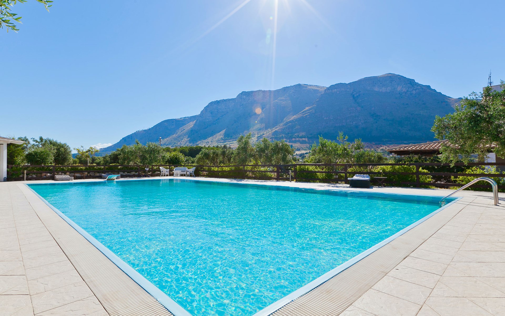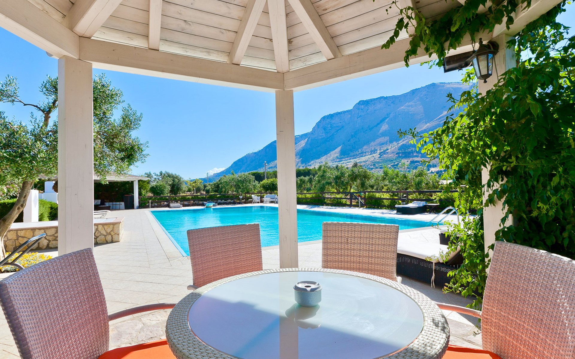 Villa "Tenute Aversa", omgeven door velden. 5 km van het centrum van Castellammare del Golfo, 14 km van het centrum van Scopello, rustige, zonnige ligging villa wijk, 6 km van zee. Voor alleengebruik: terrein 10.000 m2, openluchtzwembad (10 x 20 m, 120 - 280 cm diepte, seizoensgebonden beschikbaarheid: 01.Apr. - 31.Okt.). WC bij het zwembad, buitendouche, tuinmeubelen, barbecue, onderhoud zwembad door de eigenaar/tuinman. In het huis: tafeltennis, biljart, tafelvoetbal. Parkeerplaats op het terrein. Levensmiddelenwinkel 4 km, supermarkt 4 km, restaurant 4 km, bar 4 km, bushalte 15 km, zandstrand "Castellammare del Golfo" 5.5 km. Attracties in de buurt: Segesta Parco Archeologico 12 km, Erice 40 km, Trapani/Aliscafi per Isole Egadi 45 km, San Vito lo Capo 48 km, Marsala/Saline 55 km, Palermo 65 km. Auto noodzakelijk.