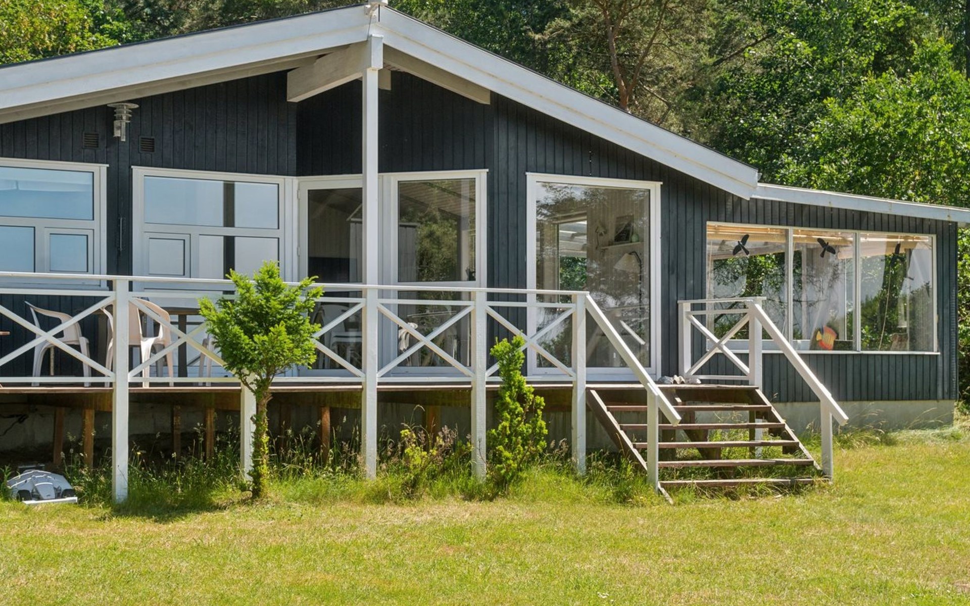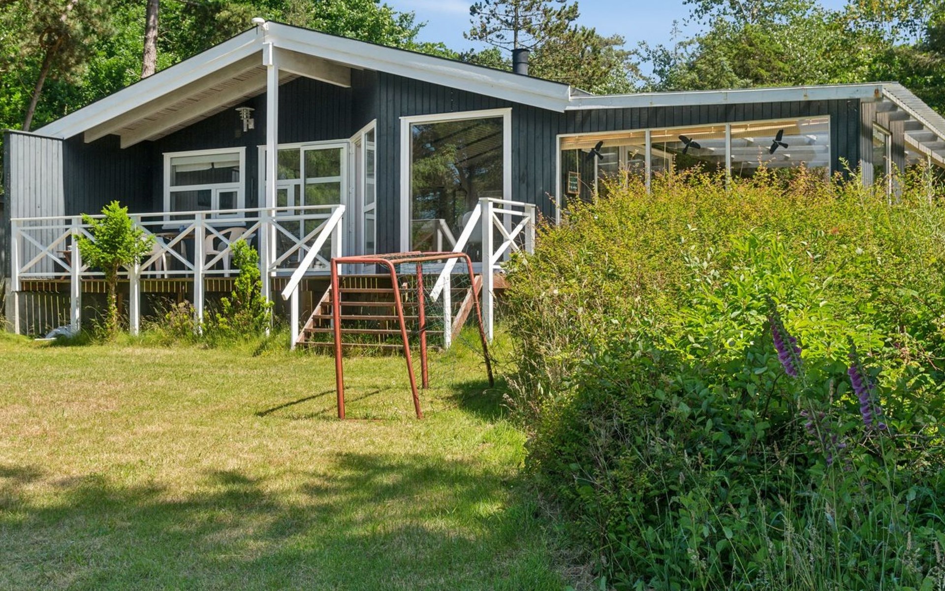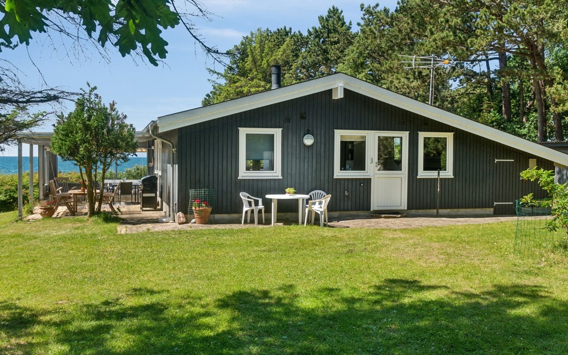Eengezinswoning, bouwjaar 1991. 30 m van zee. Voor alleengebruik: terrein 5.516 m2, verzorgde tuin. Terras (6 m2), barbecue. In het huis: trampoline, wasmachine. Parkeerplaats bij het huis. Levensmiddelenwinkel 4.2 km. Golfterrein 3.7 km. De eigenaar accepteert geen jeugdgroepen.
