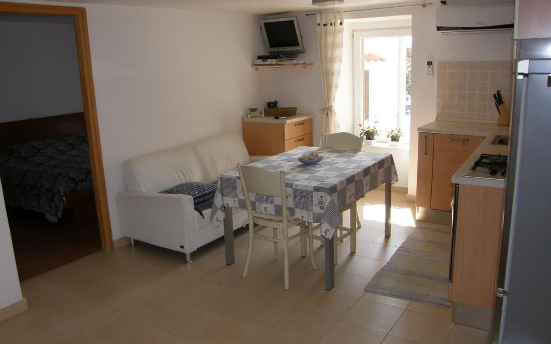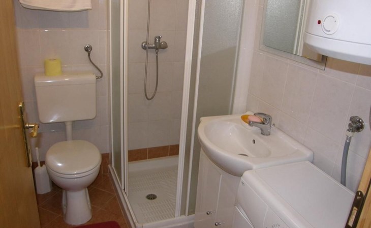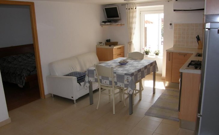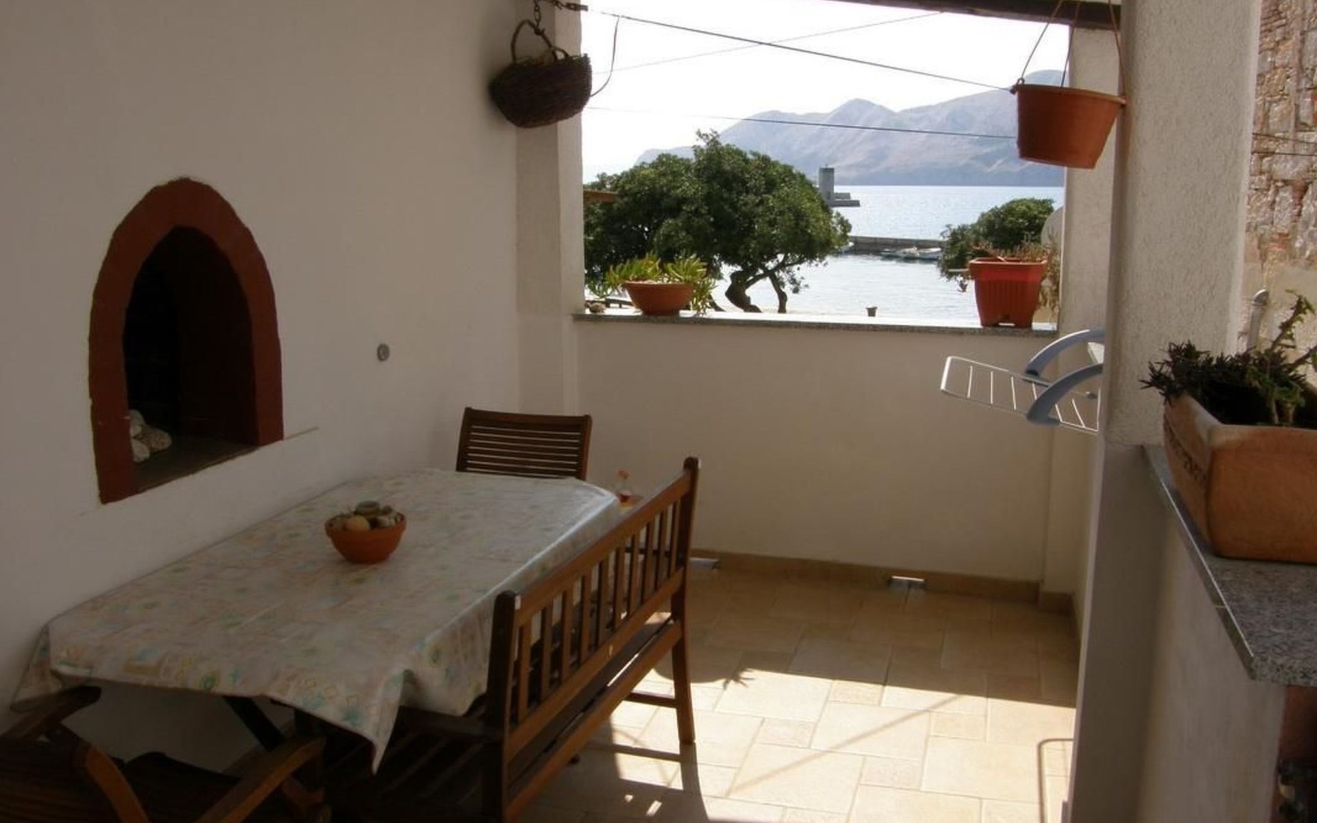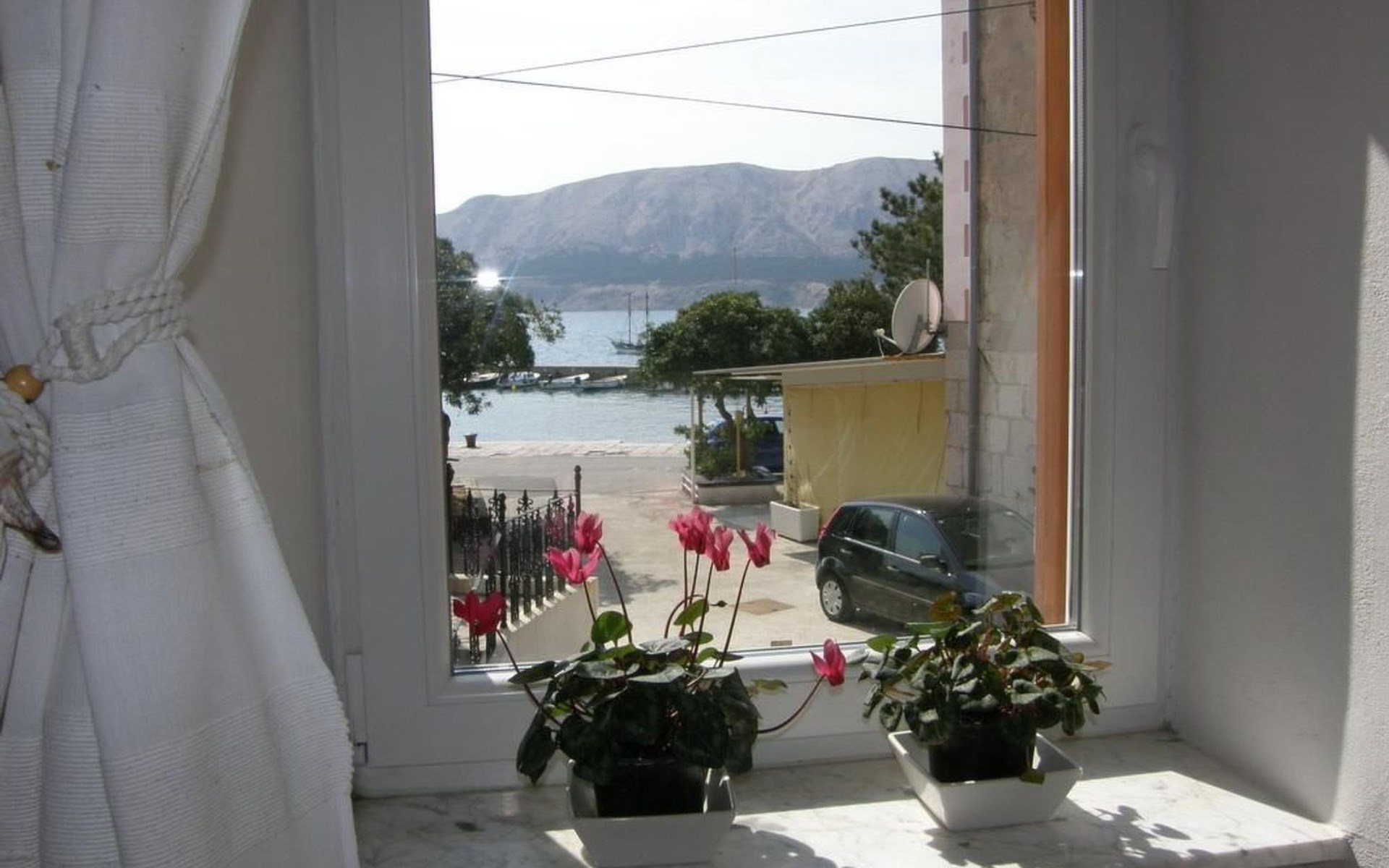 House HARAMINA flat is located in the old town of Baska, partly sea view, air-conditioned and almost directly by the sea. Parking is about 200 metres from the flat. No. of persons: 2-4 Places: 35 m2 (1st floor) Info: Satellite TV, bed linen is provided once a week, towels available (1 large, 1 small / per person and week), washing machine in the flat, use of air conditioning is included in the price of accommodation, pets are not allowed. Environment: car park secured nearby at no extra charge. Flat features: bedroom : double room , french bed living area : living room, dining room and kitchen are one unit ; dining table and seating for all persons ; two additional sleeping possibilities on a sofa bed ; with terrace ; tiled kitchen : kitchenette, crockery, cooking pots, cutlery, etc. are available, dishes, cutlery, etc. are provided.dishes, pots and pans, cutlery, etc. available, dish towels available, electric/gas hob, no. of hotplates: 4, oven, refrigerator with freezer compartment, coffee machine, dishwasher Bathroom : bath with WC, with shower Terrace : private terrace, covered terrace, terrace with sea view, table and chairs for the terrace are available. Please bring your own sunbeds and other equipment, terrace area: 10sqmFlat is located in the old town of Baska, partial sea view, air-conditioned and almost directly by the sea. Parking is about 200 metres from the flat.