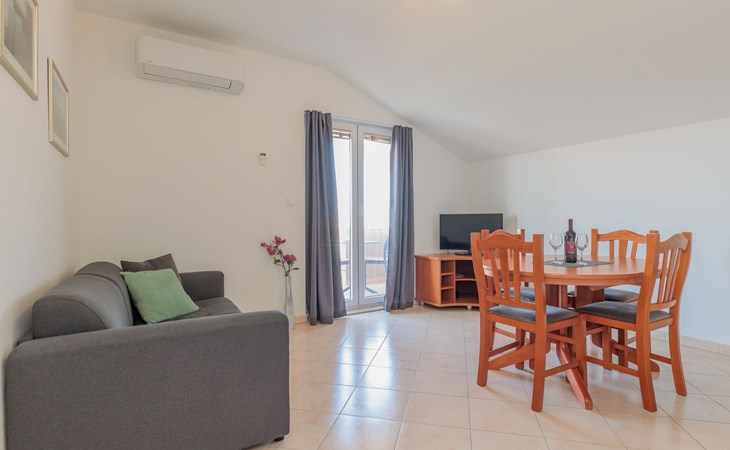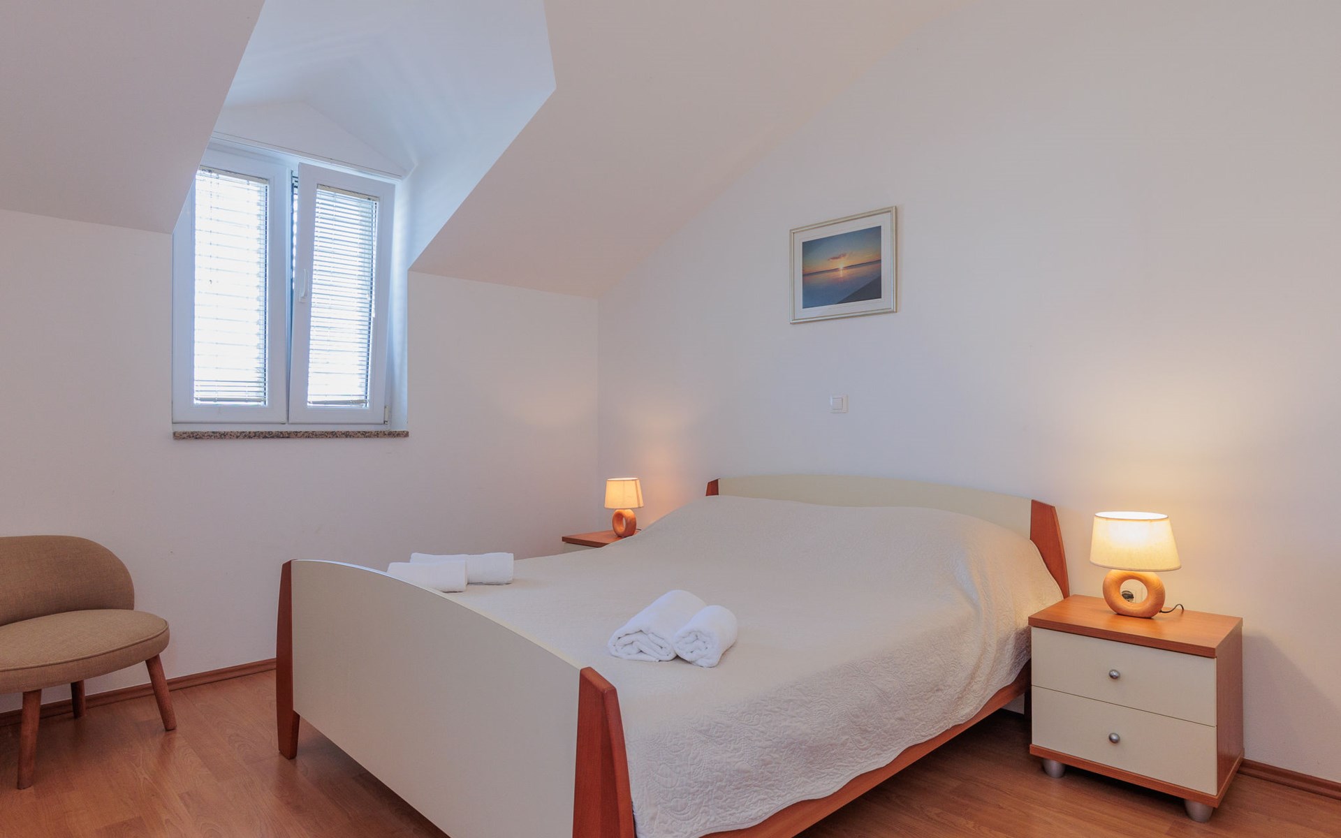 Appartementencomplex "Irena". 200 m van het centrum van Privlaka, 5 km van het centrum van Nin, 23 km van het centrum van Zadar, 250 m van zee, 250 m van het strand. Voor medegebruik: terrein 500 m2, tuin met bomen. Barbecue. In het huis: internetaansluiting. Parkeerplaats op het terrein. Winkel, restaurant 200 m, bushalte 4.6 km, zandstrand 300 m, rotsstrand 250 m. Vliegveld 30 km van het huis.