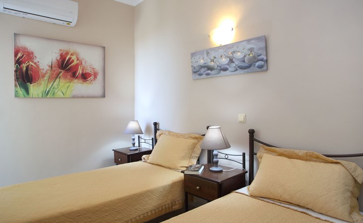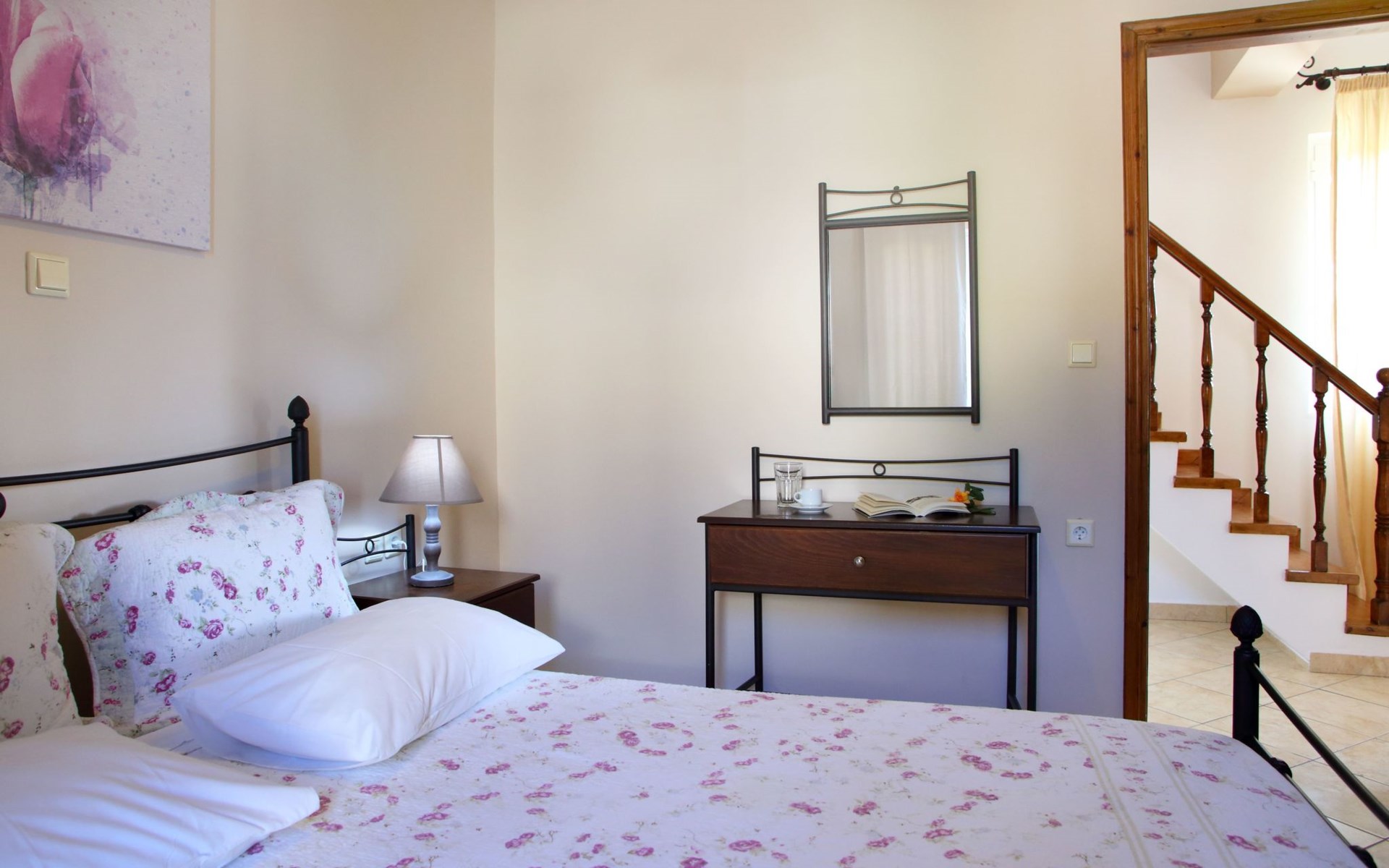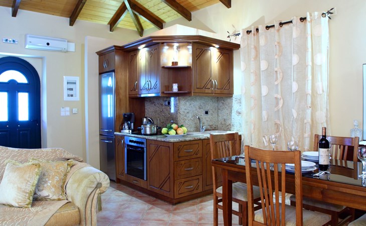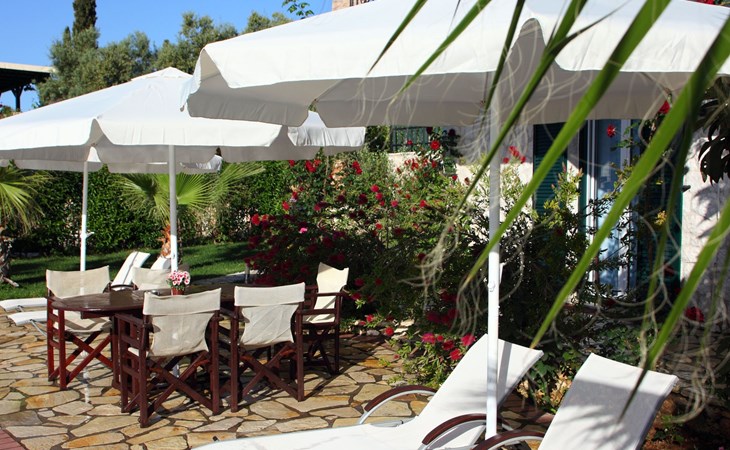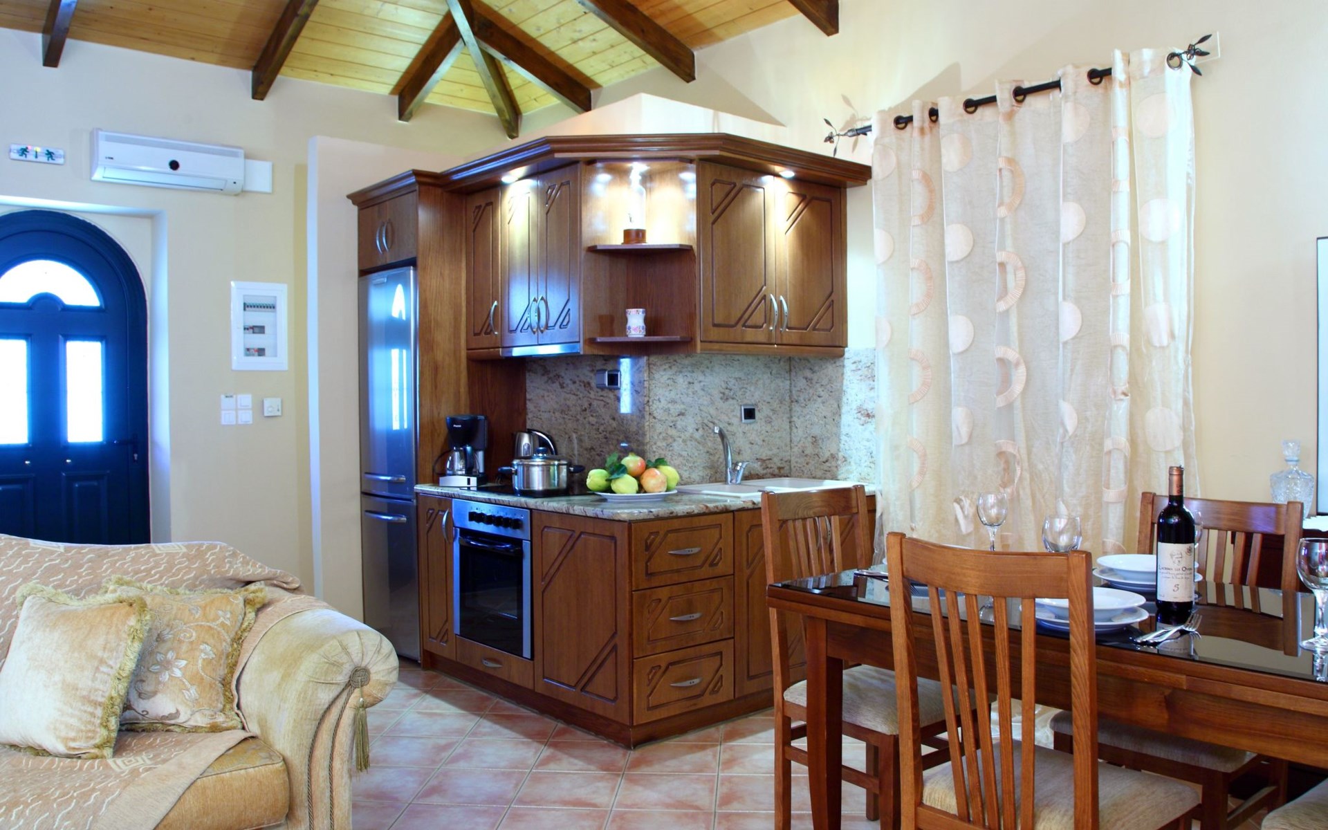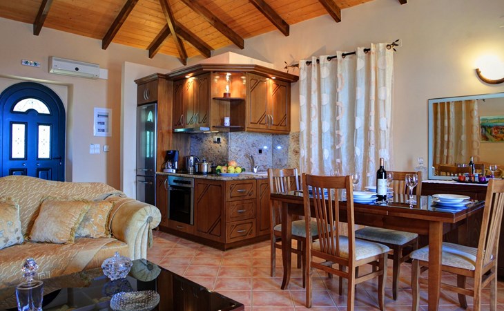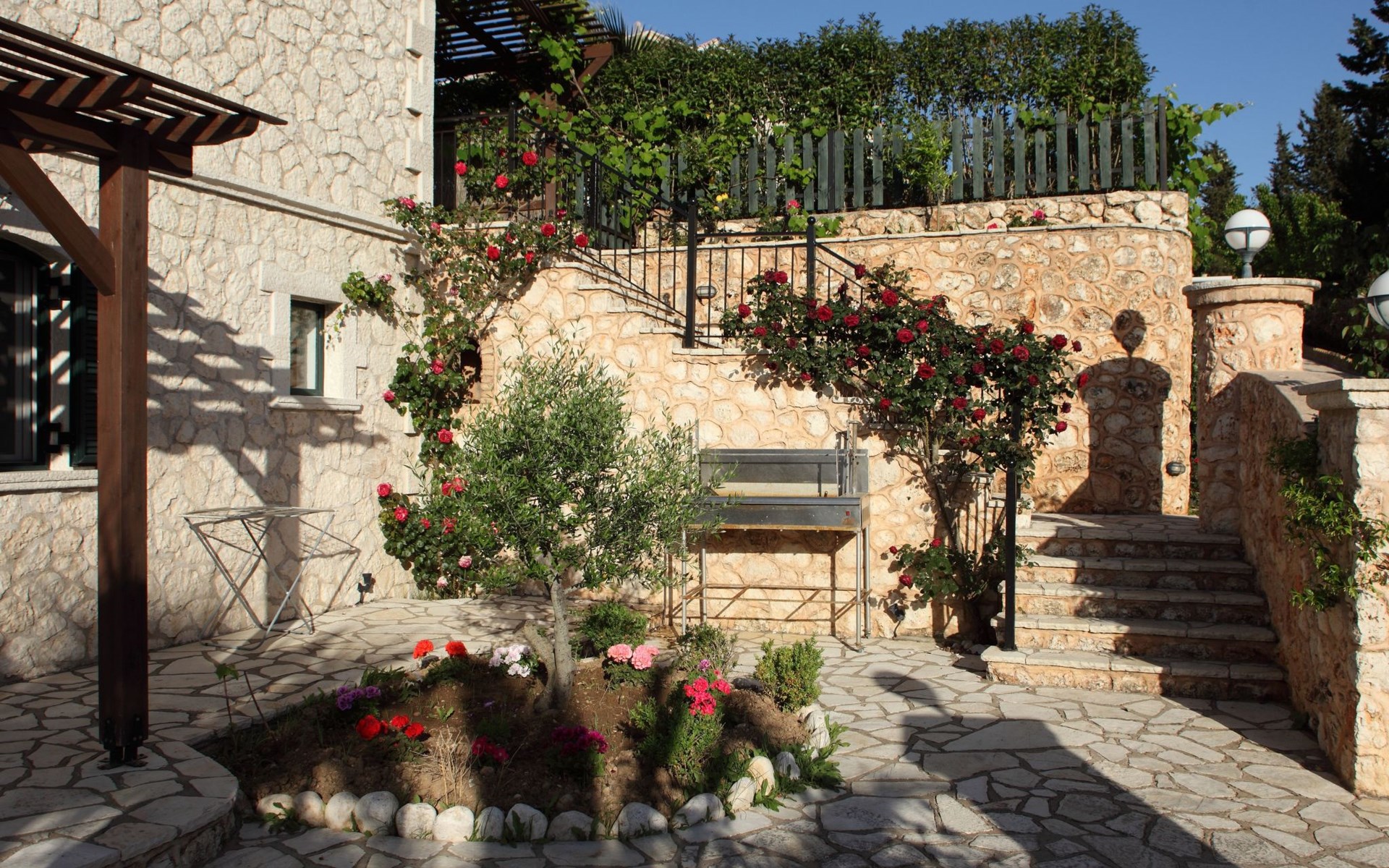 Villas Goudis are in complete harmony with the natural environment. They provide amazing view, the sunset in Ionian Sea. Each villa is independed and allocates swimming pool, green garden with flowers, bbq and parking. All villas are beautifully decorated and are separated in two floors.Lefkada is one of the most beautiful island of Greece and the only one with easy access. Picturesque villages, harbors, small islands, hidden beauty of the mountains and especially the famous beaches, make the best impression to its visitors. Apart from its natural beauty, is also featured with culture and tradition, with a series of events and activities taking place mainly in the summer months on the island. Tsoukalades is located on the west side of the island, in a lush green setting, overlooking the endless blue of the Ionian Sea, and a beautiful sunset! The village is located near the town of Lefkada and the famous beaches Pefkoulia, Agios Nikitas and Kathisma. It is named from the red clay available in the area which they used to make earlier pottery (tsoukalia). It is one of the most beautiful tourist resorts on the island with many amenities for its guests (taverns, cafeterias, mini markets etc.). "Goudis" villas, are located in the most beautiful part of Tsoukalades, in a lush green environment and with a spectacular view to the Ionian Sea. They are fully equipped, and cover every need of their guests, while there is ample parking, pool, barbecue and a beautiful gardenVilla Evelyn is a wonderful three-bedroom villa, ideal for up to 8 people. When you enter the villa from the first floor, you will walk into the spacious living room with as centerpiece the stone built fireplace. Next to the living room is the fully equipped open plan kitchen. From this floor, you have access to the large terrace to admire the view while relaxing at the outdoor seating area. There is a bathroom on this first floor with a shower for your convenience.Down the internal staircase, on the ground floor, are three bedrooms and a family bathroom with a Jacuzzi for you to enjoy. There are two bedrooms with double beds and one with two single beds. All bedrooms have direct access to the lovely pool area.The private outdoor area of Villa Evelyn offers a lush green garden with colorful flowers, trees with seasonal fruit, and a stone built BBQ. You will love the afternoons enjoying the magical sunsets while cooling down with the soft touch of the mountain breeze, making memories that will stay forever in your heart.The final touch is the blue water of the large swimming pool that becomes one with the horizon and the endless blue of the Ionian Sea.Villa Evelyn is an ideal choice for you and your family that promises a comfortable and unforgettable stay on Lefkada Island. 1307673