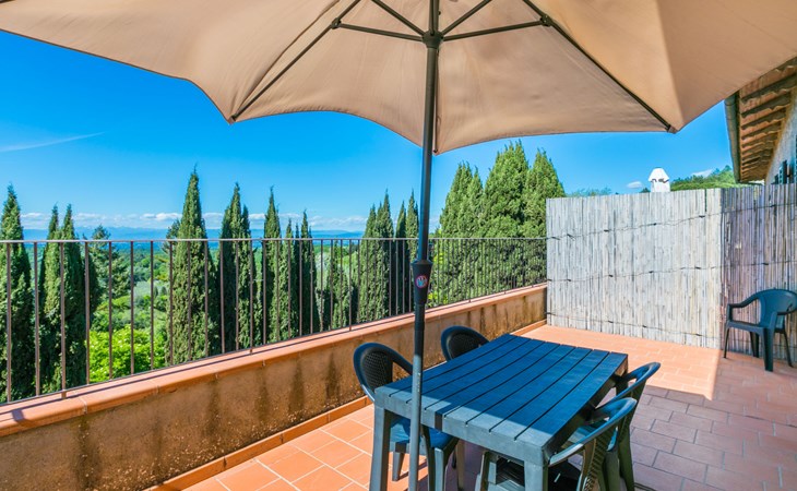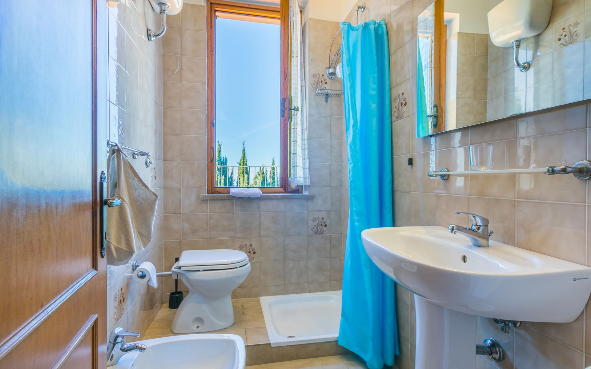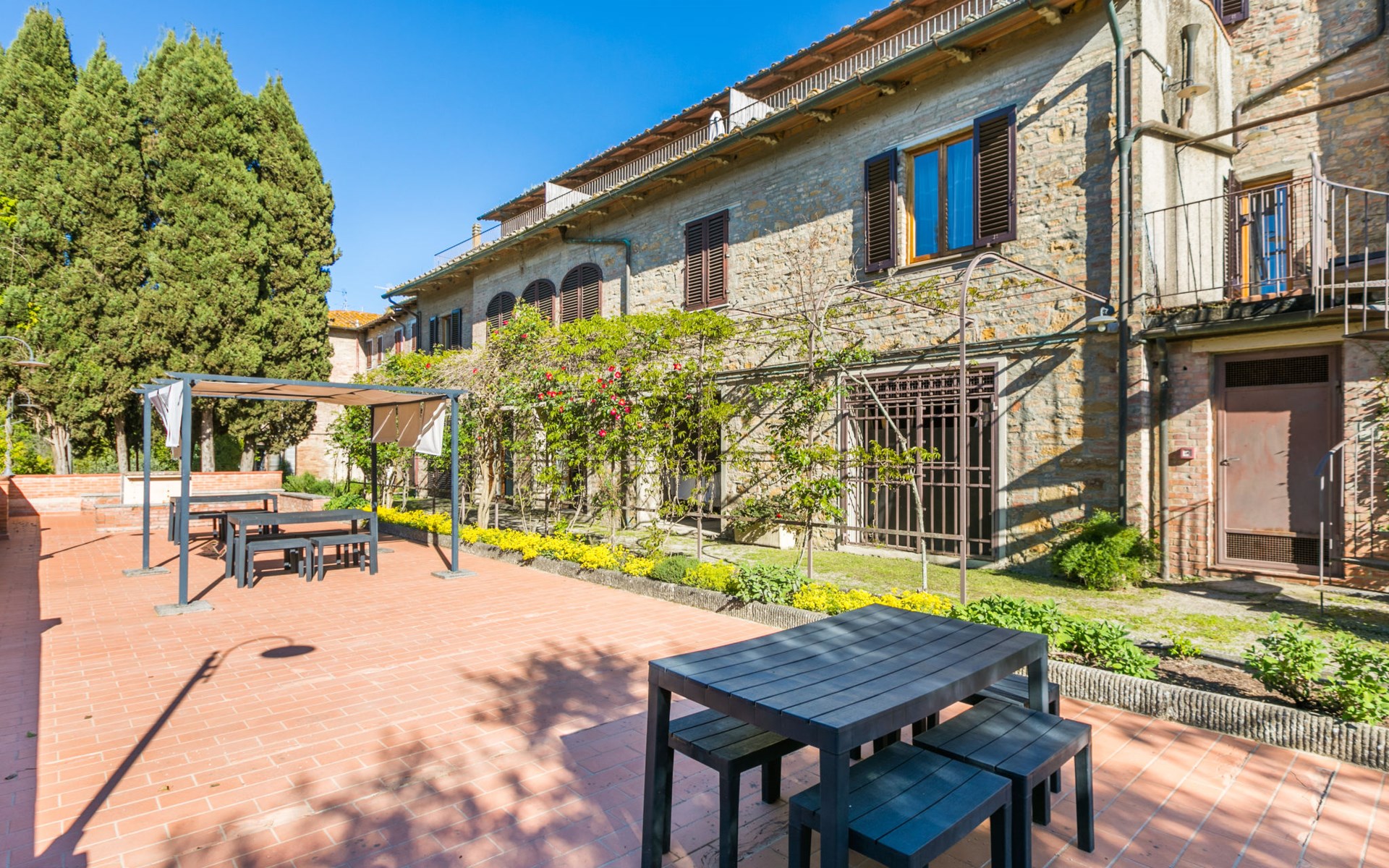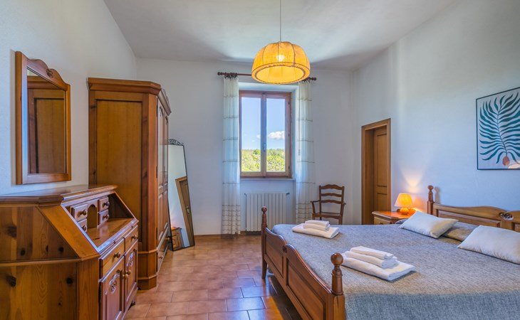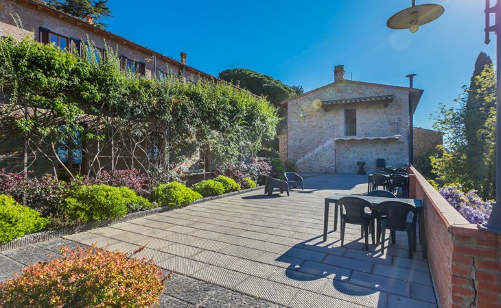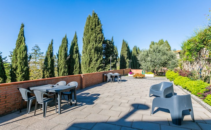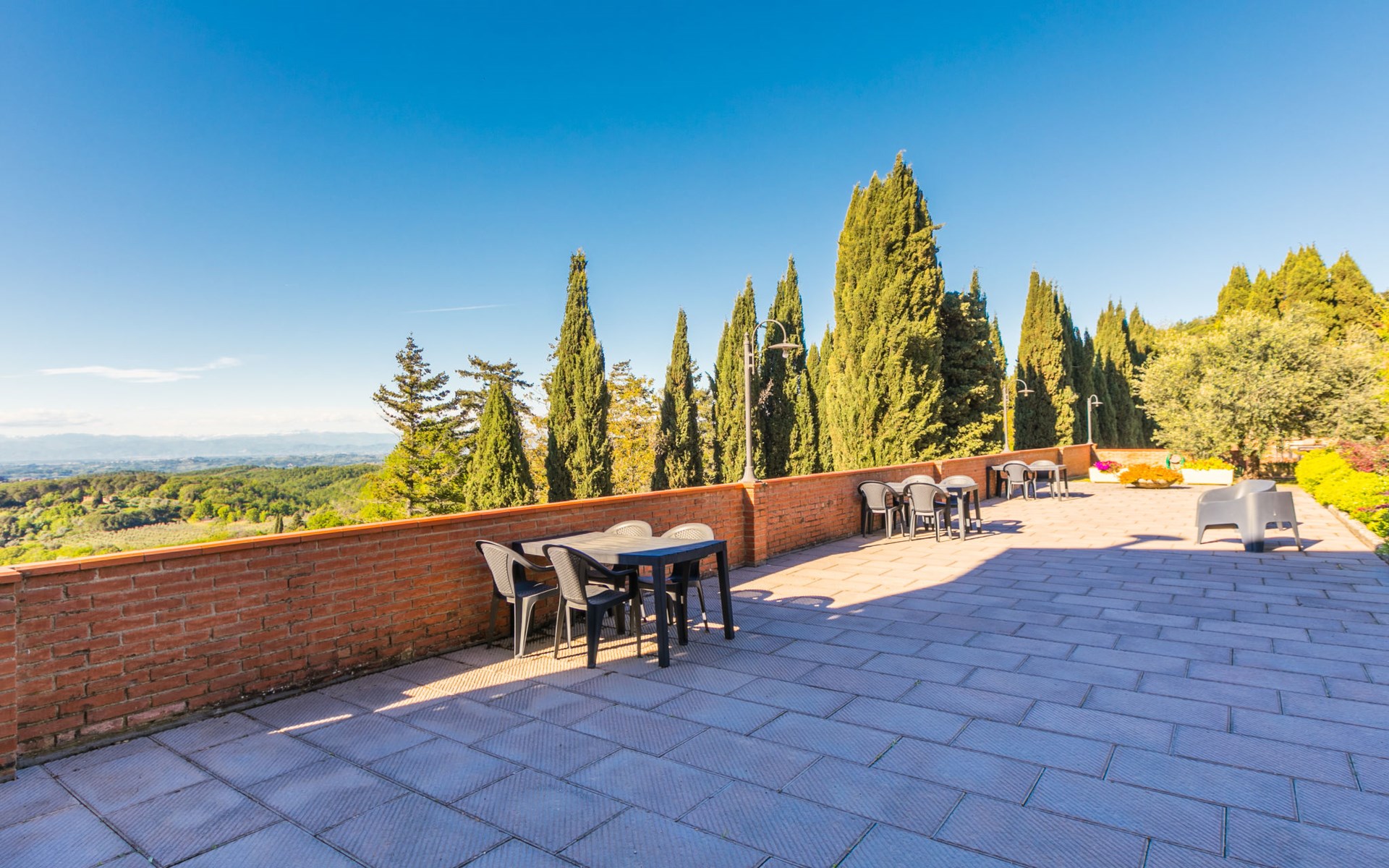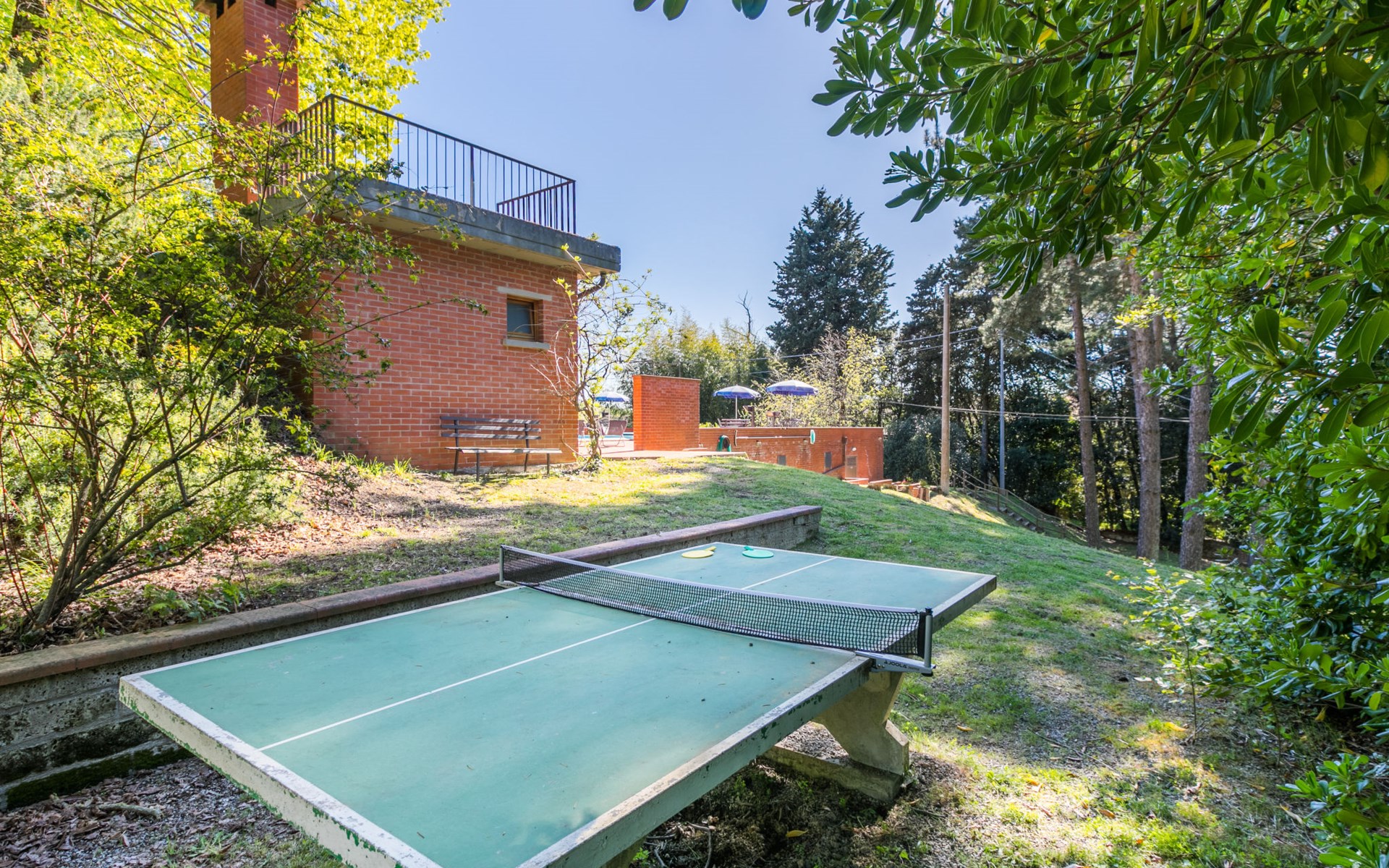 Landhuis "San Vivaldo", 400 m boven zeeniveau, omgeven door bomen en velden. 16 appartementen in de woning. In het gehucht San Vivaldo, 7 km van het centrum van Montaione, 50 km van het centrum van Pisa, 60 km van het centrum van Firenze, zonnige, verhoogde ligging in een woonwijk, 65 km van zee, te midden van groen. Voor medegebruik: terrein 920.000 m2, bomen, openluchtzwembad omheind (20 x 10 m, 150 - 250 cm diepte, seizoensgebonden beschikbaarheid: 01.Mei. - 07.Okt. openingstijden zwembad: 09:00-20:00) met zout-elektrolyse. Douche/WC bij het zwembad, tennisbaan, tafeltennis, terras, tuinmeubelen, barbecue, kinderspeelplaats, onderhoud zwembad door de eigenaar/tuinman. In het complex: receptie, Internet (WiFi), wasmachine (voor medegebruik). Overdekte parkeerplaats op het terrein. Levensmiddelenwinkel, restaurant, bar, bakkerij 10 m, bushalte 7 km, zandstrand "Cecina Mare" 66 km. Golfterrein (18 holes) 4 km. Attracties in de buurt: San Gimignano 17 km, Certaldo 19 km, Volterra 30 km. Auto noodzakelijk. Baby uitrusting (incl.). Lokale verkoop van streekproducten. De woningen kunnen onderling van inrichting verschillen. Oplaadstation ca. 100 m.