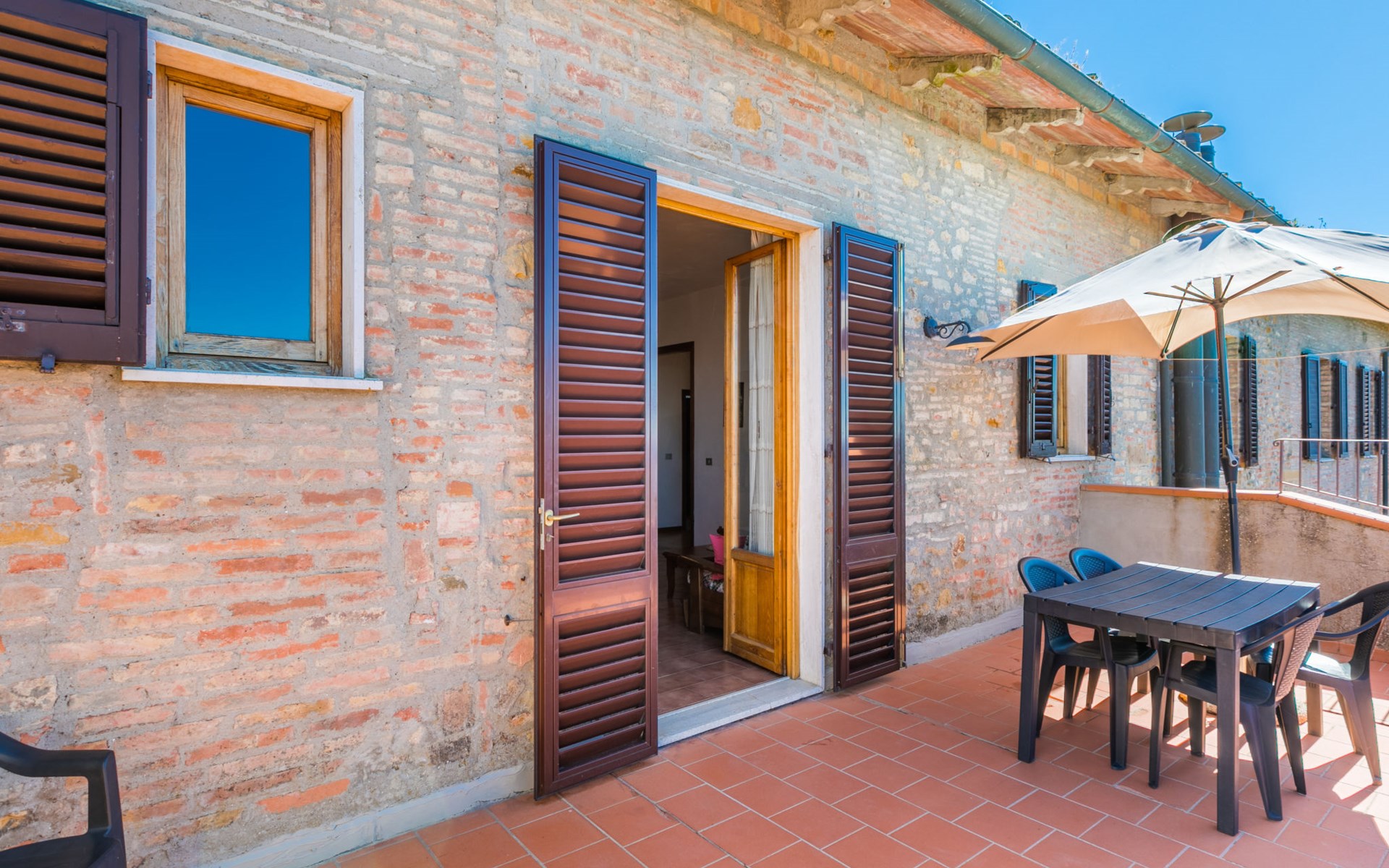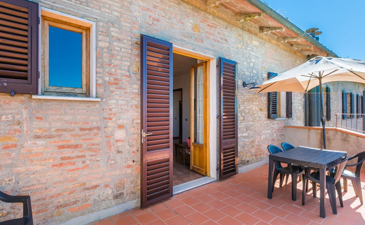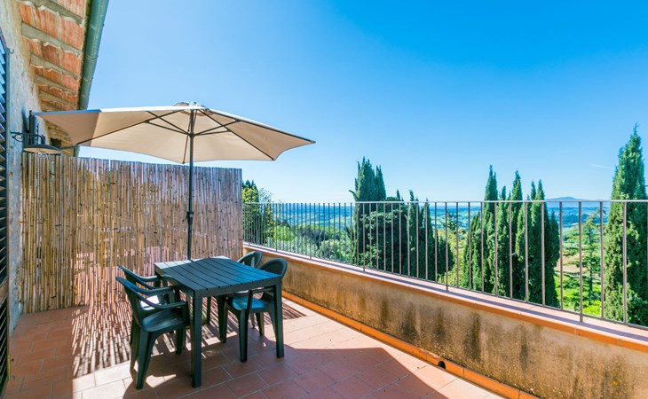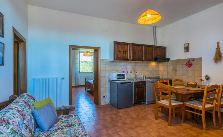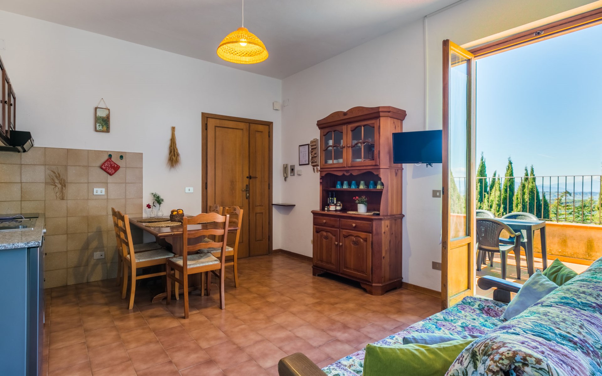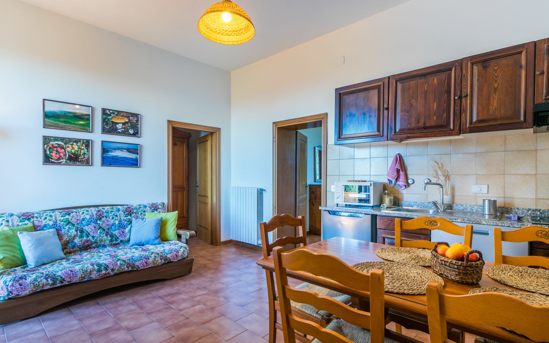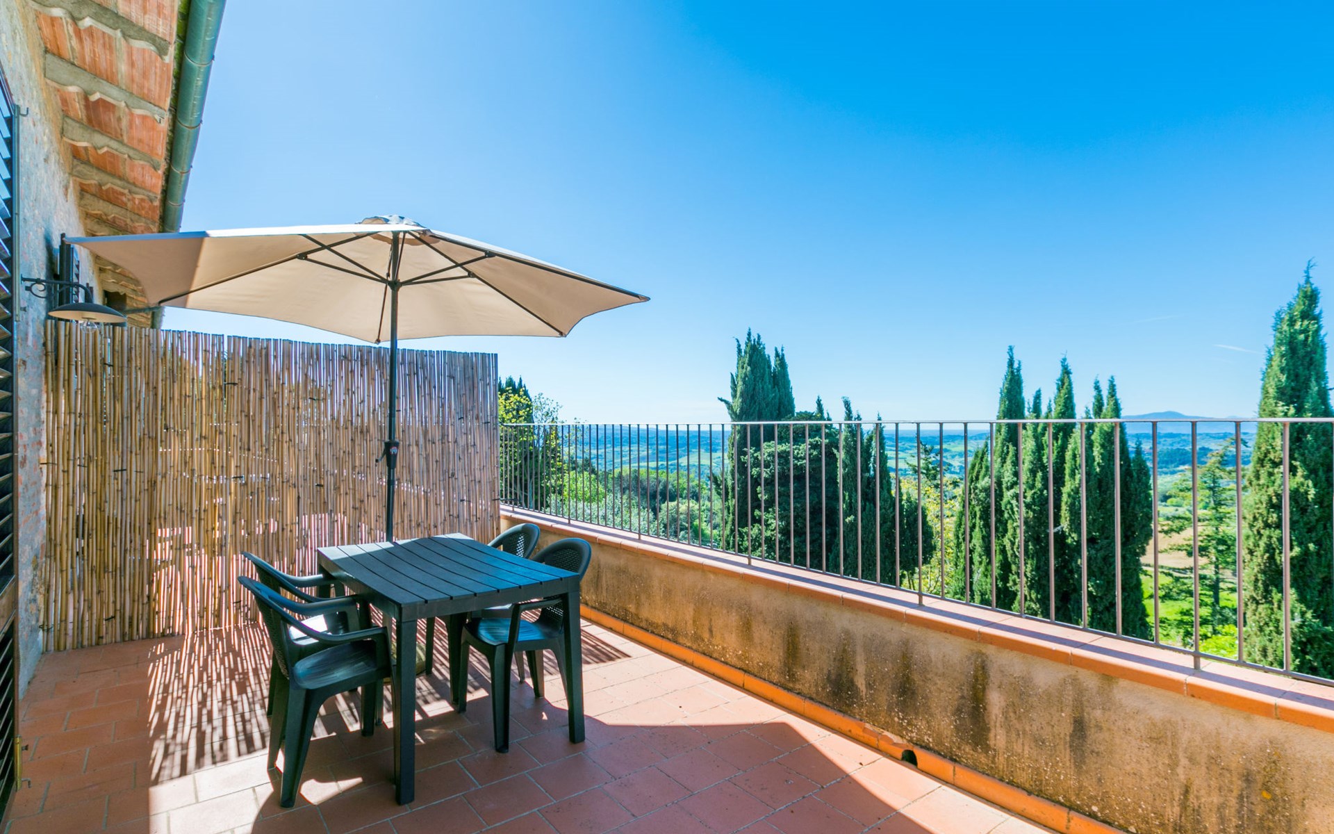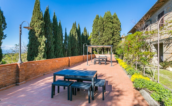 Landhuis "San Vivaldo", 400 m boven zeeniveau, omgeven door bomen en velden. 16 appartementen in de woning. In het gehucht San Vivaldo, 7 km van het centrum van Montaione, 50 km van het centrum van Pisa, 60 km van het centrum van Firenze, zonnige, verhoogde ligging in een woonwijk, 65 km van zee, te midden van groen. Voor medegebruik: terrein 920.000 m2, bomen, openluchtzwembad omheind (20 x 10 m, 150 - 250 cm diepte, seizoensgebonden beschikbaarheid: 01.Mei. - 07.Okt. openingstijden zwembad: 09:00-20:00) met zout-elektrolyse. Douche/WC bij het zwembad, tennisbaan, tafeltennis, terras, tuinmeubelen, barbecue, kinderspeelplaats, onderhoud zwembad door de eigenaar/tuinman. In het complex: receptie, Internet (WiFi), wasmachine (voor medegebruik). Overdekte parkeerplaats op het terrein. Levensmiddelenwinkel, restaurant, bar, bakkerij 10 m, bushalte 7 km, zandstrand "Cecina Mare" 66 km. Golfterrein (18 holes) 4 km. Attracties in de buurt: San Gimignano 17 km, Certaldo 19 km, Volterra 30 km. Auto noodzakelijk. Baby uitrusting (incl.). Lokale verkoop van streekproducten. De woningen kunnen onderling van inrichting verschillen. Oplaadstation ca. 100 m.