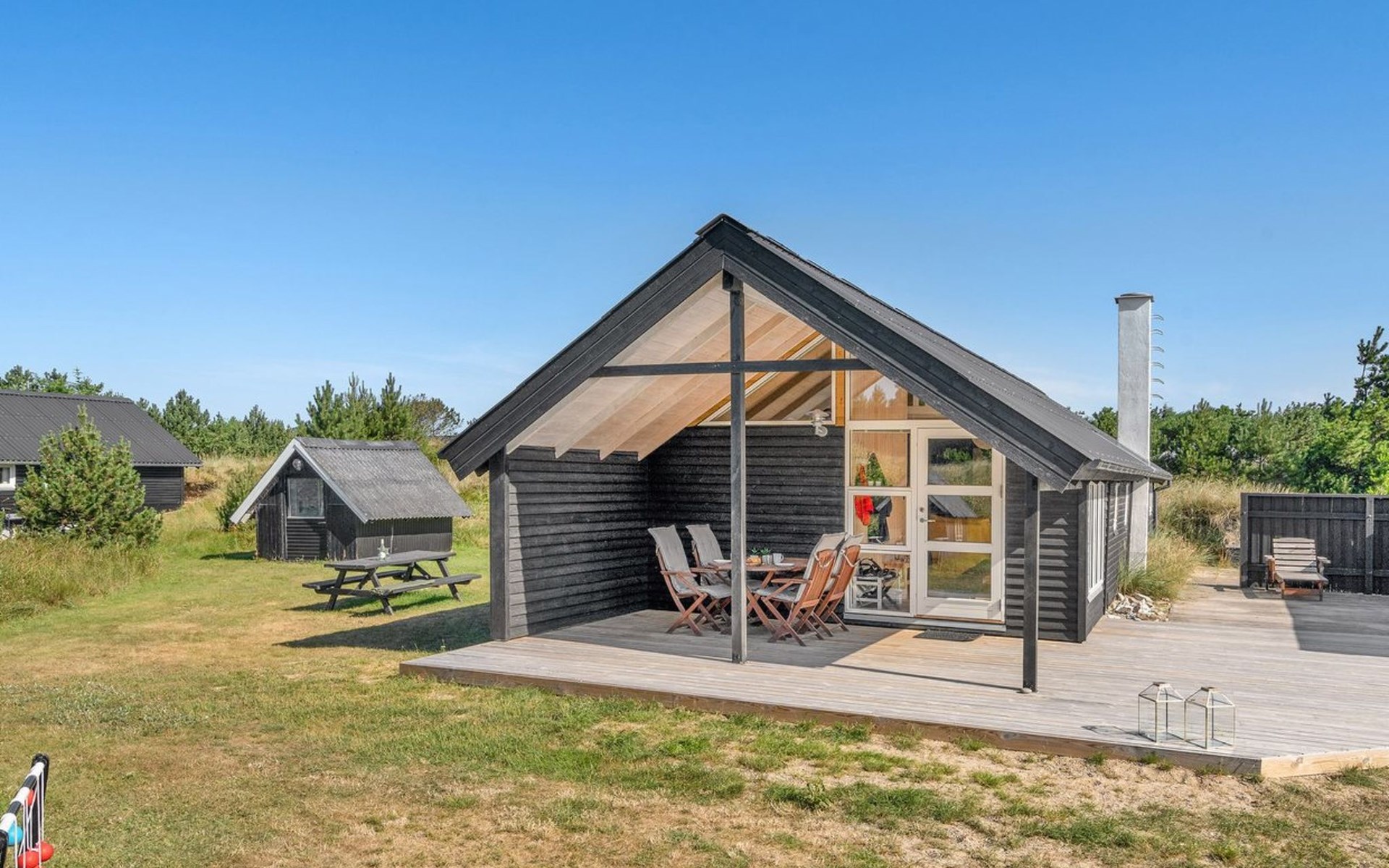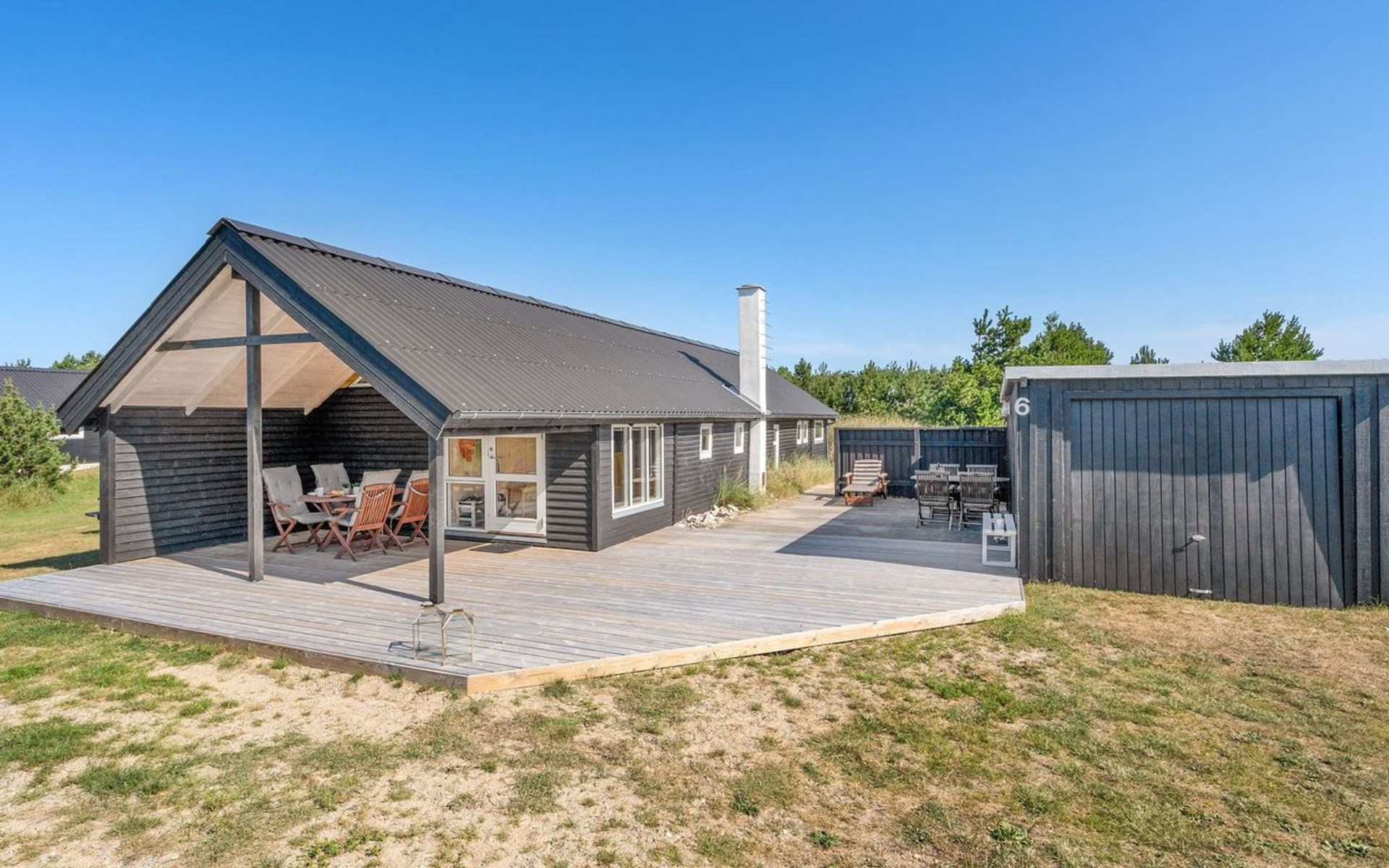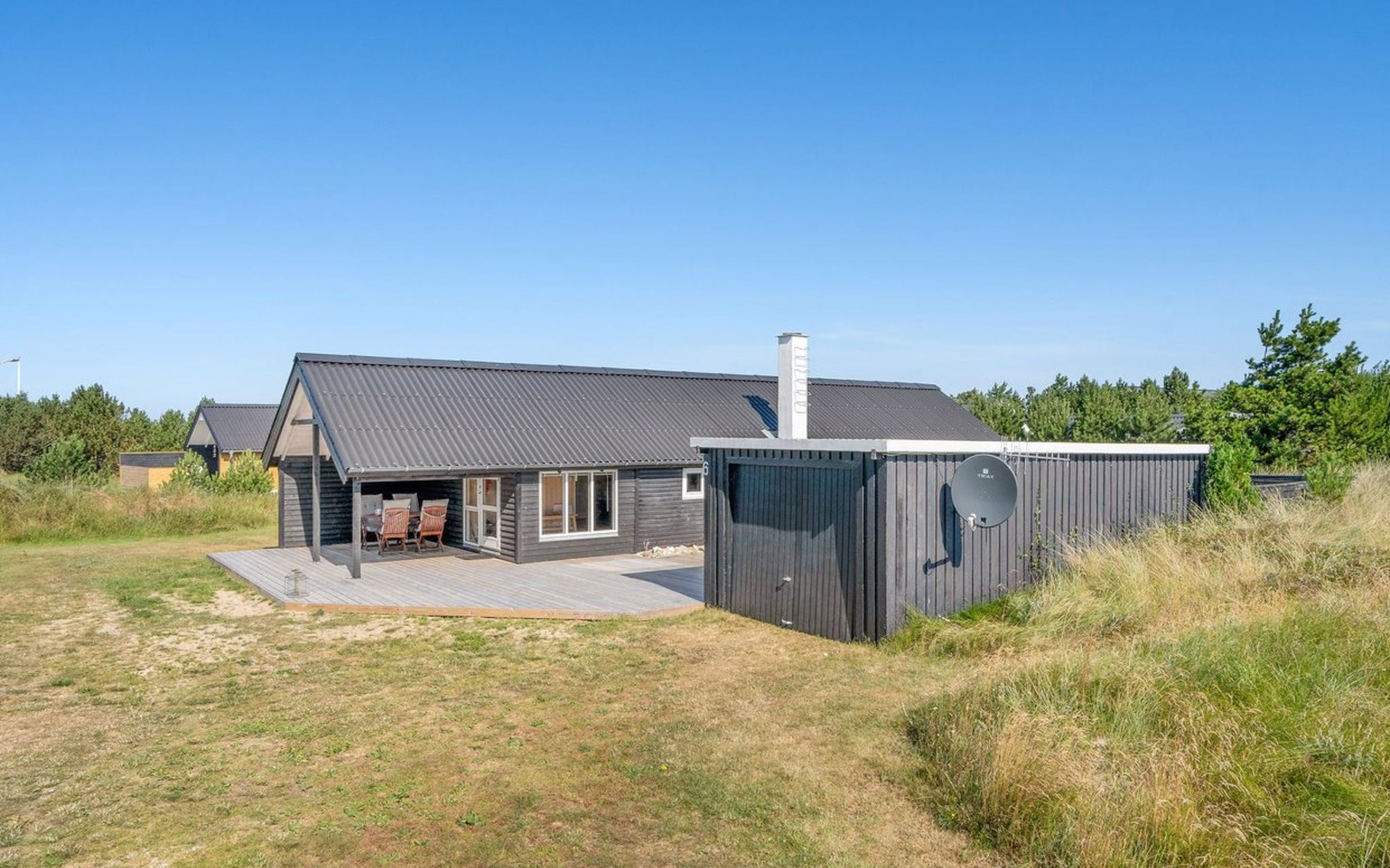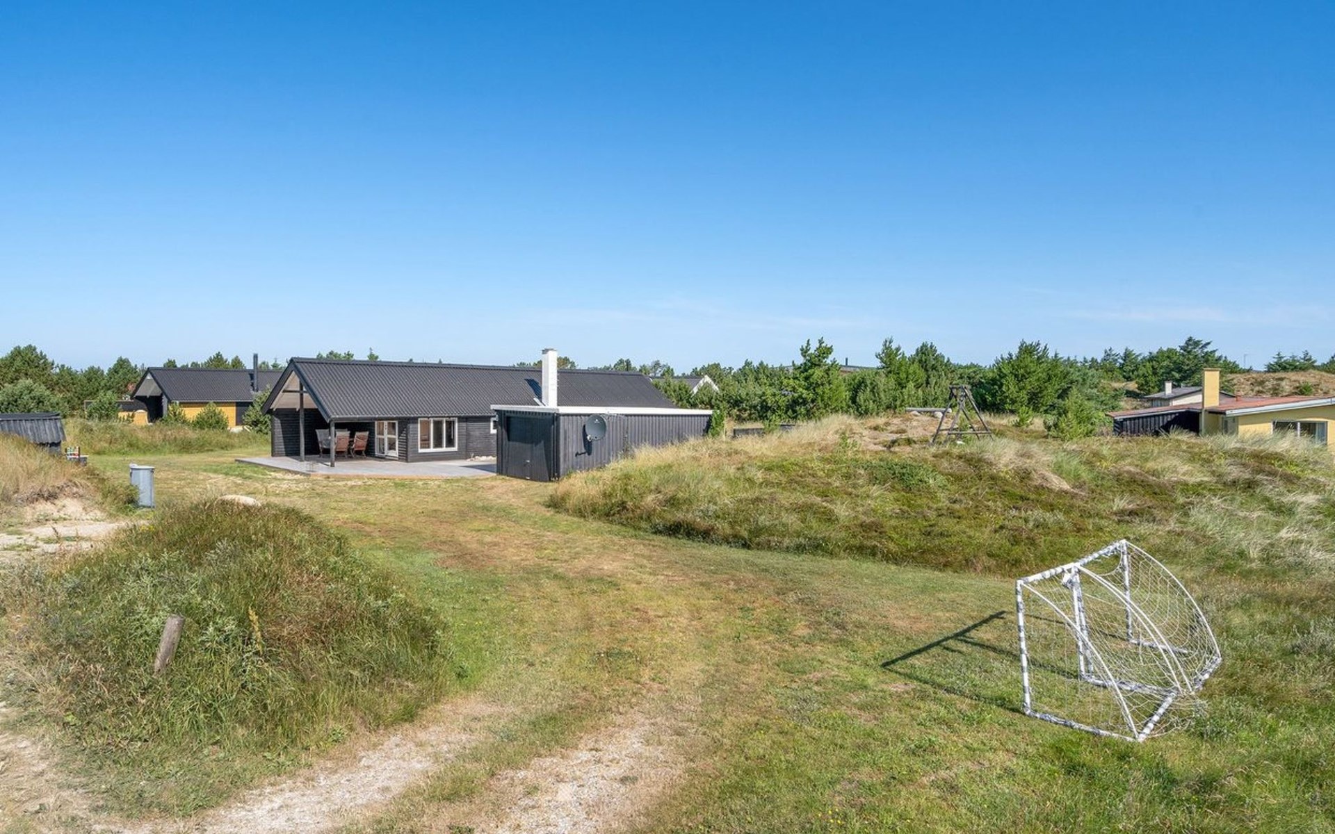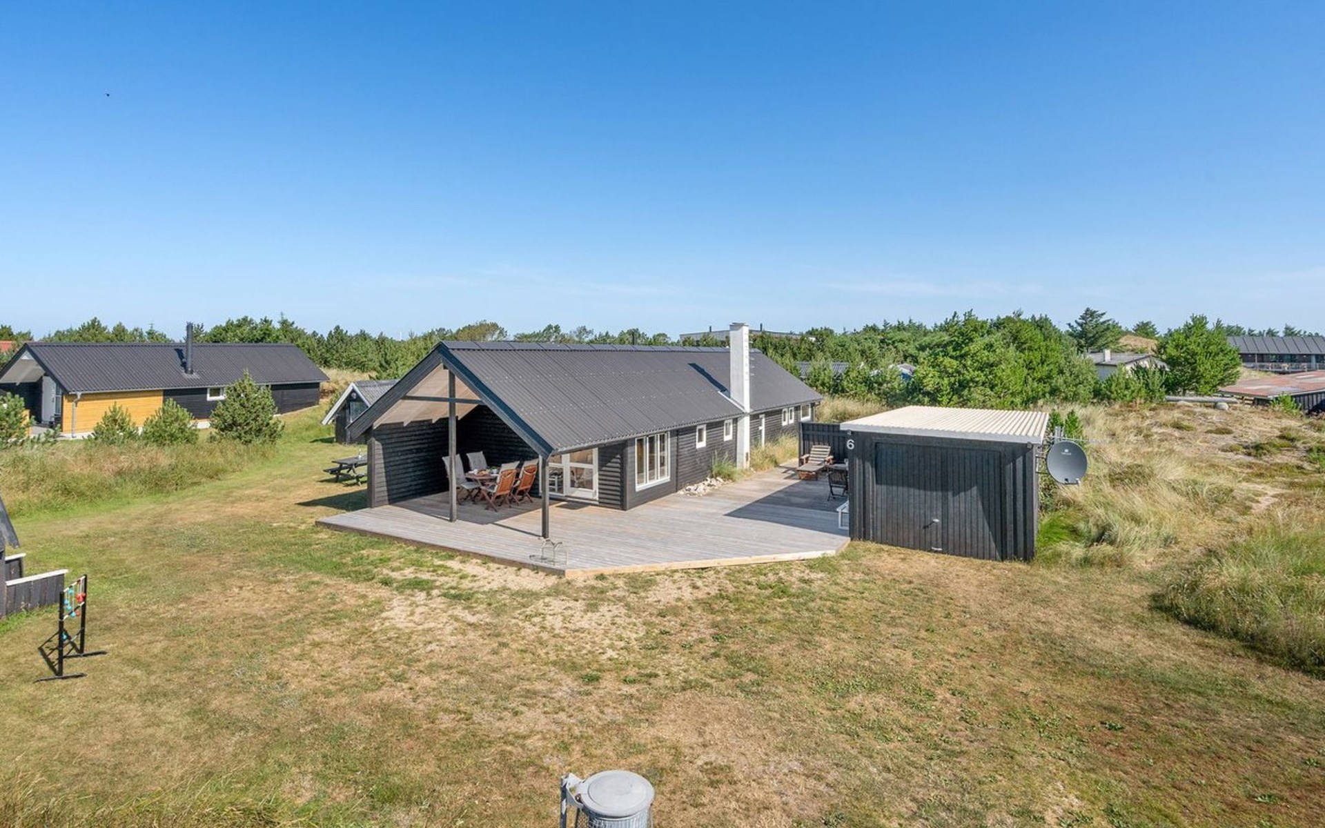 Eengezinswoning, bouwjaar 1970. 700 m van zee. Voor alleengebruik: wild terrein 1.400 m2. Terras (42 m2), barbecue, kinderspeelplaats (schommel). In het huis: wasmachine, droger. Parkeerplaats bij het huis. Levensmiddelenwinkel 600 m.