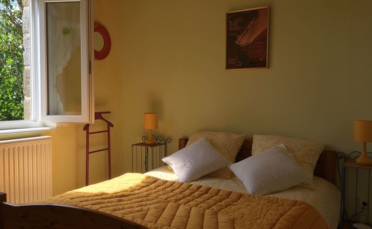 This old stone property, half-Breton/half-Normandy in character, has been renovated and features a very large garden planted with trees and flowers, where angels here and there invite you to relax, rest or read... The river Sélune, famous for its salmon, is nearby, in the heart of the Normandy bocage. We welcome you to our gîtes and chambres d'hôtes, by the night (including breakfast), on a short-stay or weekly basis.Our fully-equipped 3-star gîte, adjoining our house, sleeps 1 to 4 people and includes: - Open-plan kitchen: fridge with freezer compartment, microwave, gas cooker, oven, washing machine and dishwasher.Lounge with sofas (Tv, wifi, games and DVD player on request) - Shower room (shower, washbasin) and separate WC - One bedroom with 1 double bed (140cm) - One bedroom with 2 single beds (90cm) - 25m² west-facing terrace with views over the countryside and magnificent sunsets.25 m² terrace facing west, with views over the countryside and magnificent sunsets, with a private staircase leading down to the park. Outdoor table and 4 chairs, parasol and deckchairs. Shared access to our hectare of parkland with woodland, orchard, pony meadow...Gîte labelled Gîte de pêche, guide du routard 2017 and classified meublé de tourisme 3 stars For babies, we provide free of charge : Cot, bath, high chair, potty, changing table, bottle warmer... The gîte is on one level, in a wooded, flower-filled setting. We accept small pets under certain conditions. No smoking.L'Angevinière is 5 minutes from a river and 20 minutes from Mont Saint-Michel. Normandy beaches are 25 minutes away and Breton beaches 40 minutes. The ideal location for visiting Normandy and Brittany with Avranches, Saint-Malo, Cancale, Dinan, Dinard, Rennes Granville, Caen... the landing beaches, the American cemeteries... 02205050 50023-0115