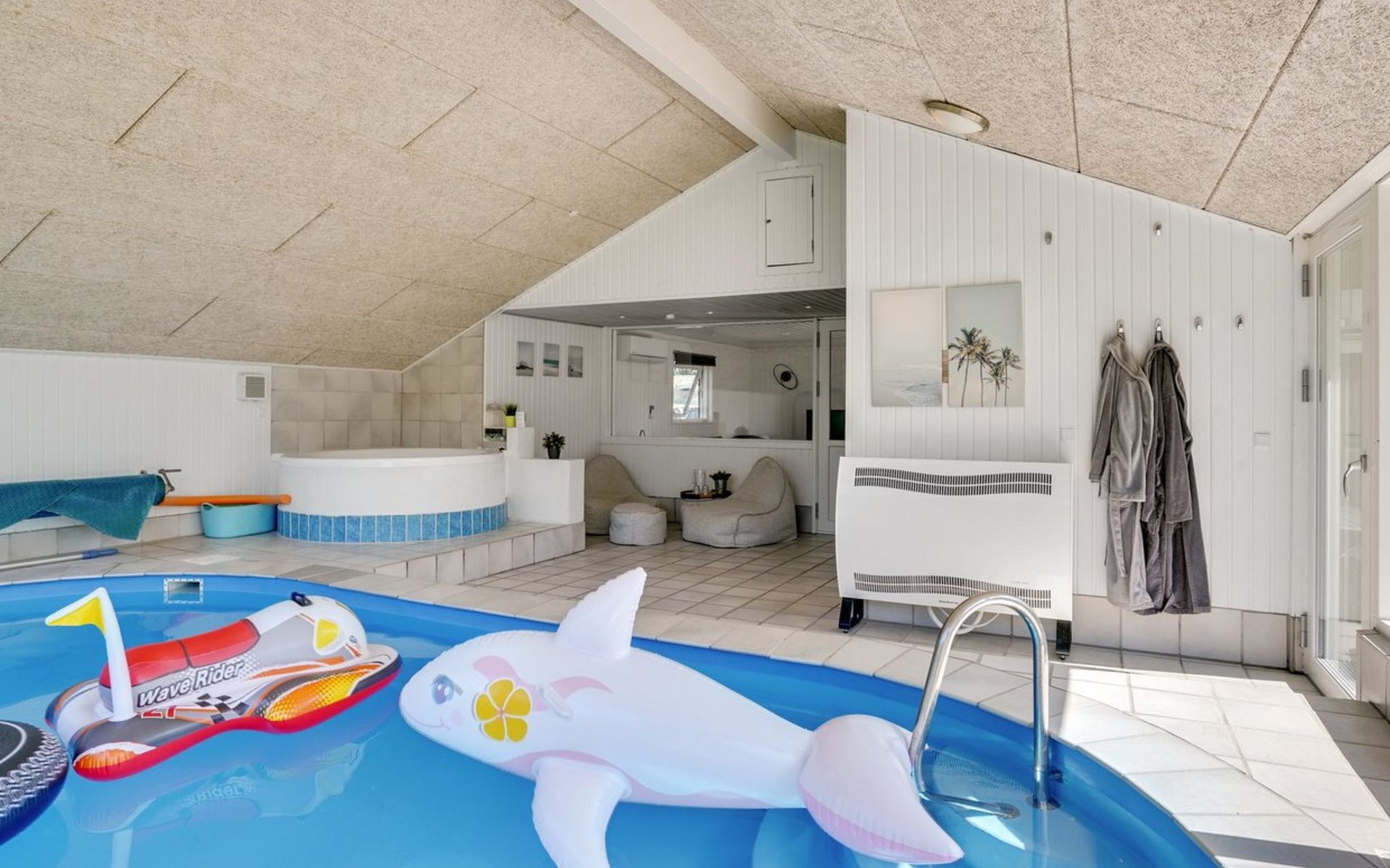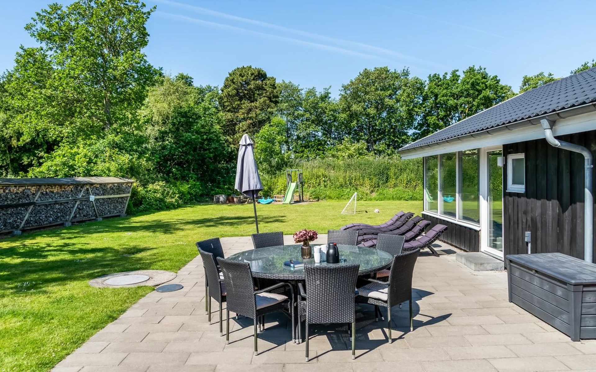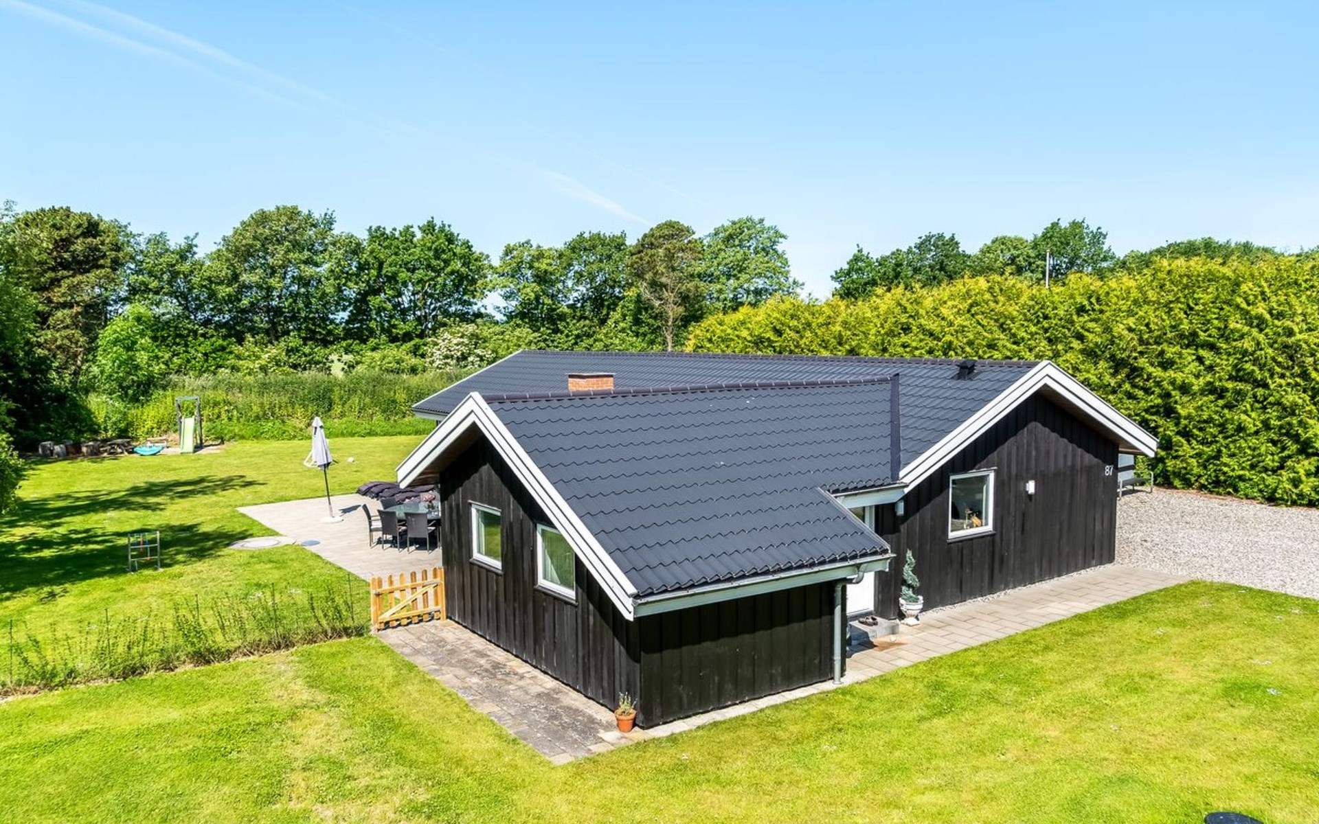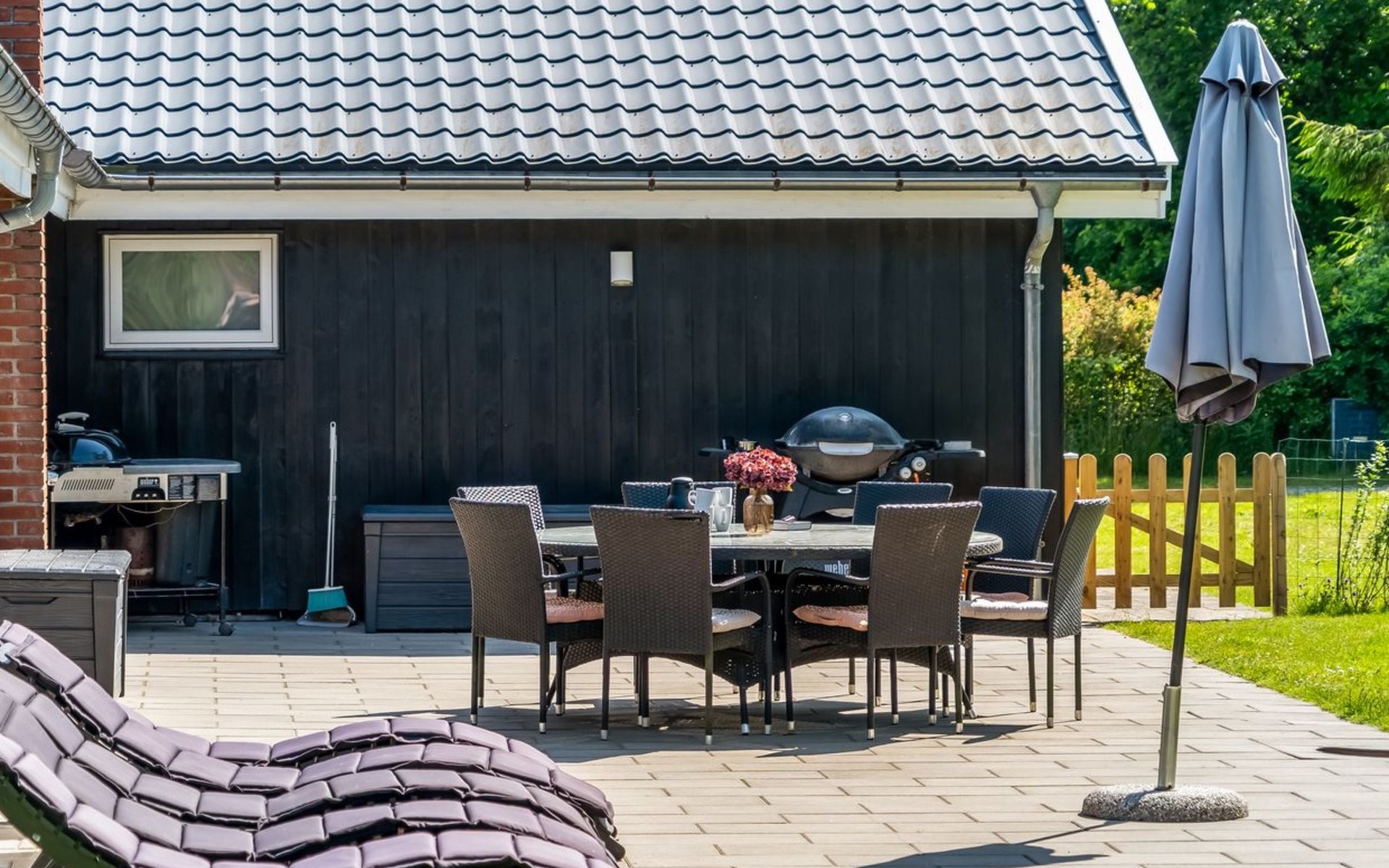 Eengezinswoning, bouwjaar 1973. 1.3 km van zee. Voor medegebruik: tuin. Voor alleengebruik: terrein 1.500 m2, verzorgde tuin (omheind), overdekt zwembad (3 x 6 m, 18 m2, 120 - 120 cm diepte). Terras (100 m2), barbecue, kinderspeelplaats. In het huis: sauna, wasmachine. Parkeerplaats bij het huis. Oplaadstation. Levensmiddelenwinkel 650 m. De eigenaar accepteert geen jeugdgroepen.