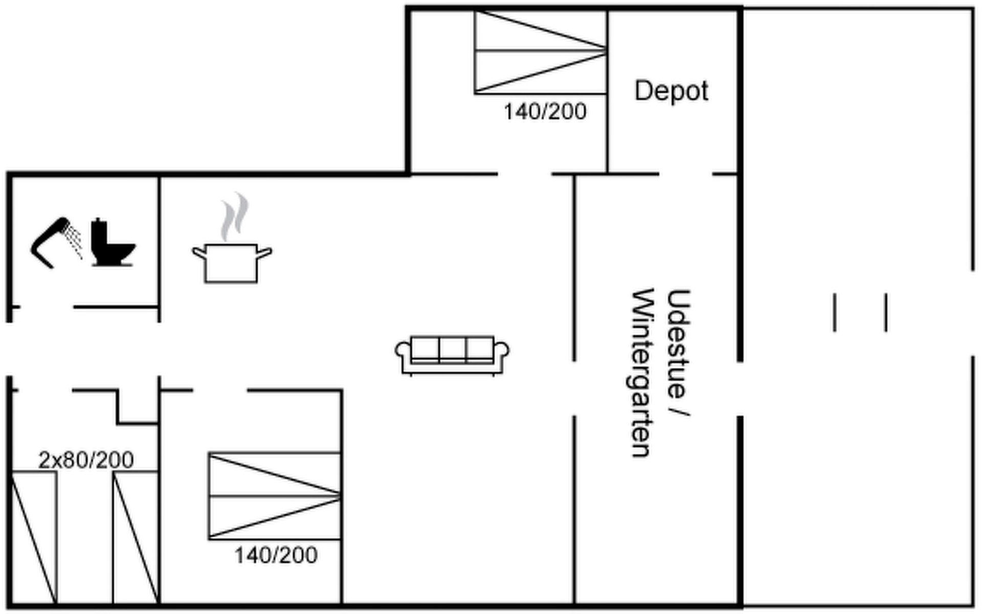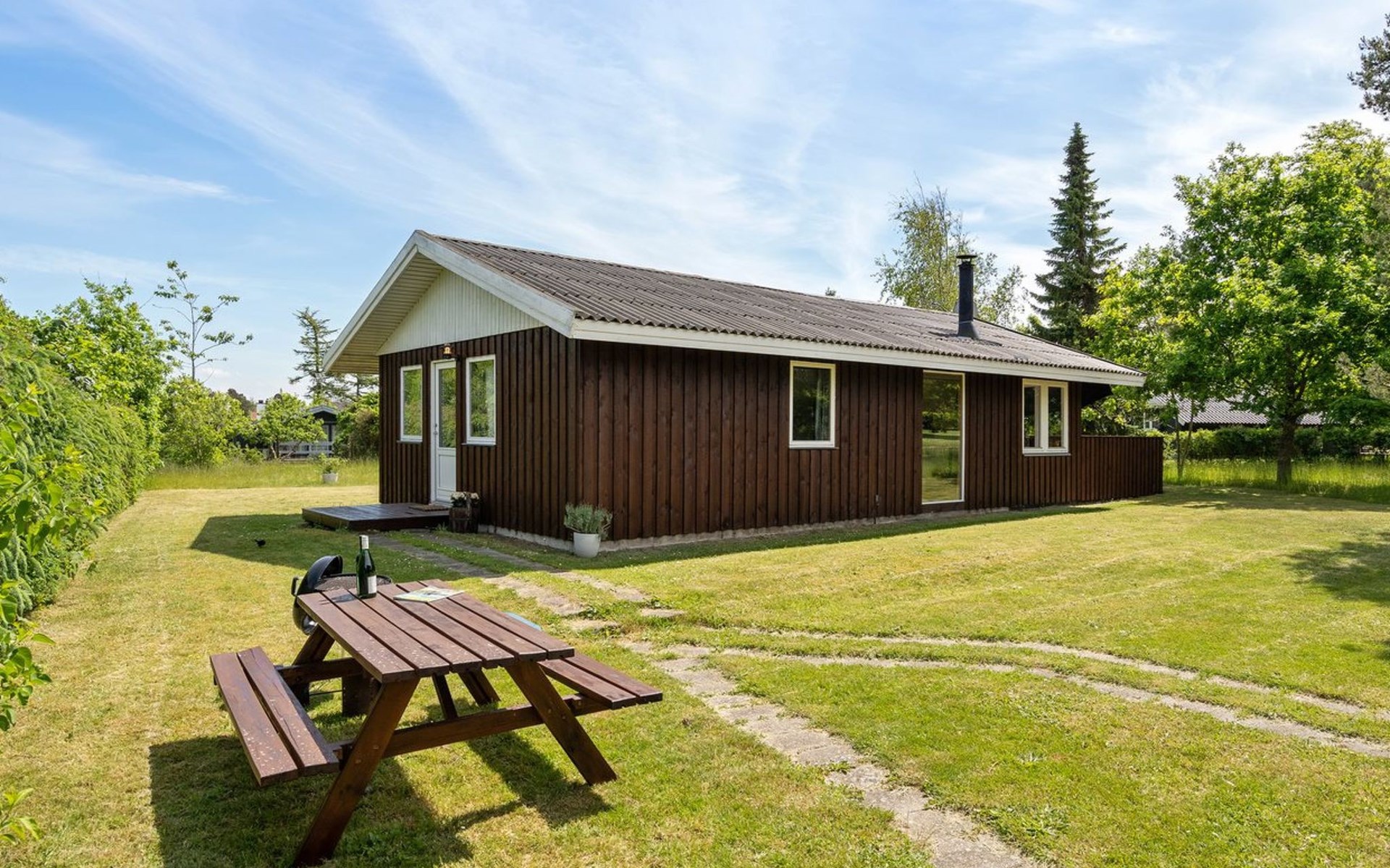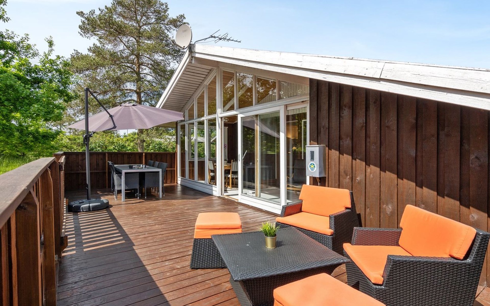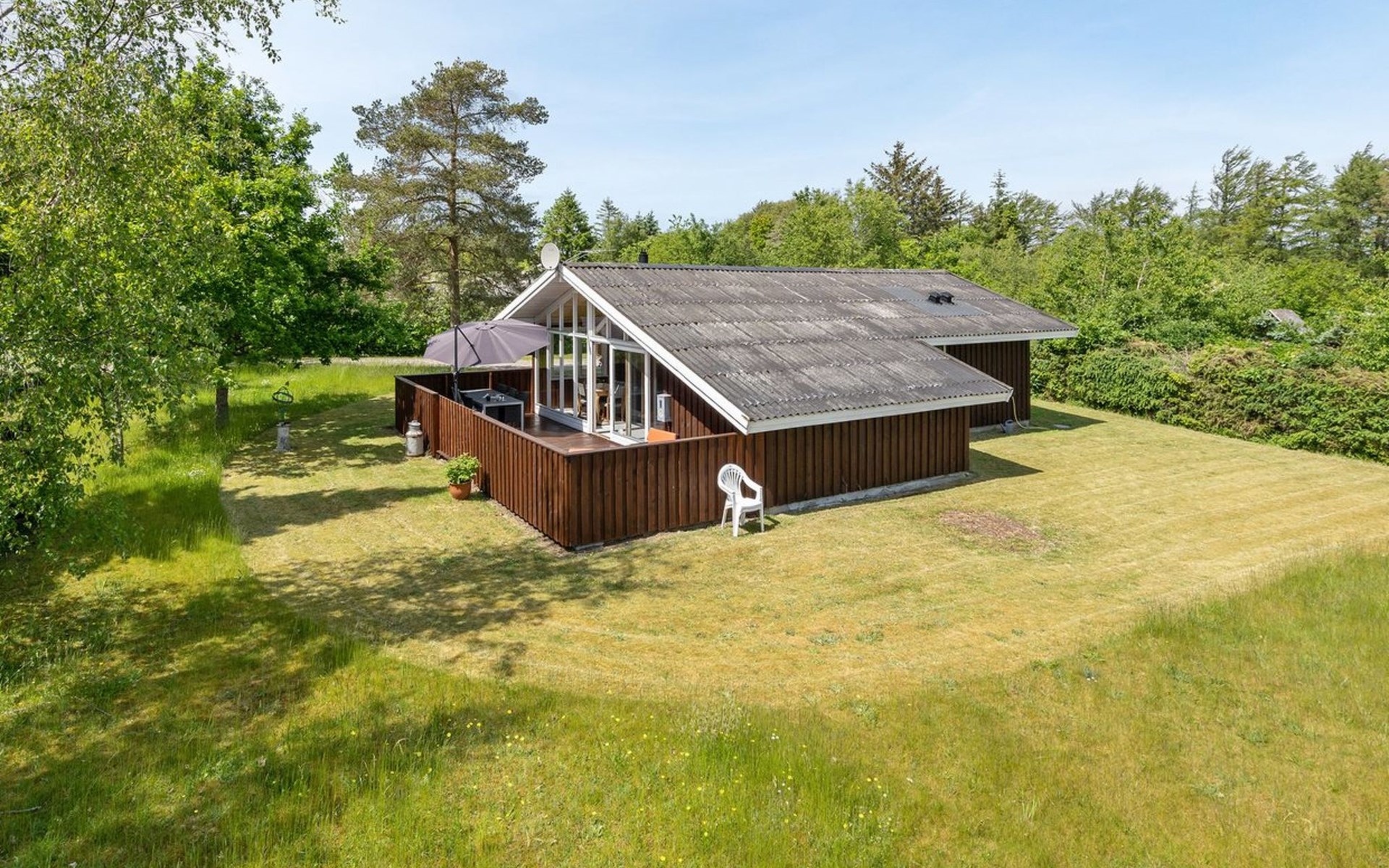 Eengezinswoning, bouwjaar 1980. Voor alleengebruik: wild terrein 1.250 m2. Terras (30 m2), barbecue. In het huis: wasmachine, droger. Parkeerplaats bij het huis. Carport. Levensmiddelenwinkel 3 km. Golfterrein 12 km. De eigenaar accepteert geen jeugdgroepen.