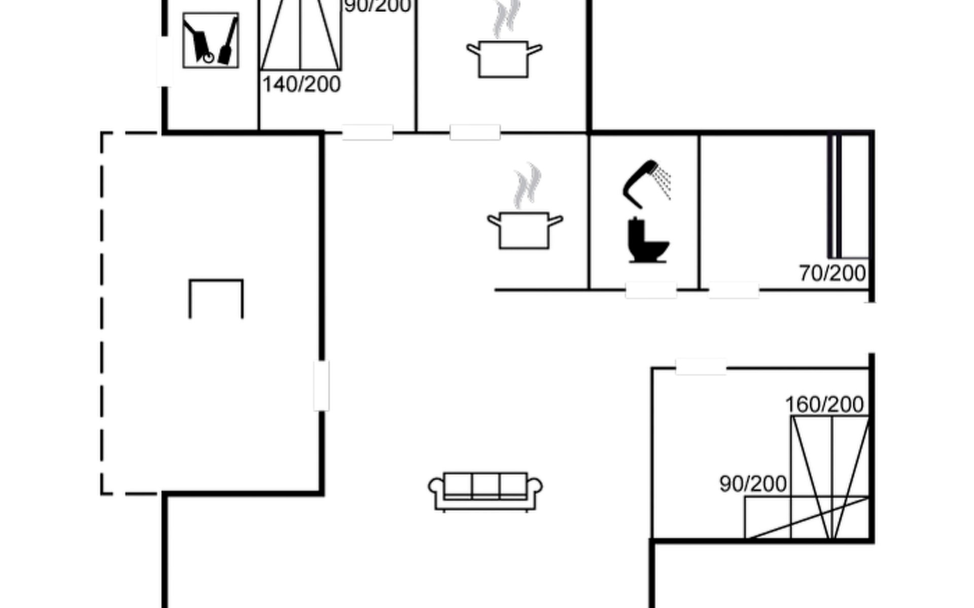 Eengezinswoning, bouwjaar 1975. Voor alleengebruik: wild terrein 2.800 m2. Barbecue, kinderspeelplaats (schommel). In het huis: trampoline, wasmachine. Parkeerplaats bij het huis. Levensmiddelenwinkel 6 km. Golfterrein 6 km. De eigenaar accepteert geen jeugdgroepen.