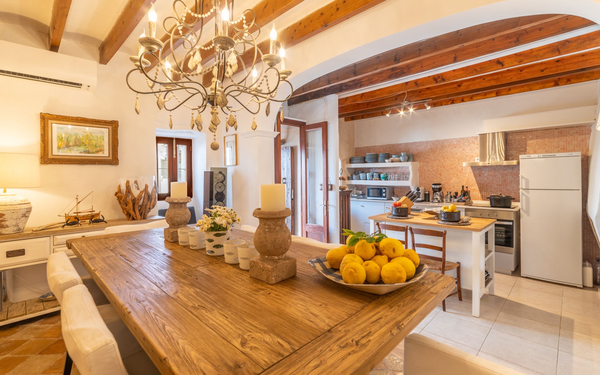 Campanet: Mooi, rustieke huis "Sa Teulera", van 2 verdiepingen. In de plaats, 1 km van het centrum, rustige ligging, 17 km van zee. Voor alleengebruik: mooie tuin ter ontspanning, openluchtzwembad hoekig (6 x 4 m, seizoensgebonden beschikbaarheid: 01.Mrt. en 30.Nov.). Douche/WC bij het zwembad, patio (100 m2), tuinmeubelen, barbecue. In het huis: met TV, internetaansluiting, Internet (WiFi), air-conditioning, wasmachine, droger. Winkel, levensmiddelenwinkel, supermarkt, restaurant, bar, bakkerij, café, voetgangersgebied 900 m, fietsverhuur 5 km, biertuin 900 m, bushalte "Campanet" 1.5 km, zandstrand "Playa de Alcudia" 17 km kiezelstrand "Playa de Aucanada" 18 km, stenenstrand "Playa de Aucanada" 18 km, rotsstrand "Playa de Aucanada" 18 km. Jachthaven 15 km, jachthaven 15 km, golfterrein (18 holes) 18 km, tennis 1 km, sportcentrum 1 km, fietspad 500 m. Attracties in de buurt: Coves de Campanet 3 km, Fonts Ufanes 5 km, Sa Clasta Wine Tour. Geen lift. Geschikt voor families, geschikt voor senioren baby uitrusting op aanvraag. Het objekt is geschikt voor 6 volwassenen groepen jongeren uitsluitend op aanvraag. De eigenaar accepteert geen jeugdgroepen. Laden en lossen van de baggage is mogelijk bij het huis. Vliegveld 45 km van het huis.