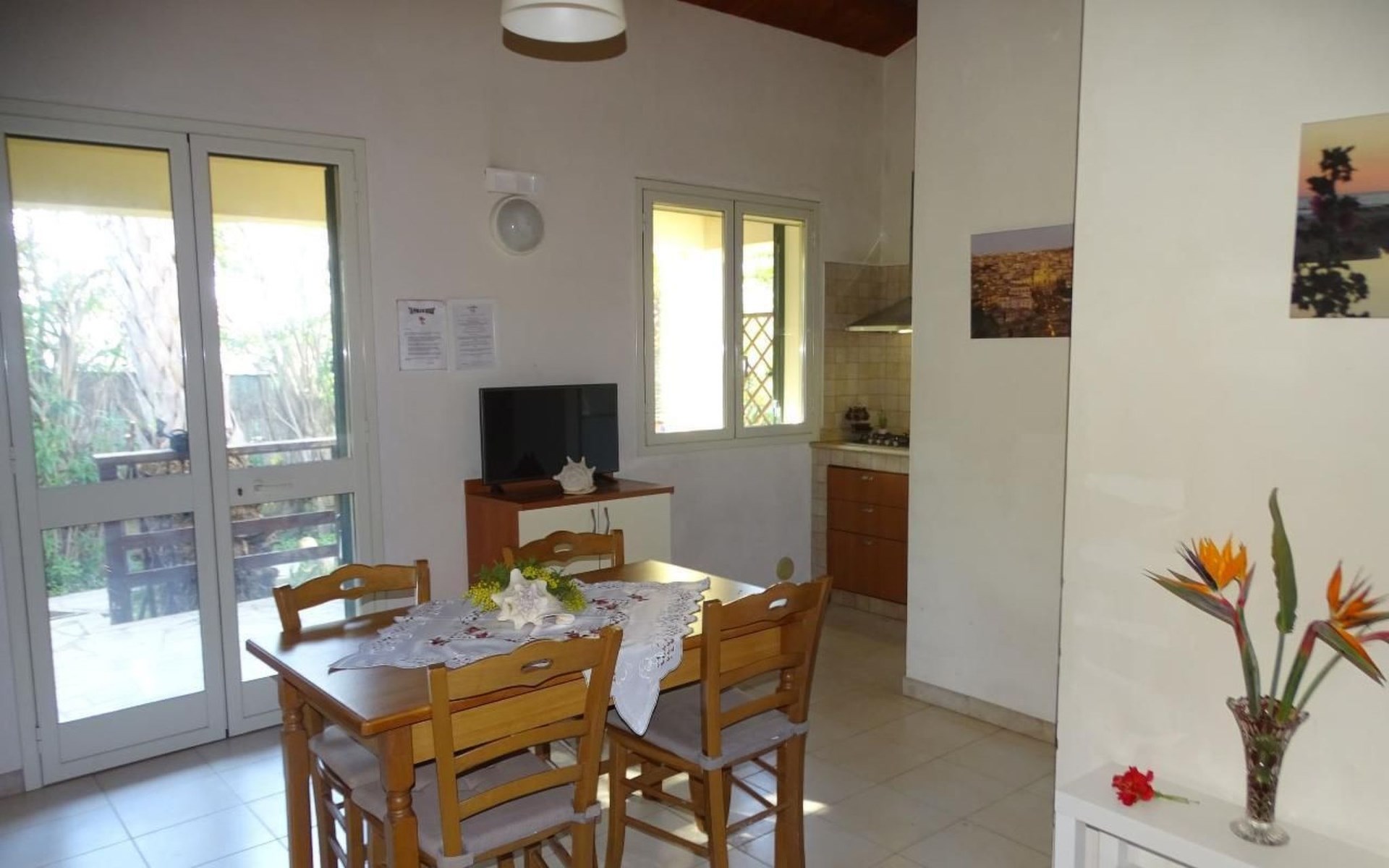 De bungalows zijn omgeven door typische mediterrane vegetatie zoals prachtige oleander-, citroen-, sinaasappel- en vijgenbomen, maar ook kleine en grote palmbomen. Een nieuw gebouwde speeltuin en een tafeltennistafel zorgen voor plezier voor de kinderen.Babybedjes, kinderstoelen en kinderspeelgoed zijn op aanvraag gratis.Om alle interessante steden en archeologische vindplaatsen in de omgeving te bereiken adviseren wij u een auto te huren. Als u dat wenst, krijgen we een huurauto voor u.Houd er rekening mee dat in de maanden juli en augustus, wanneer de lokale bevolking op vakantie gaat, er tot laat in de nacht luide muziek kan zijn rond ons bungalowpark, want tussen deze periode worden er dans-, dans-, muziek- en theatervoorstellingen voor het vermaak georganiseerd en komt onze rustige badplaats tot leven.