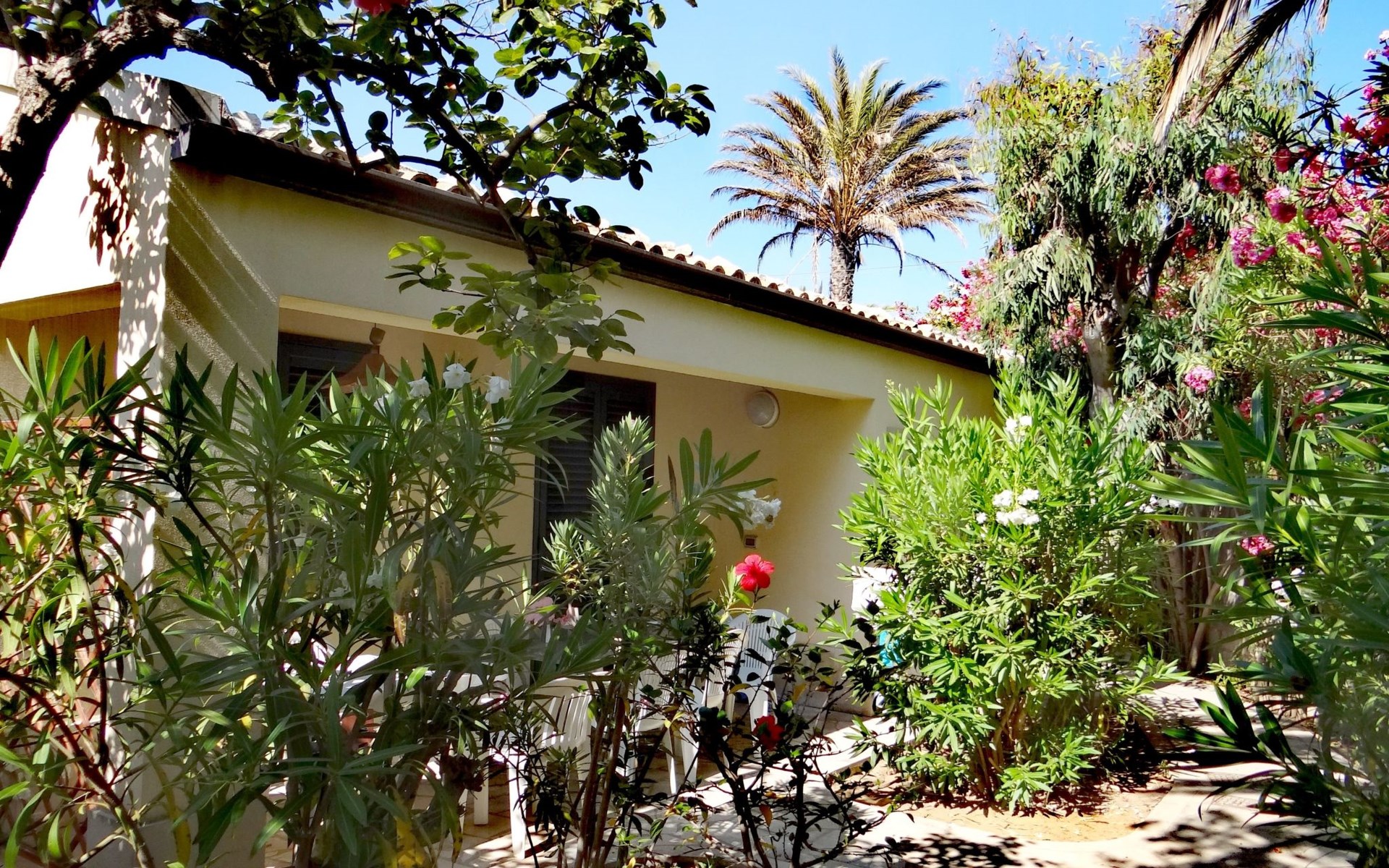 De bungalow is rustig gelegen in het park, vlak naast een van de mooiste zandstranden van Sicilië. De zanderige baai is omgeven door prachtige duinen en de zee van vlakke aflopende zandstrand nodigt u uit voor een heerlijke baden ervaring voor jong en oud. Het centrum van Marina di Modica, met winkels, restaurants, bars en "ijssalons" is bereikbaar te voet in enkele minuten.De vrijstaande bungalows in het park zijn mooi oleanders, citroen, sinaasappel-en vijgenbomen en omgeven door prachtige, grote en kleine palmen.De bungalows zijn volledig ingericht en bestaat uit twee aparte slaapkamers, een woon-eetkamer met keuken, douche en toilet en airconditioning (tegen extra betaling).Er is ook een terras en een parkeerplaats buiten het park.Door de centrale ligging direct aan het zandstrand en het centrum in de grote kan het luider worden tijdens de maanden juli en augustus.MARINA DI MODICADe badplaats Marina di Modica is aan de kust, tussen Sampieri en Pozzallo, in het zuidelijke puntje van Sicilië. Het zandstrand is omgeven door duinen en is een van de mooiste kusten van het eiland. De flat in de zee aflopende zandstrand is ideaal voor gezinnen met kleine kinderen, maar ook voor senioren en jongeren. Op het zandstrand waterfietsen, kano's en zijn strandstoelen toegekend tegen een redelijke prijs. Marina di Modica is de ideale ontspannen vakantie voor jong en oud. Van half juli tot eind augustus, toen de lokale bevolking naartoe op vakantie gaat, gebracht in de anders zo rustige badplaats aan het leven en dan live-muziek, theater en strandbars zorgen voor entertainment in de late uurtjes. In de winter, warm, lente-achtige temperaturen uit te nodigen voor de winter een in Sicilië.BEZIENSWAARDIGHEDENSlechts 6 km van de bungalow park is weg het kleine vissersdorp van Pozzallo met talrijke winkels en winkelen en een prachtige, omgeven door palmbomen 'piazza'. Wie legt de nadruk op verse vis, die hier geheel op zijn kosten. De barokke stad van Modica ligt op slechts 15 minuten met de auto van Marina di Modica en is wat je zou verwachten van een typisch Siciliaanse stad. Hier bruist het leven van de vroege ochtend tot laat in de nacht. Even indrukwekkend is de oude stad van Modica, met zijn talrijke barokke kerken, zoals de kathedraal van San Giorgio, zowel overdag als 's nachts! EXCURSIESInteressante bestemmingen zijn, Syracuse, Agrigento, Palermo, Segesta, Selinunte, Cefalù, Piazza Armerina, Catania, Cava d'Ispica Camarina, Castello di Donnafugata, Ragusa, Modica, Noto, Ragusa, Taormina en natuurlijk de Etna. Excursies of dagtochten van naburige Pozzallo naar het nabijgelegen eiland Malta kunnen geboekt worden bij ons.