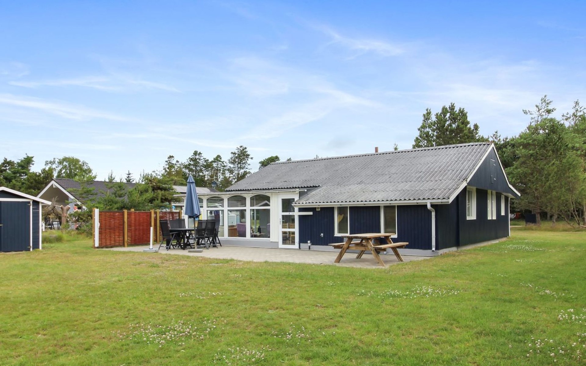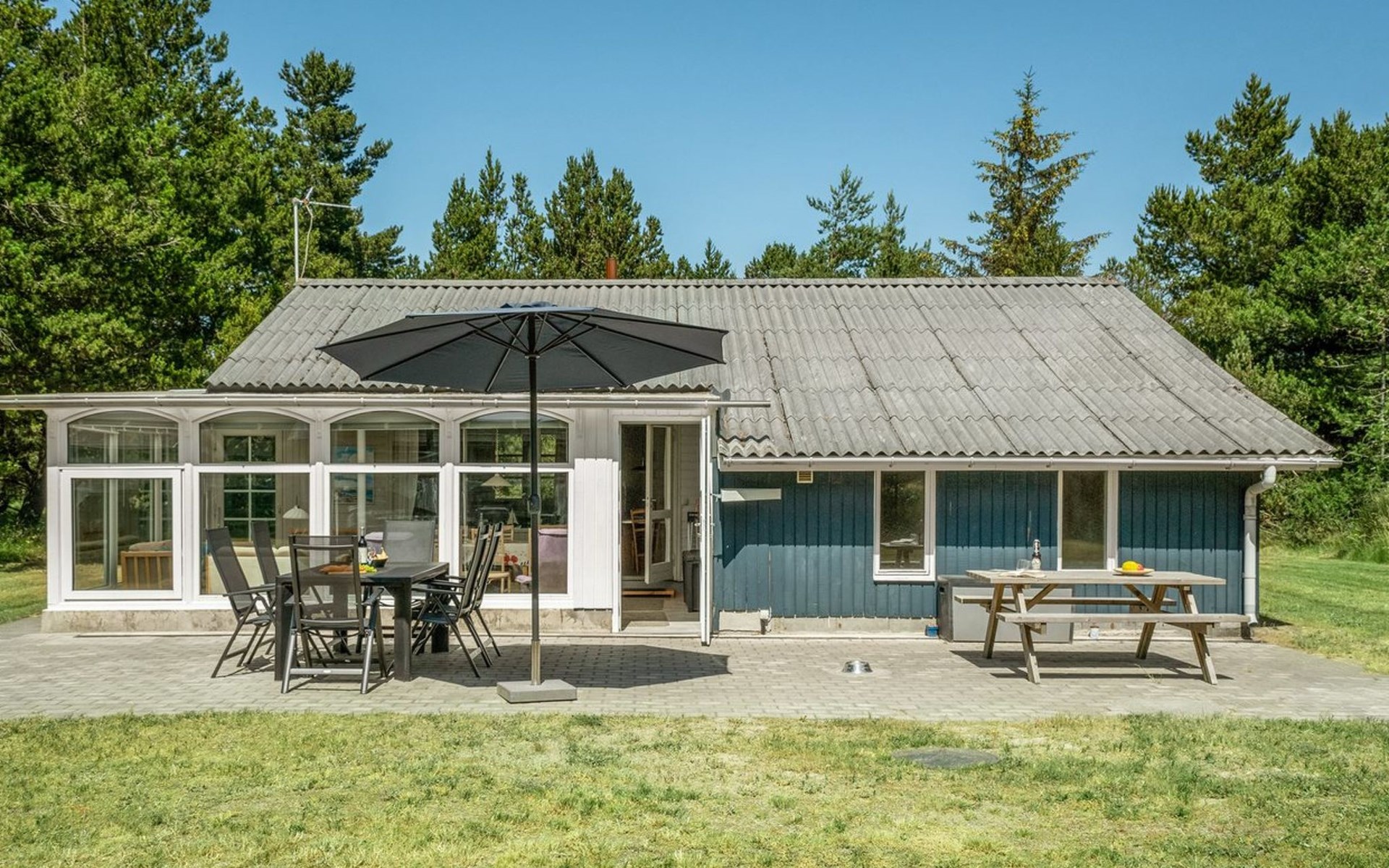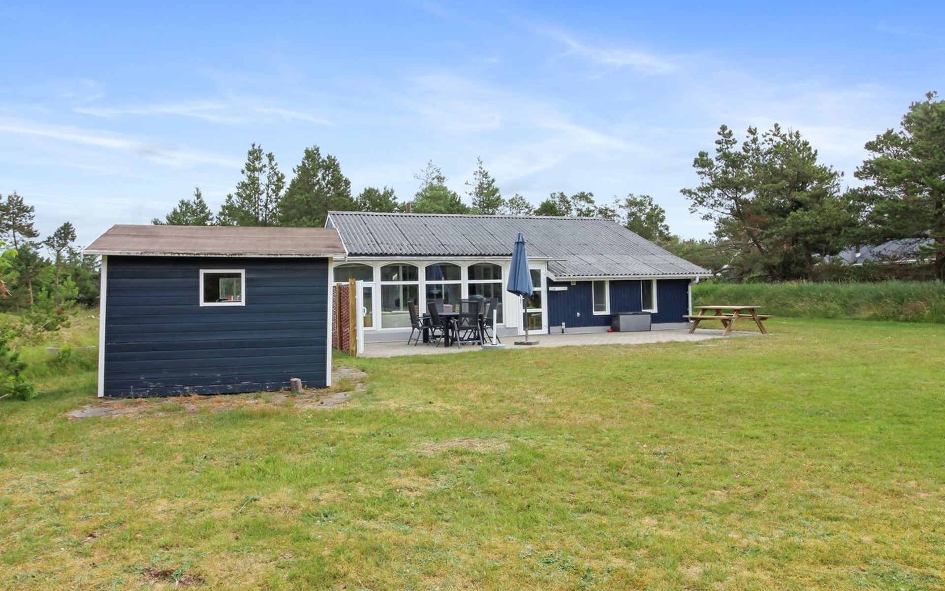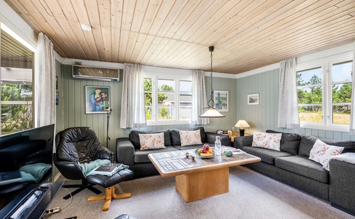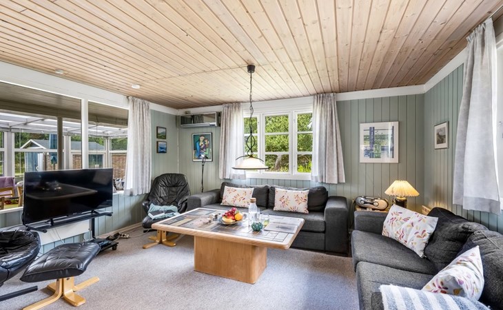 Eengezinswoning, bouwjaar 1970. 1.5 km van zee. Voor alleengebruik: wild terrein 1.786 m2. Terras (25 m2), kinderspeelplaats (schommel). In het huis: sauna, wasmachine, droger. Parkeerplaats bij het huis. Levensmiddelenwinkel 300 m. De eigenaar accepteert geen jeugdgroepen.
