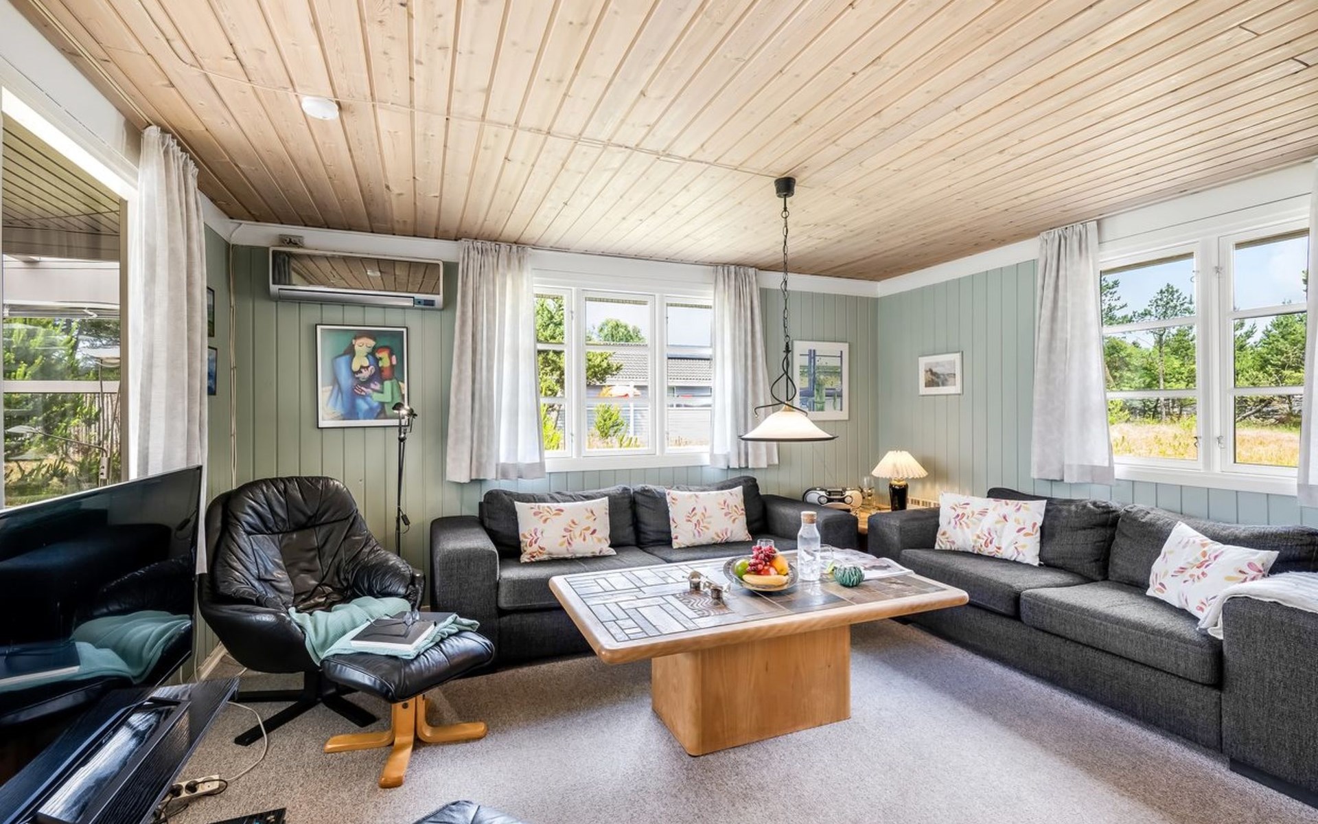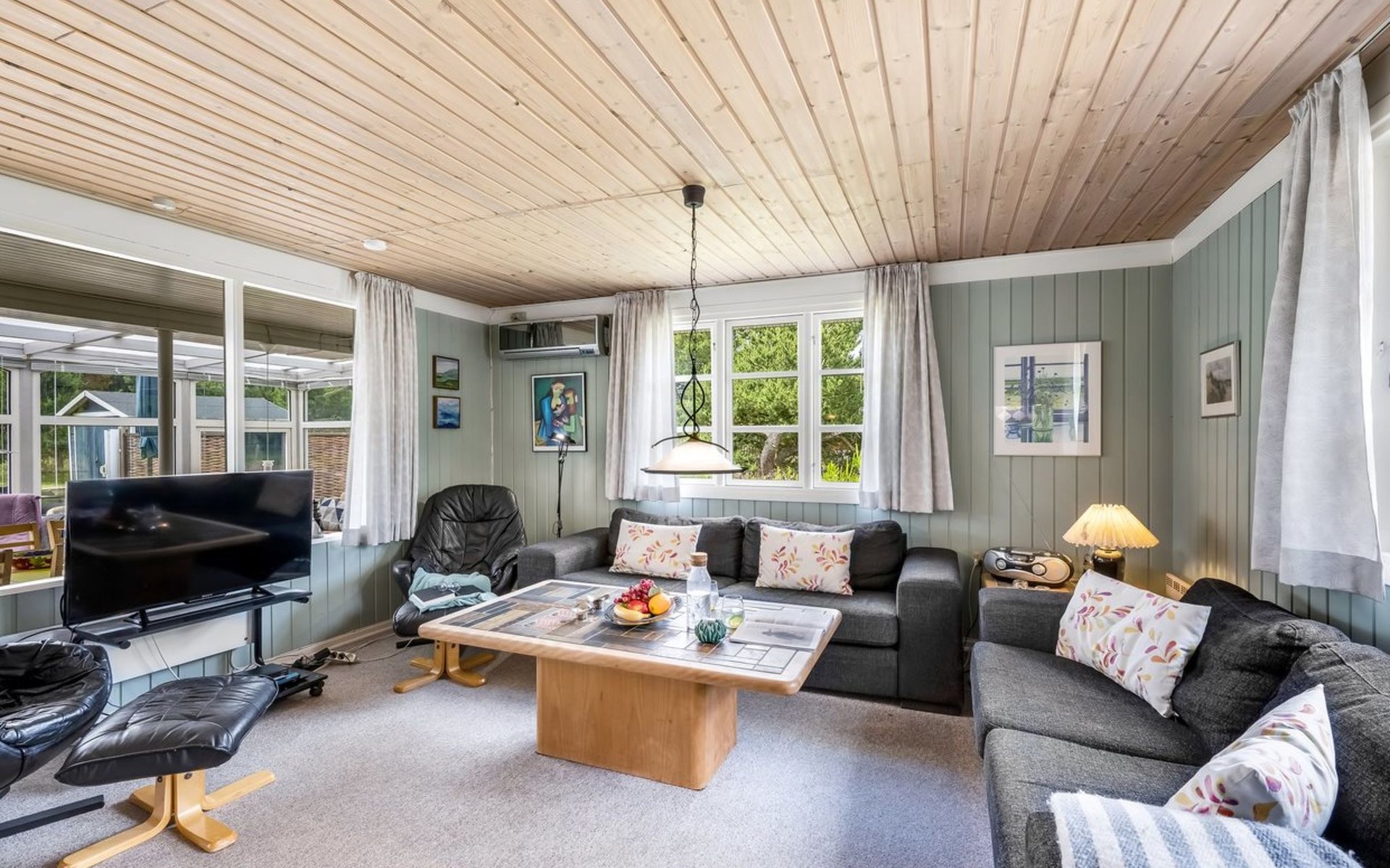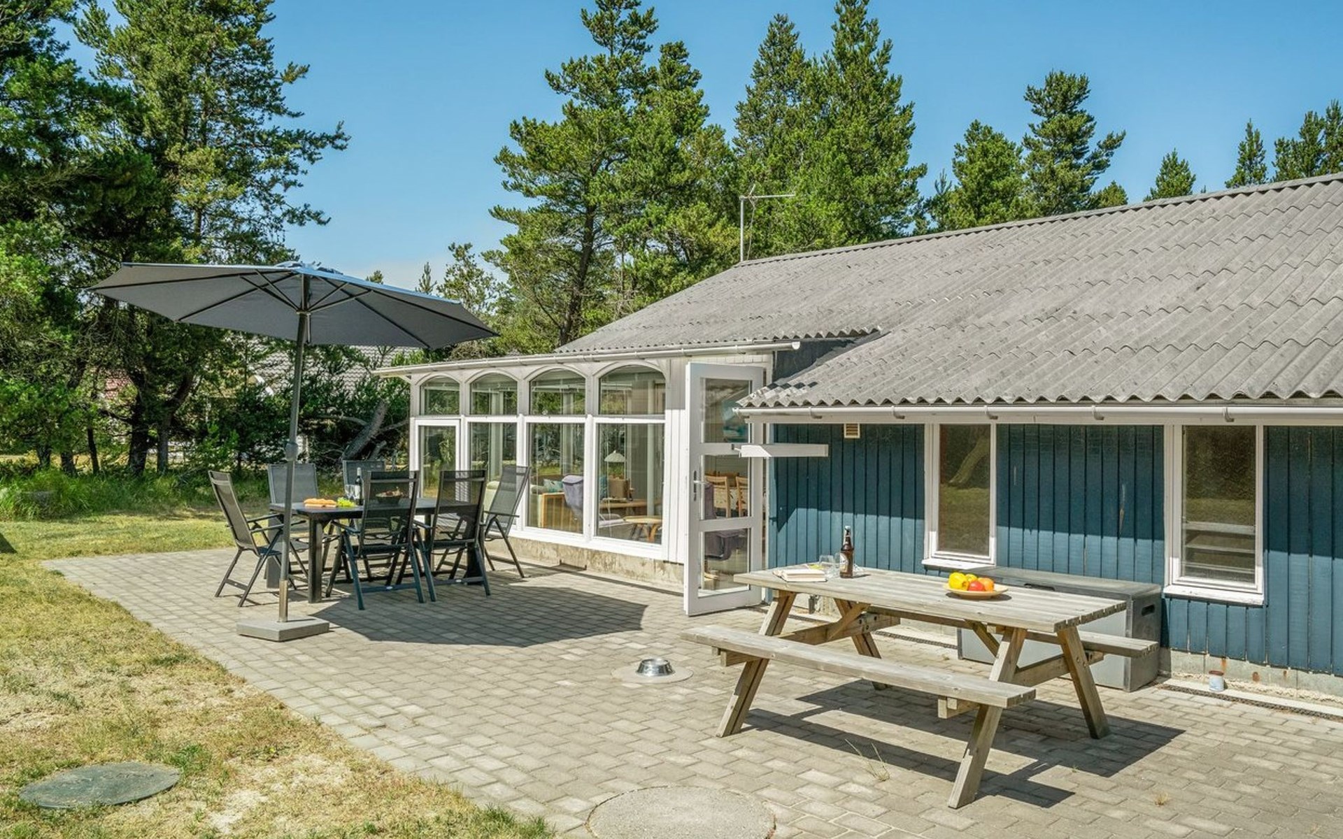 Eengezinswoning, bouwjaar 1970. 1.5 km van zee. Voor alleengebruik: wild terrein 1.786 m2. Terras (25 m2), kinderspeelplaats (schommel). In het huis: sauna, wasmachine, droger. Parkeerplaats bij het huis. Levensmiddelenwinkel 300 m. De eigenaar accepteert geen jeugdgroepen.