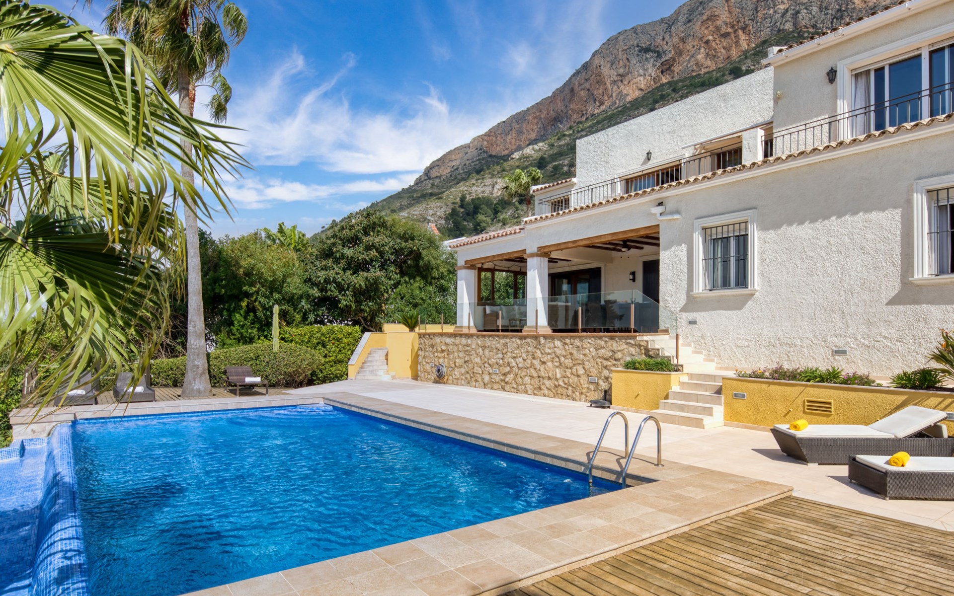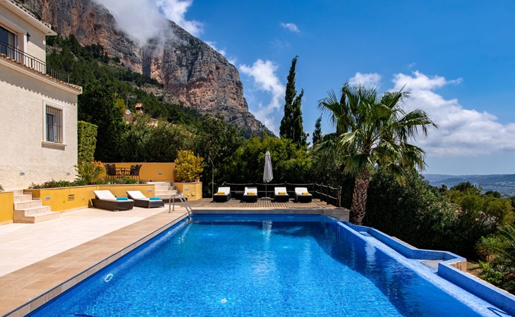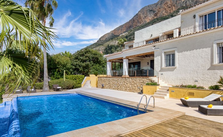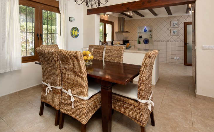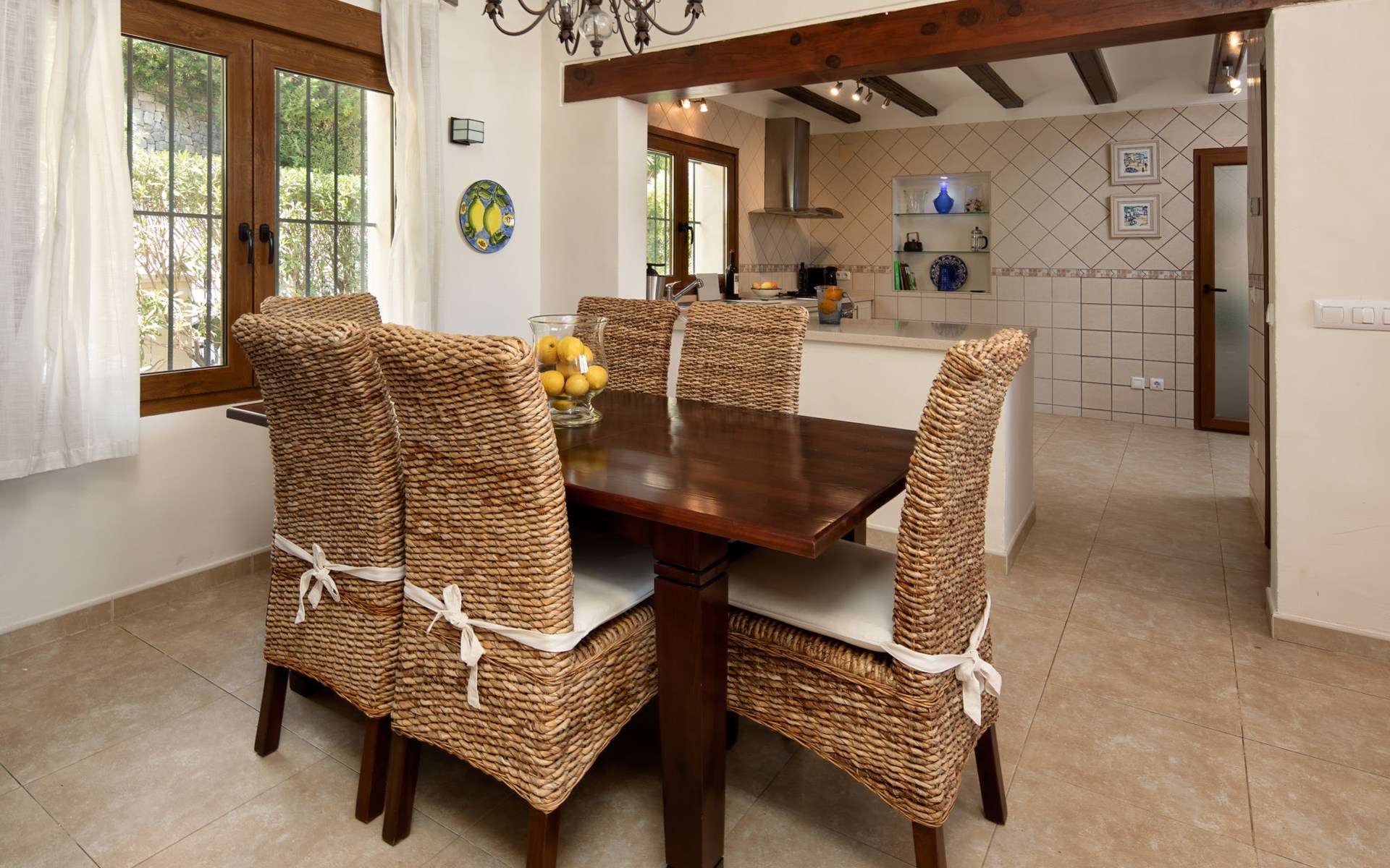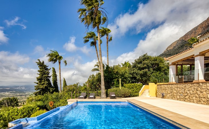 Mooi villa "Centauro", van 2 verdiepingen. In de wijk Montgo, rustige, zonnige, verhoogde ligging in een woonwijk, 9 km van zee. Voor alleengebruik: tuin op verschillende niveaus, 1.000 m2 (omheind) met planten, boomgaard, openluchtzwembad (5 x 11 m, seizoensgebonden beschikbaarheid: 01.Jan. - 31.Dec.) met trap. Supermarkt 1.5 km, winkelcentrum 6 km, restaurant 1.5 km, zandstrand "Arenal" 9 km. Groepen jongeren uitsluitend op aanvraag.