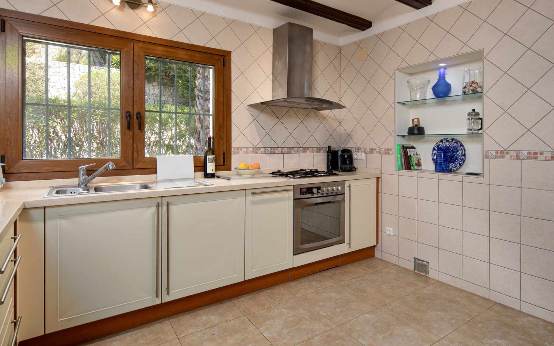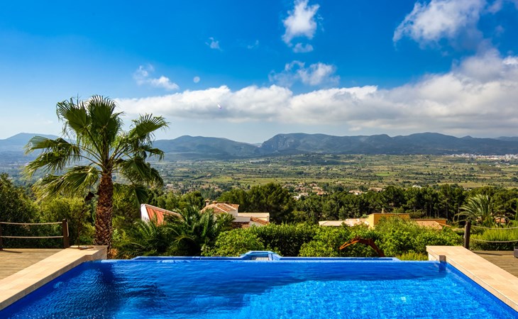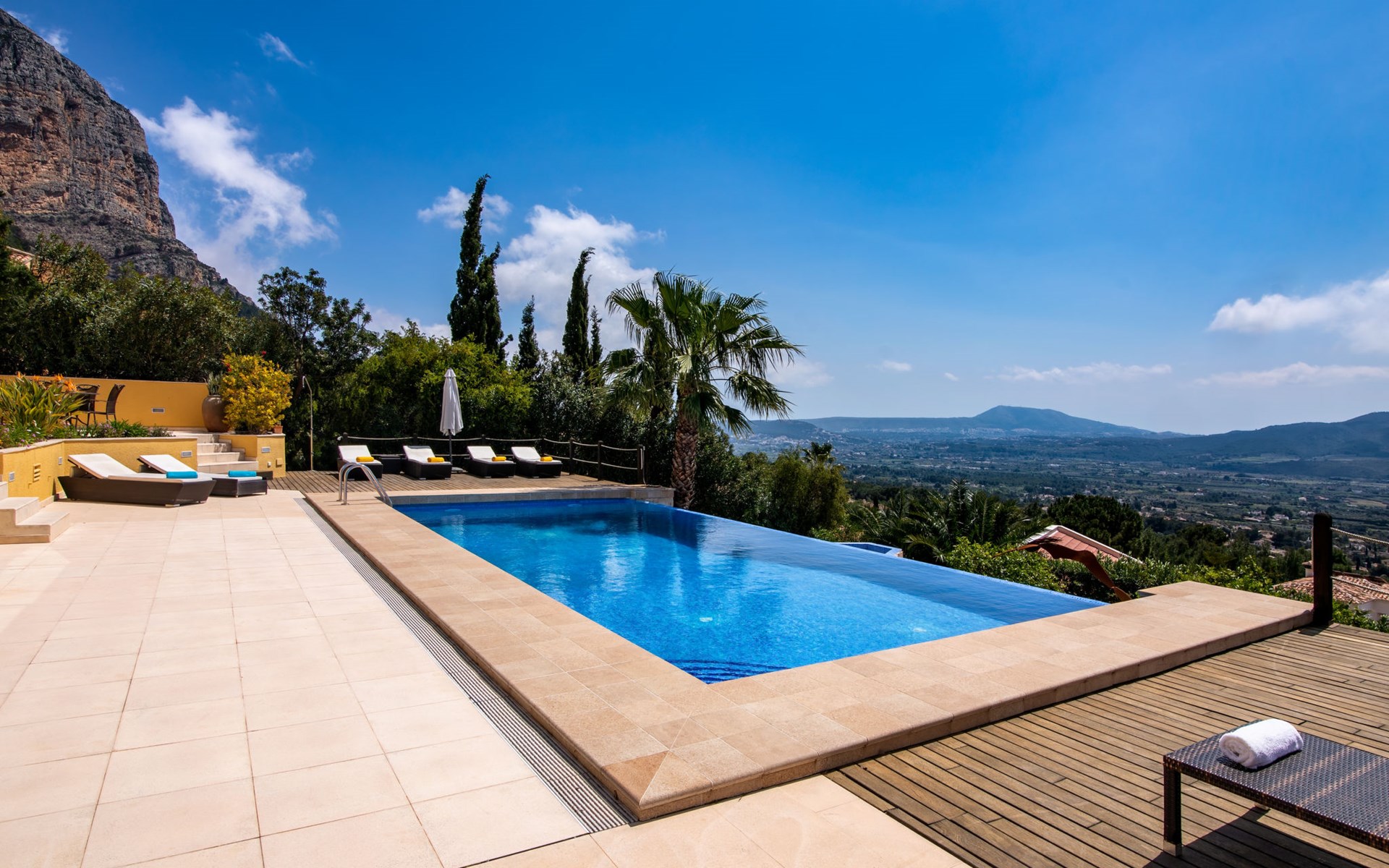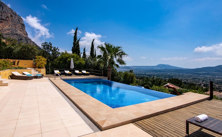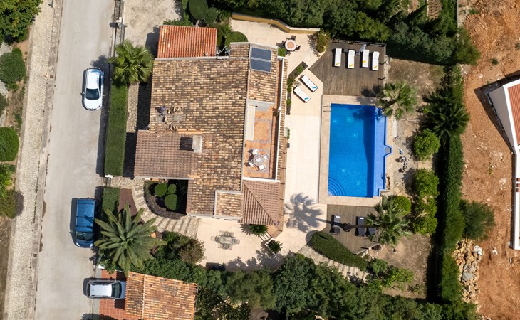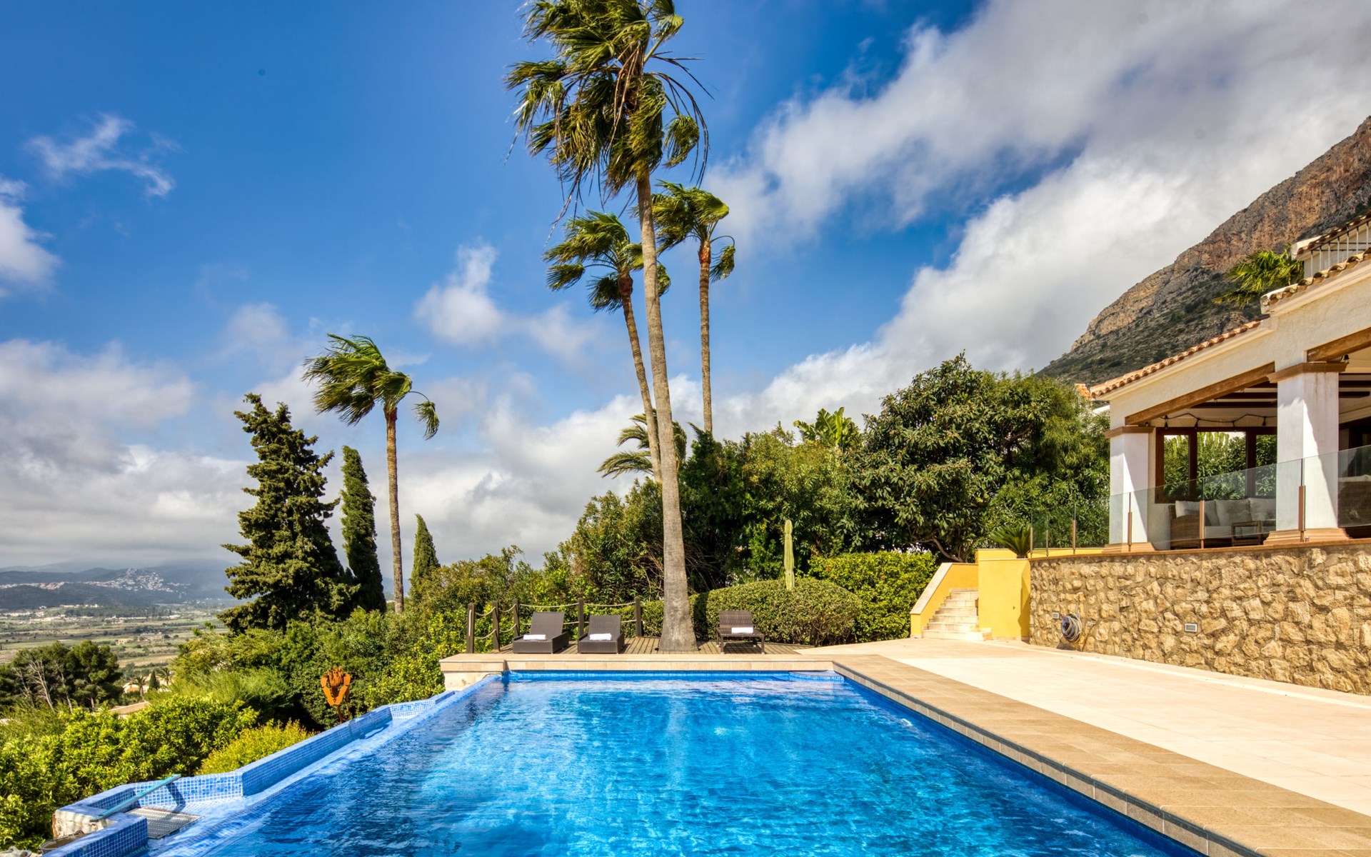 Mooi villa "Centauro", van 2 verdiepingen. In de wijk Montgo, rustige, zonnige, verhoogde ligging in een woonwijk, 9 km van zee. Voor alleengebruik: tuin op verschillende niveaus, 1.000 m2 (omheind) met planten, boomgaard, openluchtzwembad (5 x 11 m, seizoensgebonden beschikbaarheid: 01.Jan. - 31.Dec.) met trap. Supermarkt 1.5 km, winkelcentrum 6 km, restaurant 1.5 km, zandstrand "Arenal" 9 km. Groepen jongeren uitsluitend op aanvraag.