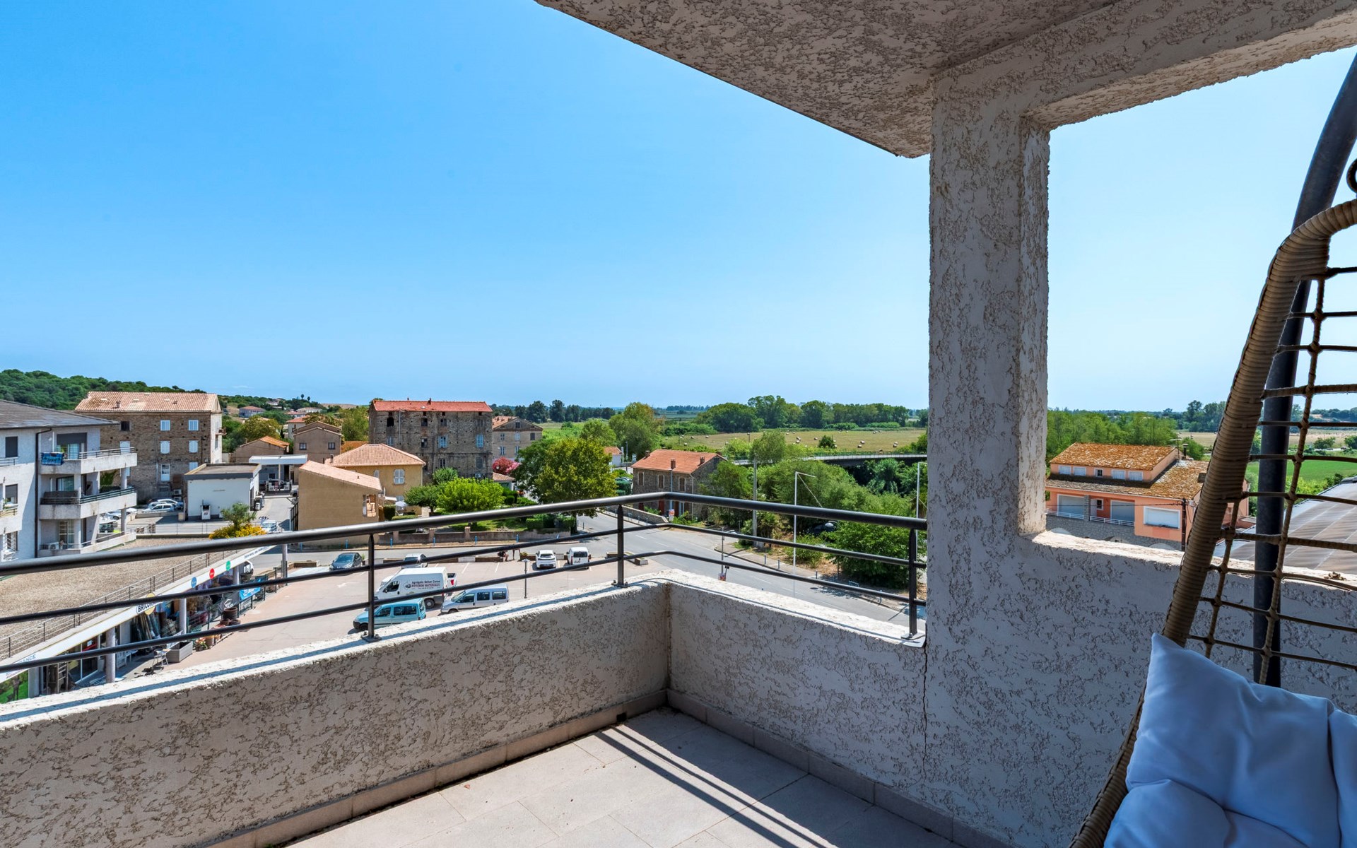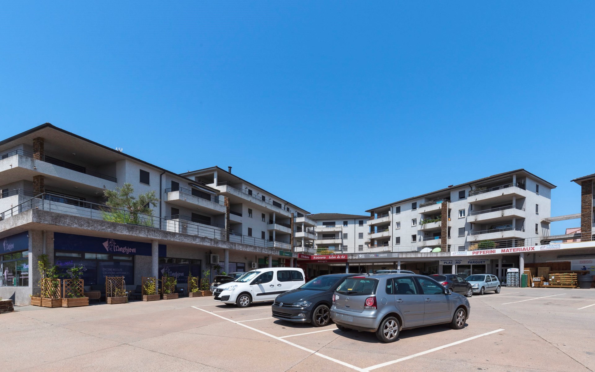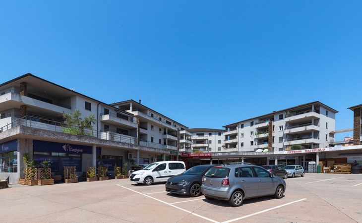 Aléria: Residentie "La vallée", van 4 verdiepingen. In het centrum van Aléria, 320 m van zee, 3.2 km van het strand. Parkeerplaats (voor 2 auto's). Winkel 20 m, supermarkt 550 m, restaurant 300 m, bar 90 m, bakkerij 500 m, café 90 m, bushalte 350 m, zandstrand "Plage d'Aléria" 3.2 km. Jachthaven 34 km. Attracties in de buurt: Site archéologique d'Aléria 2.1 km, Etang de Diana 2.8 km. Auto noodzakelijk.