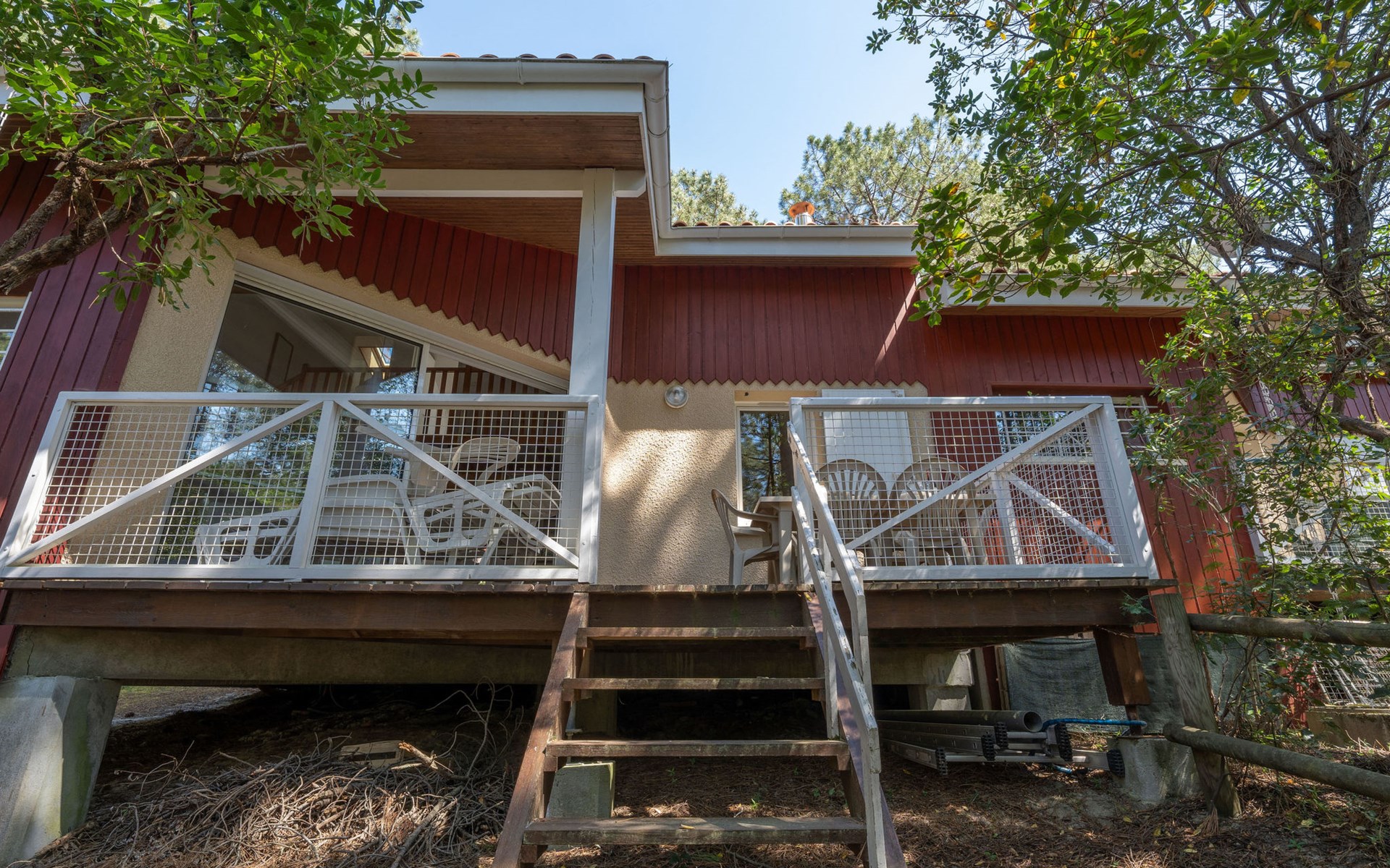Residentie "Golf Loisirs". Aan de rand van de plaats, 2 km van het centrum, 2 km van zee, 5 km van het meer, 2 km van het strand. Voor medegebruik: openluchtzwembad (13 x 17 m, 180 cm diepte, seizoensgebonden beschikbaarheid: 18.Jun. - 18.Sep.). Parkeerplaats op het terrein. Winkel 2 km, supermarkt 2 km, restaurant 700 m, fietsverhuur 300 m, bushalte "Marie Curie" 1.7 km, zandstrand "Plage Sud" 2 km. Golfterrein (18 holes) 500 m, surfschool 3 km, zeilschool 6 km, tennis 300 m, manege 1.5 km, fietspad 200 m. Attracties in de buurt: Bordeaux 60 km, Dune du Pyla 70 km, saint Emilion 60 km, Cap Ferret 70 km. De eigenaar accepteert geen jeugdgroepen.
