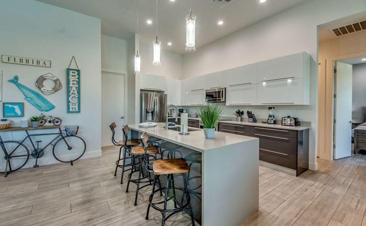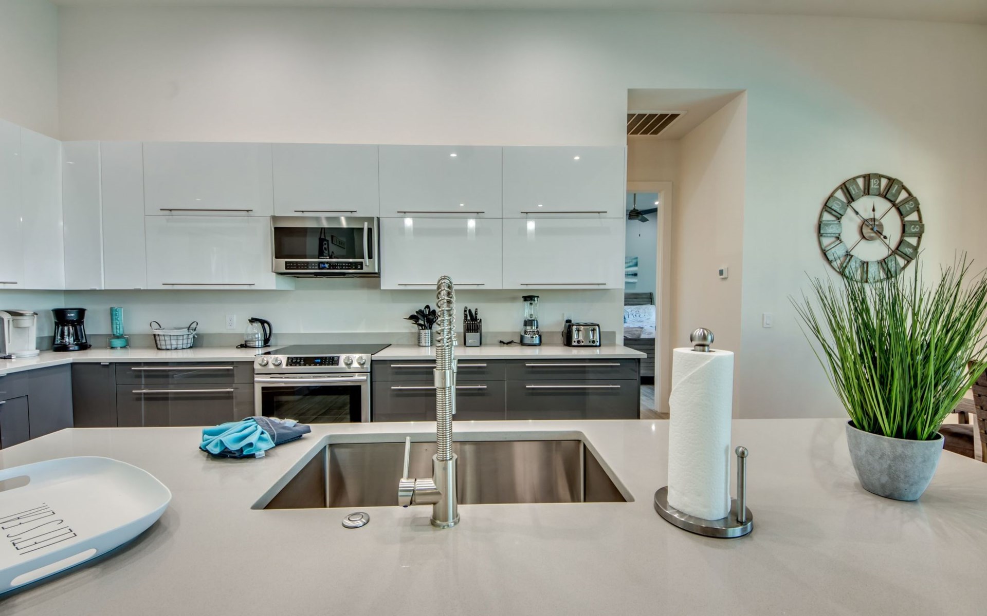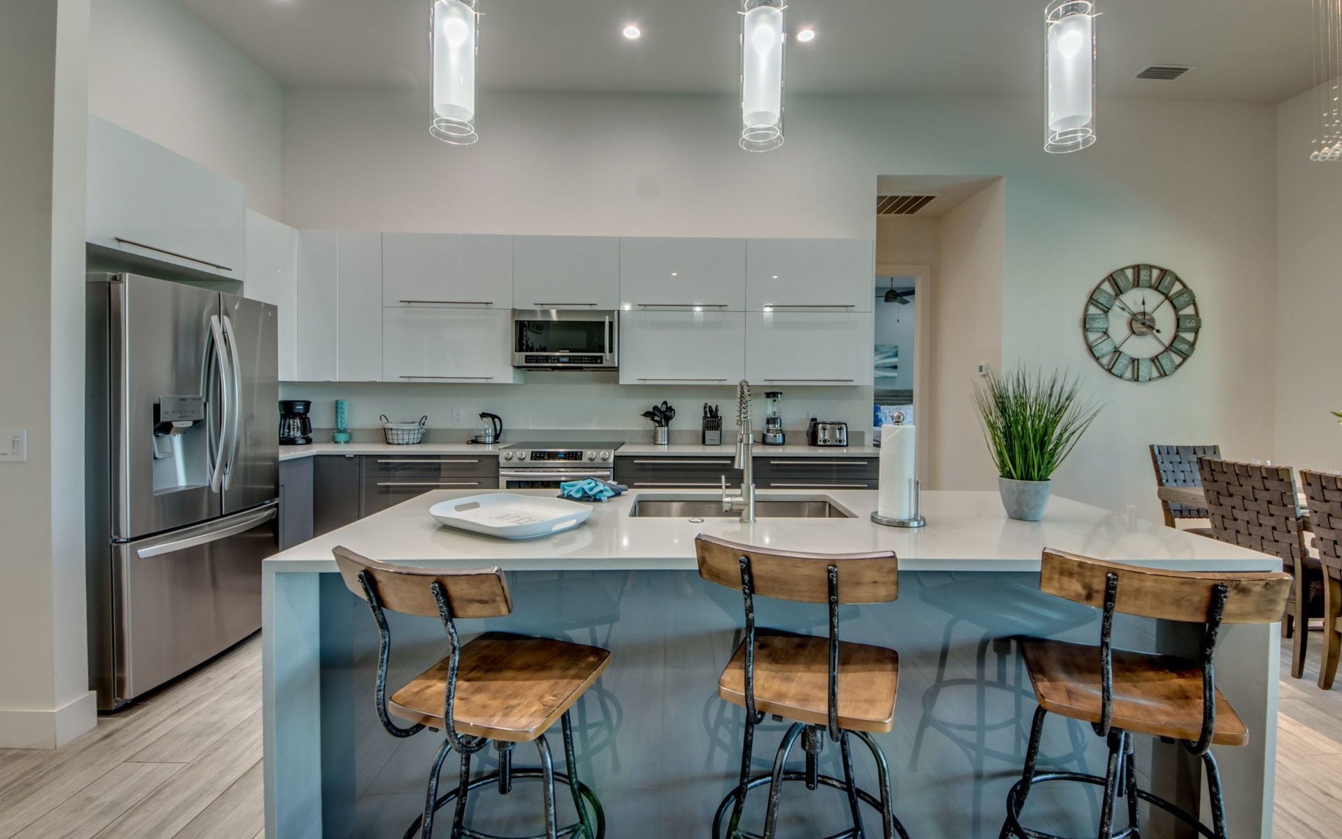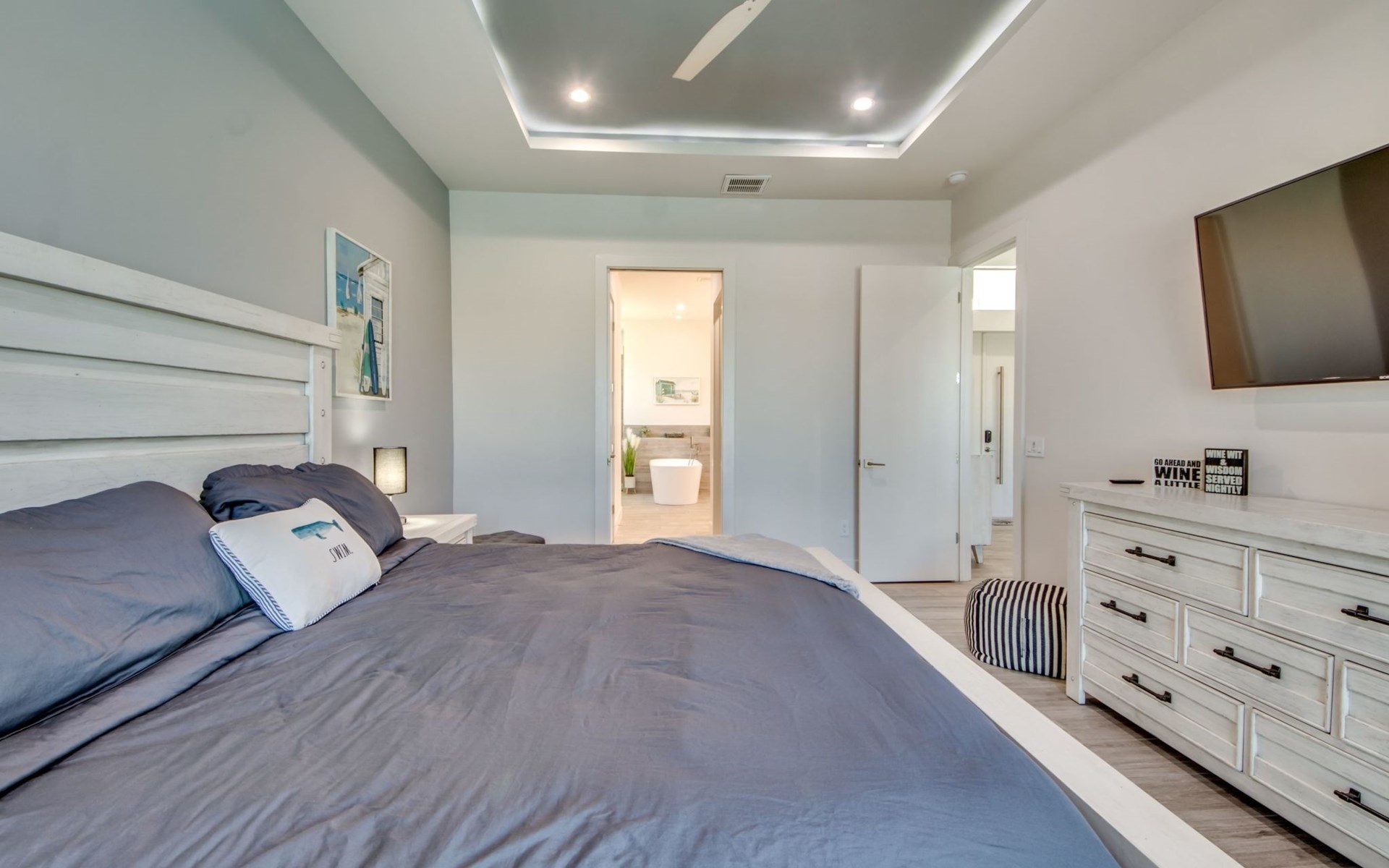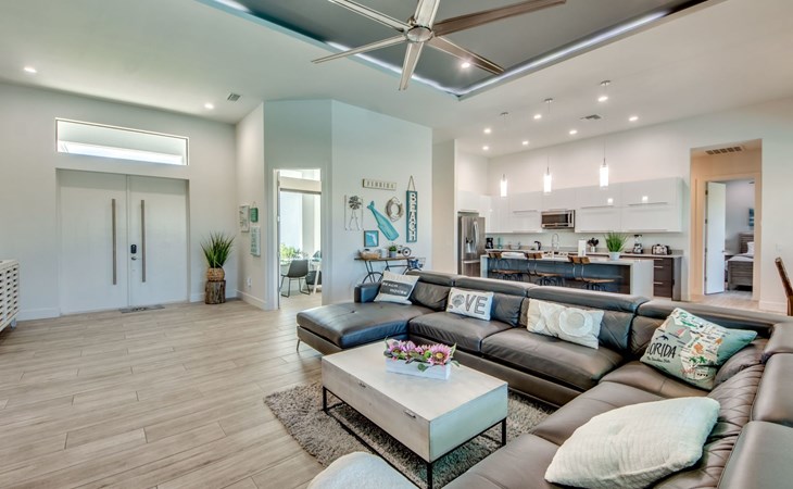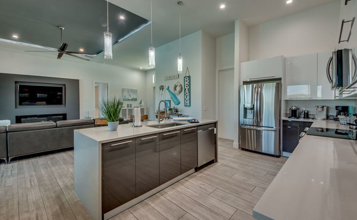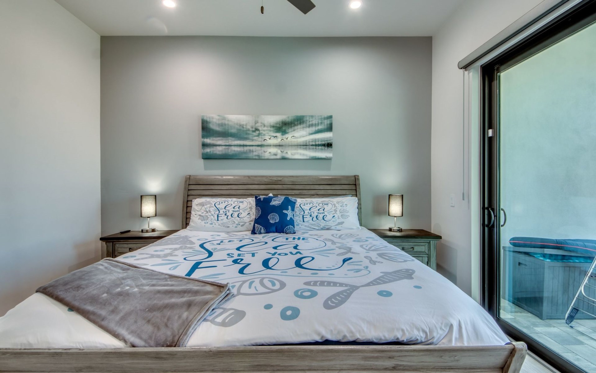 The Villa Maui with heated private pool in the holiday resort of Cape Coral on the west coast of Florida invites you to enjoy a holiday with state-of-the-art facilities and pure luxury in an excellent location with many excursion and shopping opportunities nearby.the Villa Maui was only built in 2019 in a modern style. It is located in a quiet area directly on a south-west facing canal, where you can enjoy the sunset with a view over the canal and experience a wonderful holiday on the Gulf Coast of Florida. Experience the best comfort for your relaxing holiday.Villa Maui is on one level and is approx. 204m² in size.The large, open-plan living room is located in the centre of the house with the open-plan kitchen and spacious dining area. The high ceilings and large windows give the rooms a spacious and bright feel. An oversized fan hangs from the ceiling in the living room.In the living room you will find a large lounge area and a large Smart TV as well as a fireplace.In the open, fully equipped kitchen you will find, among other things:- microwave- oven- French door fridge with freezer compartment and ice cube maker- Food processor- Egg cooker- Nespresso Vertuo coffee machine- Keurig coffee machine- Filter coffee machine- Milk frother- Pots, pans, crockery, cutlery, glasses etc.- Dishwasher- Kettle- Children's crockery and cutleryThe dining area easily seats up to 7-8 people.The windows in the living room and dining area can be blacked out. This ensures privacy, sun protection and privacy at all times.The so-called MASTER AREA is located in the right-hand area.In the master bedroom you have a king-size bed, smart TV, fan, direct pool access and access to the master bathroom. The doors in the master bedroom have electric darkening and an alarm that can be activated if necessary (children).In the master bathroom with natural light, you can shower comfortably in the walk-in rain shower and take a cosy bath in the free-standing bathtub. 2 washbasins, drawers, make-up mirror, hairdryer, towels, bath towels and a separate toilet complete the offer.There are 2 guest rooms and the guest bathroom on the left-hand side of the house.Guest room 1:- large double bed- Access to the pool area- Electric darkening of the doors- Alarm on the doors if required- Smart TV- built-in wardrobe- fanGuest room 2:- large double bed- window- fan- Smart TV- built-in wardrobeGuest bathroom:- Toilet- Walk-in shower with rain shower- Hand towels- Bath towels- Washbasin- Storage facilities- Hairdryer- make-up mirrorOffice/ 3rd guest room- Pull-out sofa- Writing desk- chair- Fan- Blackout blinds on the windowsOf course, we also have something for our younger guests:- free baby cot- baby monitor- high chair- children's cutleryThe Loundry contains the following:- Washing machine- tumble dryer- Ironing board and iron- Hoover- Shopping baskets and bagsThe house has central air conditioning.The pool area is easily accessible from the living room. Experience a breathtaking view over the wide freshwater canal. The plot has beautiful palm trees and we have planted a palm hedge to the neighbouring properties.The heated pool is over 9 metres long and invites you to splash around and relax. The pool area is completely enclosed by a screen. This keeps the mosquitoes away.There are plenty of new sun loungers, cushions and parasols around the pool. A weekly pool service ensures good water quality.A new outdoor kitchen with barbecue, fridge and shelves makes for great barbecue evenings by the pool. Enjoy marvellous sunsets with a view over the canal. Sun worshippers will get their money's worth thanks to the good south-west orientation.There is also a lounge area. A large dining area for up to 10 people and ceiling fans on the terrace round off the offer.New: we have had hurricane shutters installed on the terrace. The shutters not only protect against the storm, but our guests can also adjust them electrically to protect them from the sun, rain and wind on the terrace. Enjoy your holiday to the full.New: TV on the terrace, watch TV in the pool!Bath towels, towels and bed linen are included in the price. Beach chairs and umbrellas for your beach visit can be used free of charge.You can park your car safely in the garage.Please note that security cameras are installed in front of the house at the garage and entrance for your safety. It is not permitted to tamper with the electrics, Wi-Fi router or TV sets!-You can easily access the pool area from the living room. Experience a breathtaking view over the wide fresh water channel. The plot has beautiful palm trees and we have planted a palm hedge to the neighbouring properties.The heated pool is over 9 metres long and invites you to splash around and relax. The pool area is completely enclosed by a screen. This keeps the mosquitoes away.There are plenty of new sun loungers, cushions and parasols around the pool. A weekly pool service ensures good water quality.A new outdoor kitchen with barbecue, fridge and shelves makes for great barbecue evenings by the pool. Enjoy marvellous sunsets with a view over the canal. Sun worshippers will get their money's worth thanks to the good south-west orientation.There is also a lounge area. A large dining area for up to 10 people and ceiling fans on the terrace round off the offer.New: we have had hurricane shutters installed on the terrace. The shutters not only protect against the storm, but our guests can also adjust them electrically to protect them from the sun, rain and wind on the terrace. Enjoy your holiday to the full.Bath towels, towels and bed linen are included in the price. Beach chairs and umbrellas for your beach visit can be used free of charge.The screen protects you from mosquitoes on the terrace.Sunshades, sunbeds and bath towels are available for free use in the house.Various toys and air mattresses may be available on site and a lounge area has been integrated.The front garden was also embellished in October 2021 with new plants an