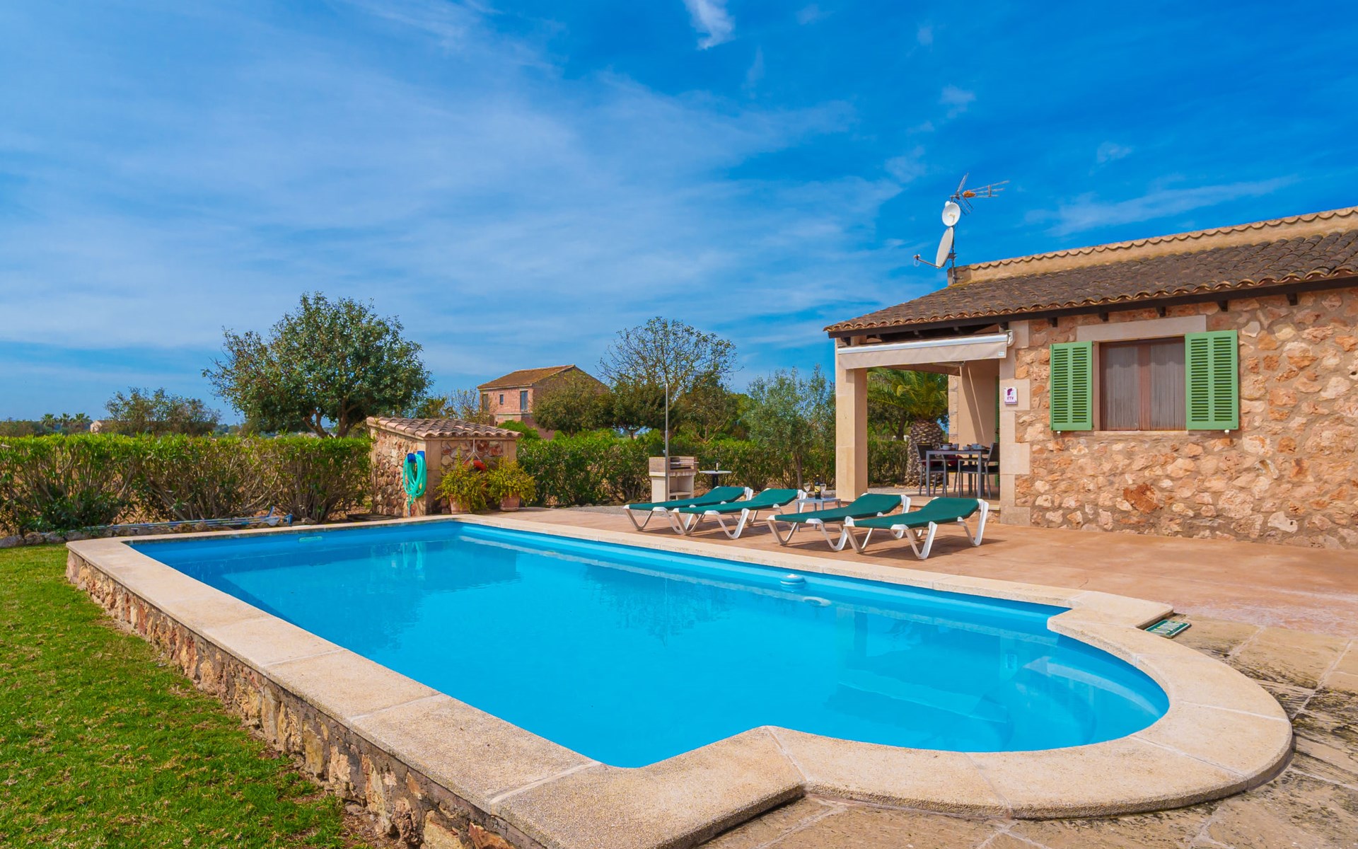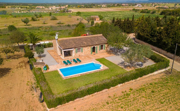 Mooi landgoed "Marineta", omgeven door velden. 5 km van het centrum van Sa Rápita, 9 km van het centrum van Campos, 46 km van het centrum van Palma, 3 km van zee. Voor alleengebruik: wild terrein 7.000 m2, tuin 1.000 m2 (omheind) met gazon en planten, openluchtzwembad (7 x 3 m, seizoensgebonden beschikbaarheid: 01.Jan. - 31.Dec.). Buitendouche, parkeerplaats op het terrein. Winkel 5 km, supermarkt 9 km, bushalte "Sa Rapita" 4 km, zandstrand "Es Trenc" 3 km. Auto noodzakelijk.
