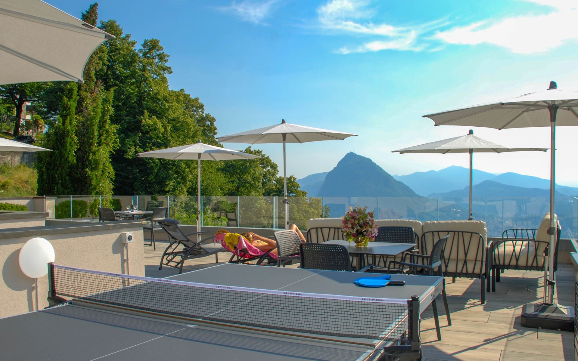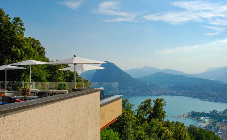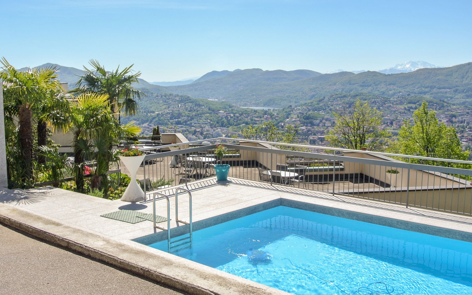 Aldesago 6 km van Lugano: Temidden van de natuur, op de Monte Bré, bevindt zich het comfortabel flatgebouw "Residenza Monte Bré Aldesago". 34 appartementen in de woning. Boven Lugano, rustige, zonnige ligging tegen een helling, 5 m van de bosrand, 4.4 km van het meer, aan een doodlopende weg, te midden van groen. Voor medegebruik: openluchtzwembad hoekig verwarmd (12 x 4 m, 154 - 160 cm diepte, seizoensgebonden beschikbaarheid: 19.Apr. - 25.Okt.) met trap. Buitendouche, tafeltennis, terras. In het huis: centrale verwarming, wasmachine (voor medegebruik). Toegangsweg tot aan het huis (bergweg). Parkeerplaats (extra) bij het huis. Levensmiddelenwinkel 6 km, winkelcentrum 12 km, bushalte "Bus Nr. 12" 200 m, station "Lugano SBB/FFS" 7.2 km, meer Lago di Lugano. Golfterrein (18 holes) 15 km, wandelroutes 1 m vanaf het huis. Attracties in de buurt: Gandria 5 km, Swiss Miniatur, Melide 13 km, Museum Hermann Hesse, Montagnola 11 km, Mercato Ponte Tresa, IT 17 km, Como 40 km. Bekende meren kunnen gemakkelijk worden bereikt: Lago di Lugano, Lago di Como, Lago Maggiore. Wandelgebied Monte Tamaro, San Salvatore-Carona-Parco san Grato, Alpe Vicania-Morcote. Auto noodzakelijk. Geschikt voor senioren. Vergelijkbare accommodaties kunnen worden geboekt. Object referentie: CH6974.102 is gelegen op hetzelfde terrein. Gedeeltelijk zicht op Lugano. Kabelbaan "Utoring-Aldesago" 50 m. Lift alleen in het gebouw II. Overdekte parkeerplaats buiten CHF 10.00/dag, niet overdekte parkeerplaats CHF 7.00/dag, reserveren bij aankomst.