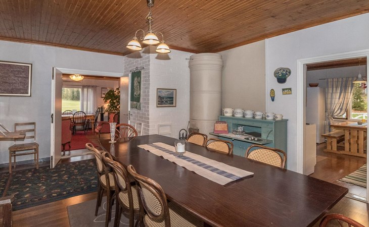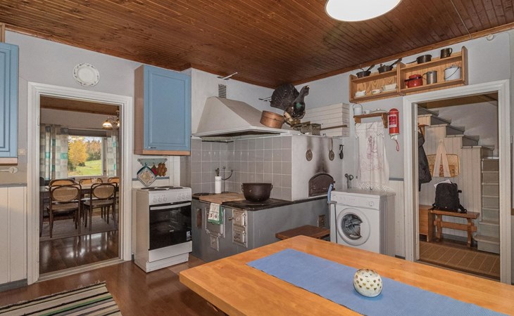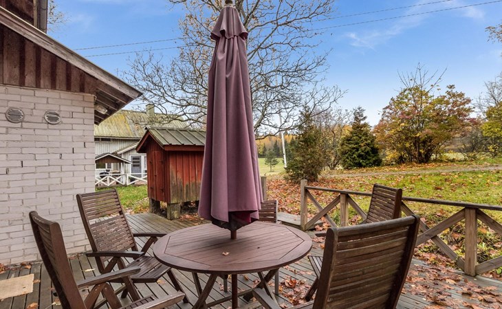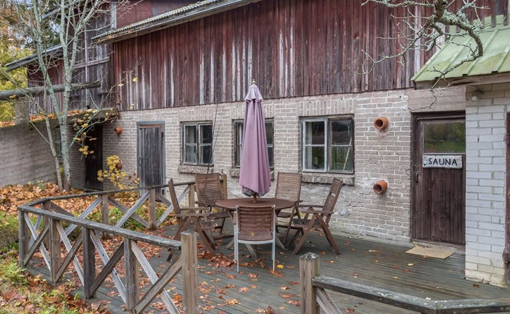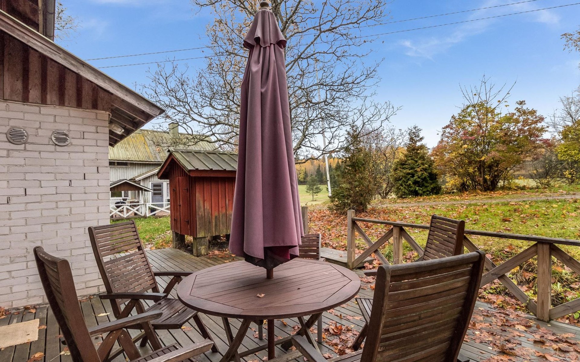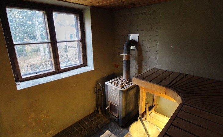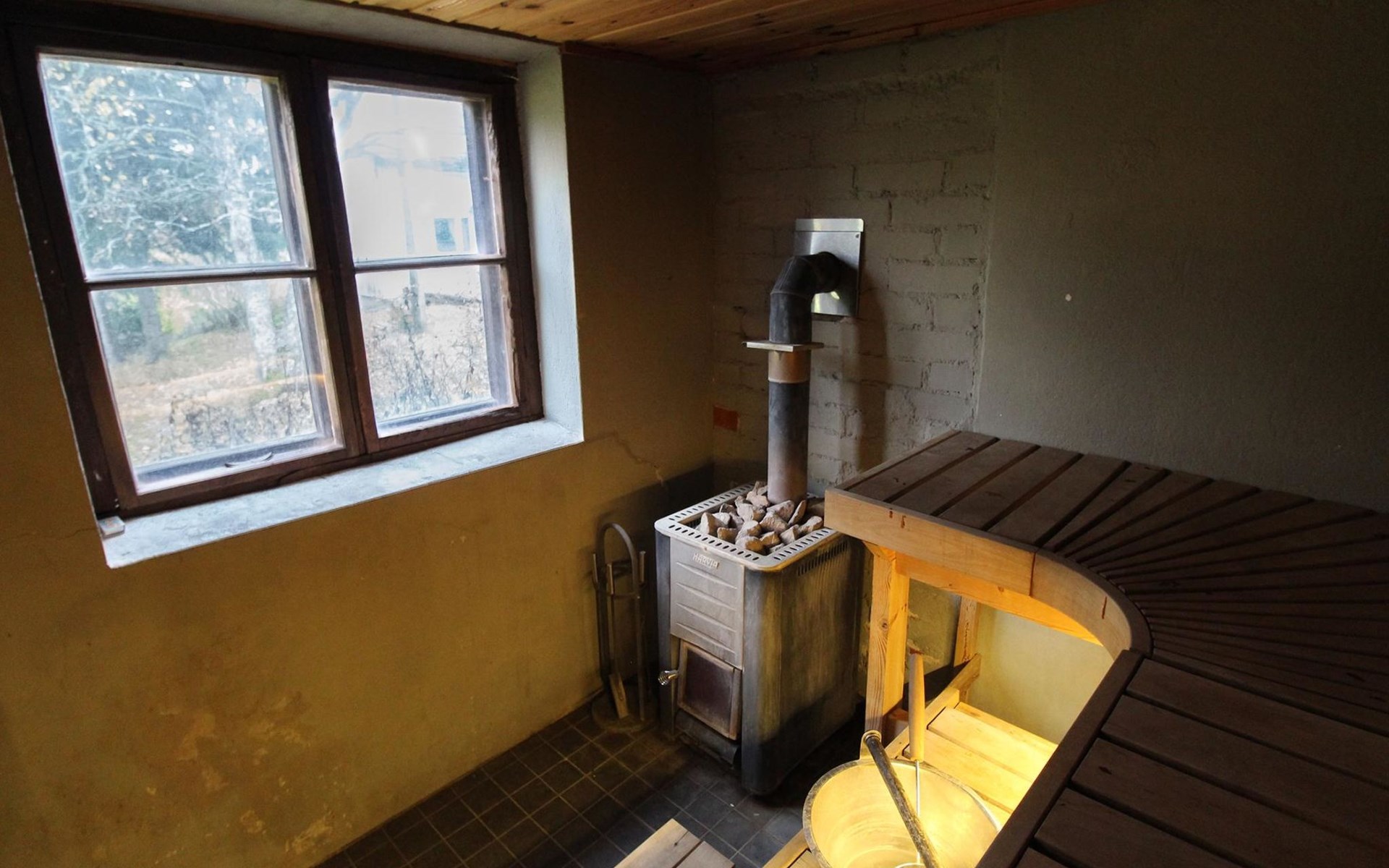 Sauna in separate yard building. Sauna has wooden stove, 2 showers and dressing room. Old country house from 1950s, renovated 2003. Suitable for several families with children. Large sunny yard, plot surrounded by fields. Yard buildings: cowhouse, wood shed, sauna. Road to a few other cottages passes through yard.