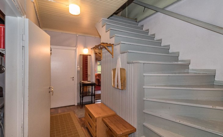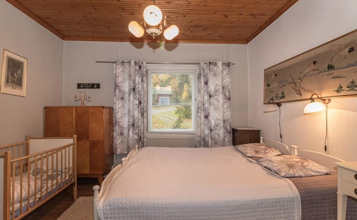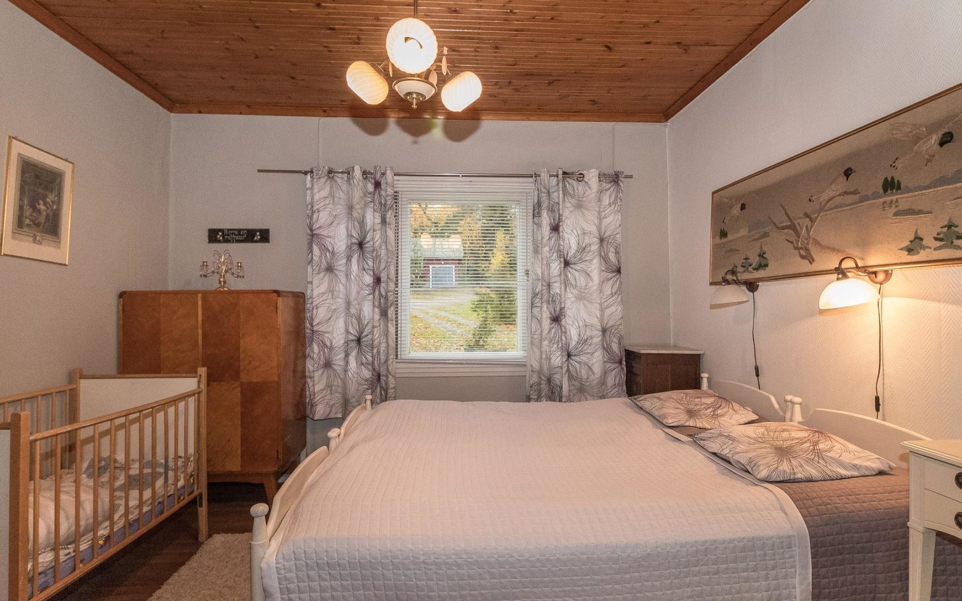 Wooden cottage 1952, renovated 2003, partly rebuilt 2008,kitchen, living room, dining room convertible sofa for 2 persons, bedroom 2 beds, 2 bedrooms upstairs, in one 1 bunk and 1 bed, in other 1 bunk and double bed, glazed porch.