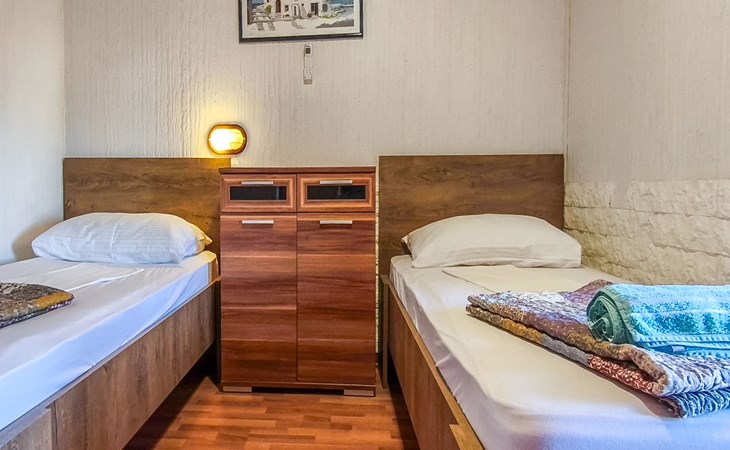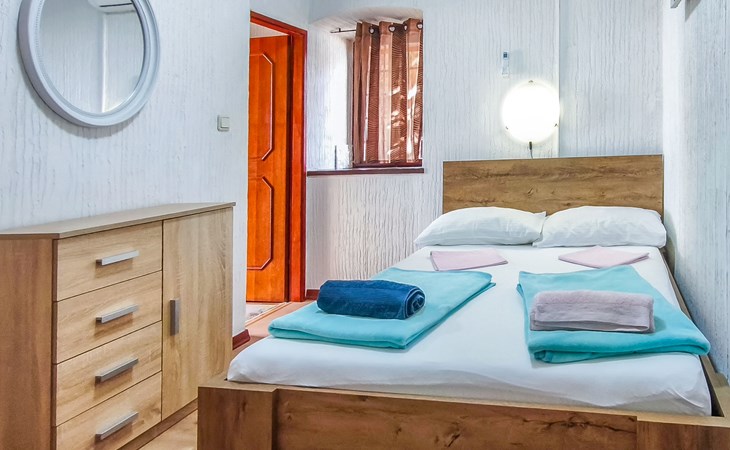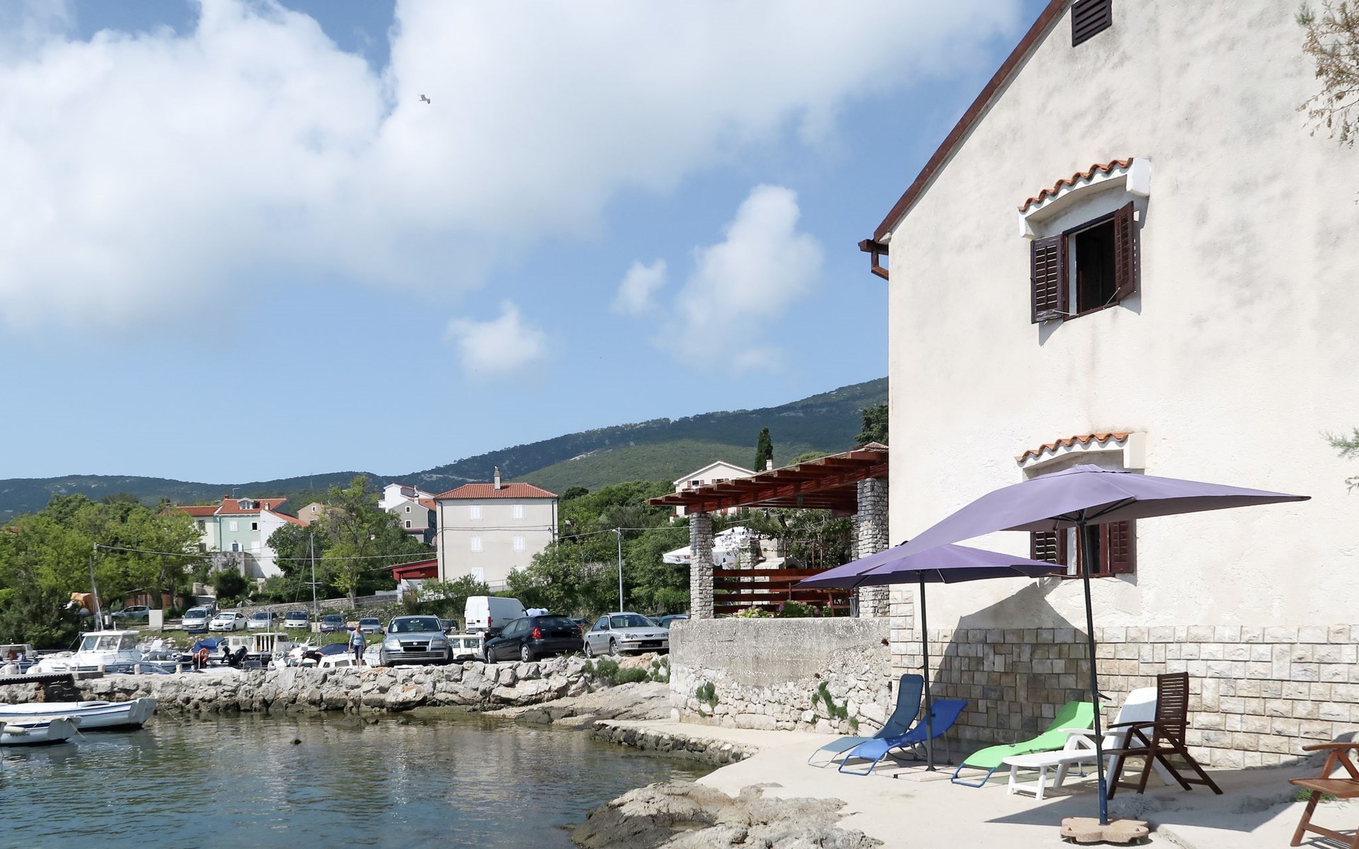 Eengezinswoning "Delfar", van 2 verdiepingen. 40 km van het centrum van Cres, 300 m van het centrum van Nerezine, 18 km van het centrum van Mali Lošinj, 5 m van zee, 200 m van het strand. Voor alleengebruik: terrein 350 m2. Buitendouche, barbecue. In het huis: internetaansluiting, wasmachine. Parkeerplaats (voor 3 auto's). Winkel 300 m, bushalte 1 km, veerboot 53 km, kiezelstrand 200 m. Jachthaven 5 km. Privé aanlegsteiger voor een boot, op aanvraag. Vliegveld 87 km van het huis.