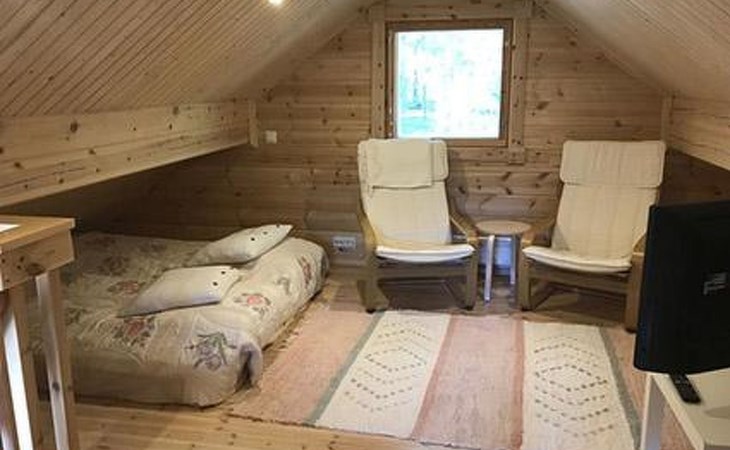 Log cottage built in 2016, kitchen-living room with sofa bed for 2, bedroom with double bed, shower room, sauna (wood stove), terrace.