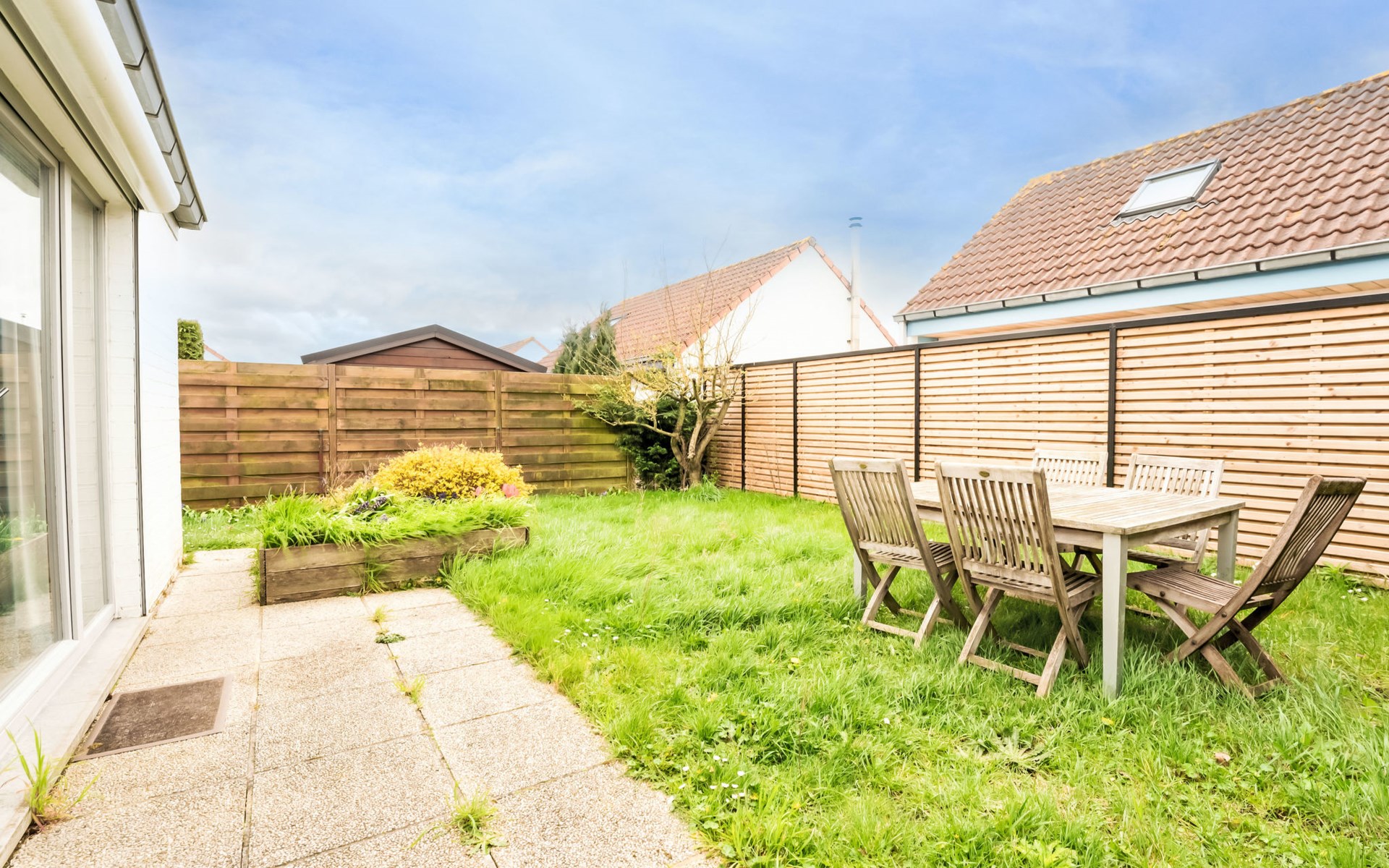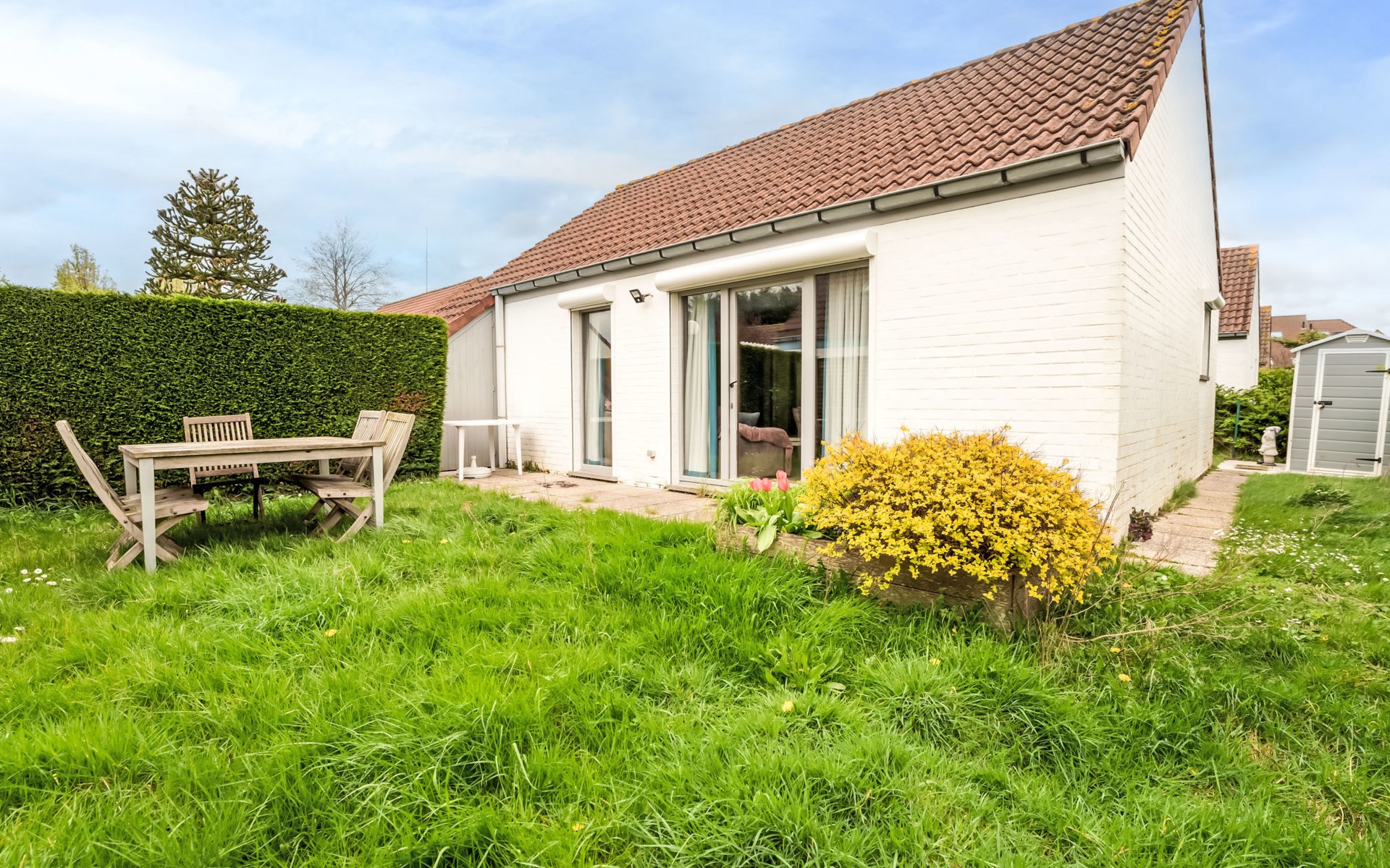 Kindvriendelijk, gezellig vakantiedorp "Villa Park II". Aan de rand van de plaats, 500 m van het centrum van De Haan, rustige ligging, 1.2 km van zee, 1.2 km van het strand. Supermarkt 50 m, bakkerij 500 m, fietsverhuur 750 m, biertuin 300 m, tramhalte "De Haan aan zee" 700 m, bushalte "De Haan aan Zee" 700 m, zandstrand 1.2 km. Golfterrein (18 holes) 3 km, surfschool 2 km, zeilschool 2 km, tennis 800 m, tennishal 2 km, midgetgolf 800 m, manege 1 km, kinderspeelplaats 800 m. Attracties in de buurt: Fort Napoleon 11 km, Brugge 17 km, Sealife Blankenberge 12 km, Plopsaland De Panne 50 km. De eigenaar accepteert geen jeugdgroepen. De omgeving is gevoelig voor geluidsoverlast. Gelieve geen lawaai te maken en de rust te bewaren.