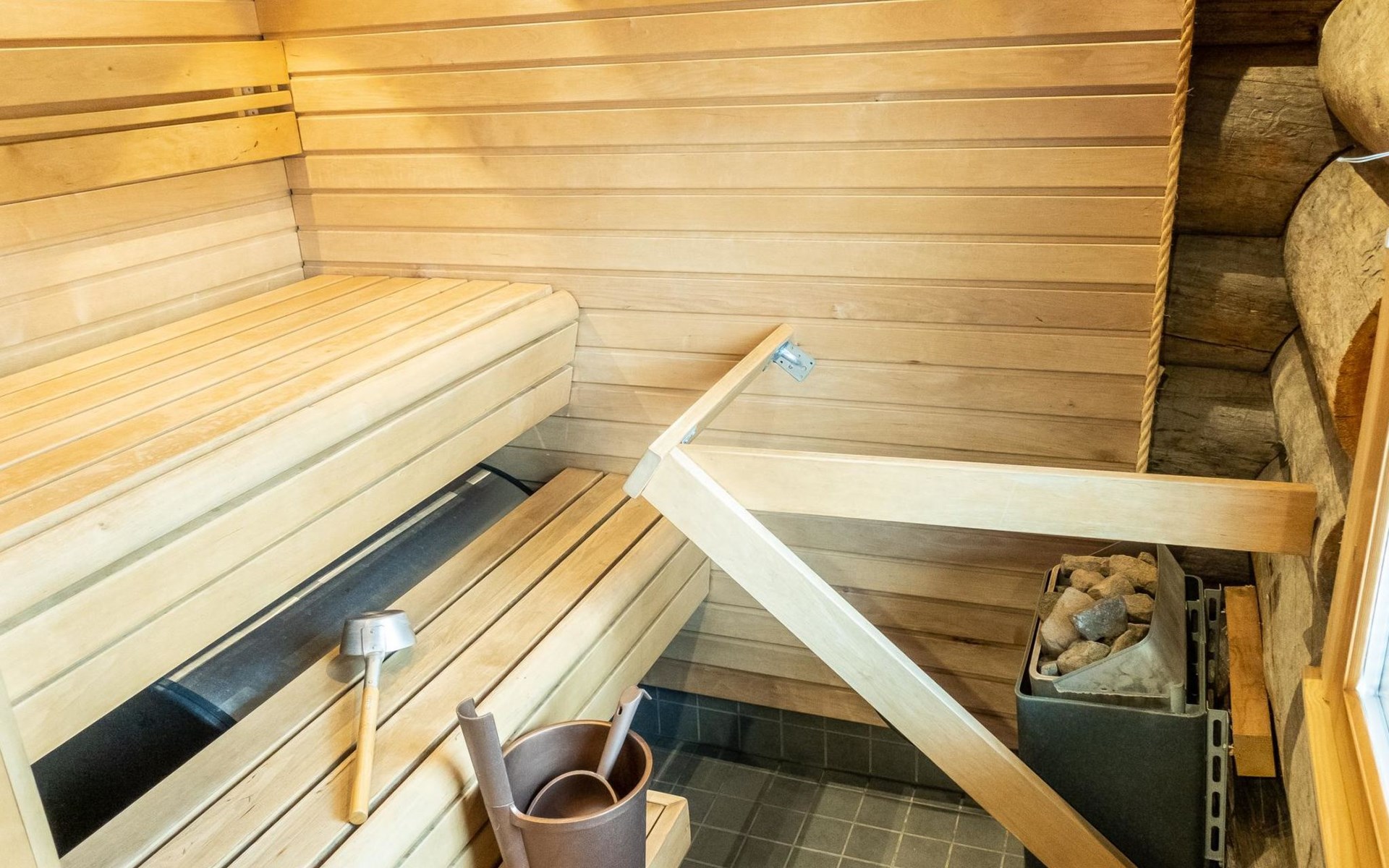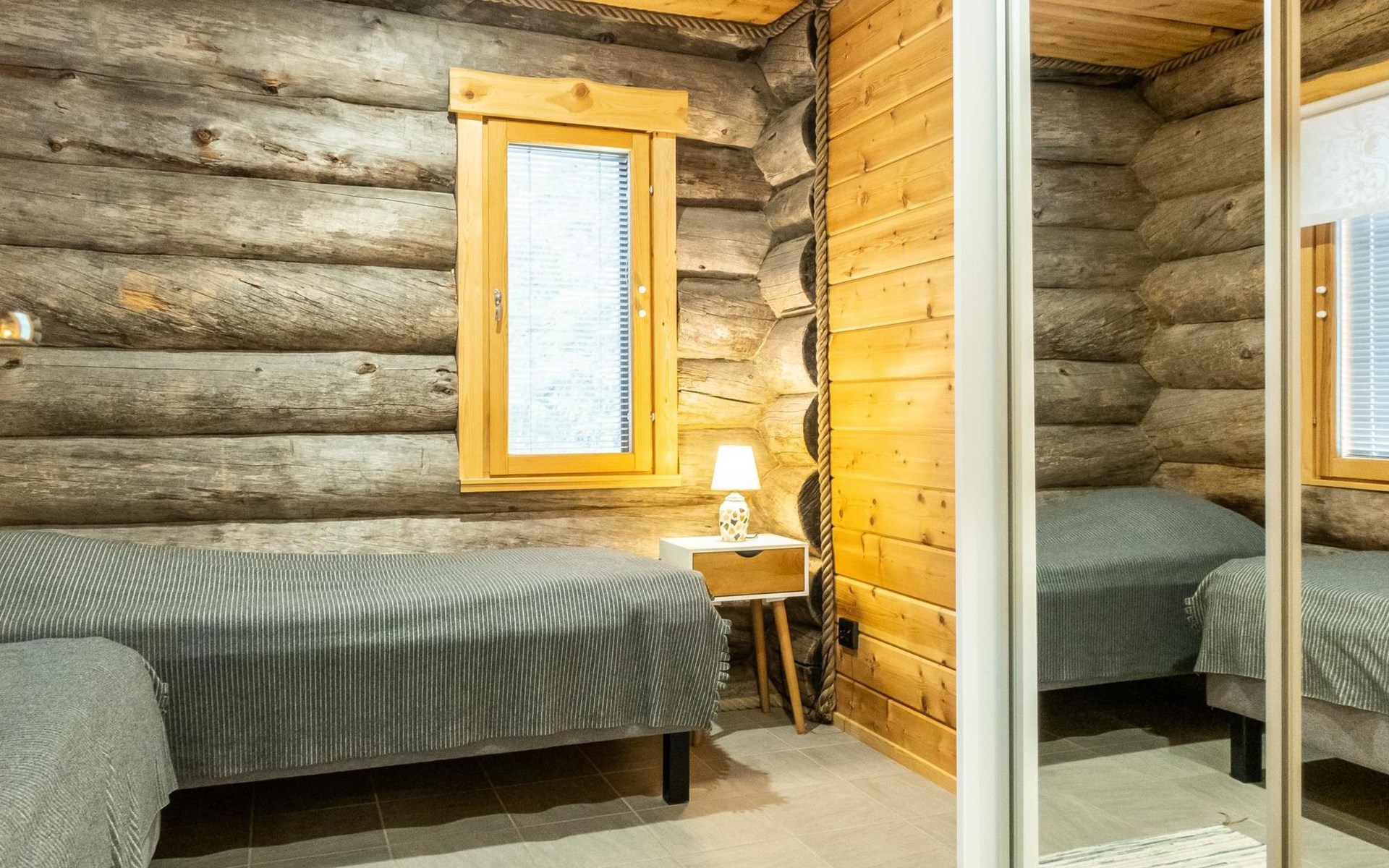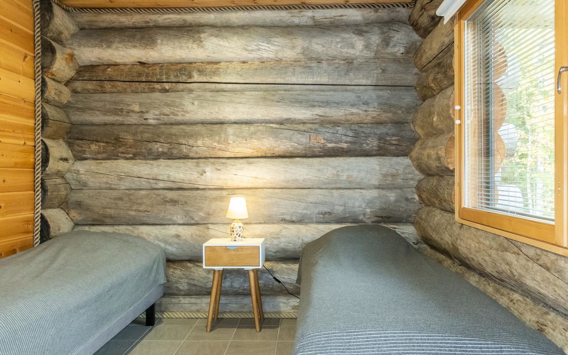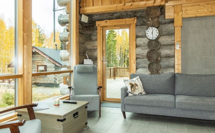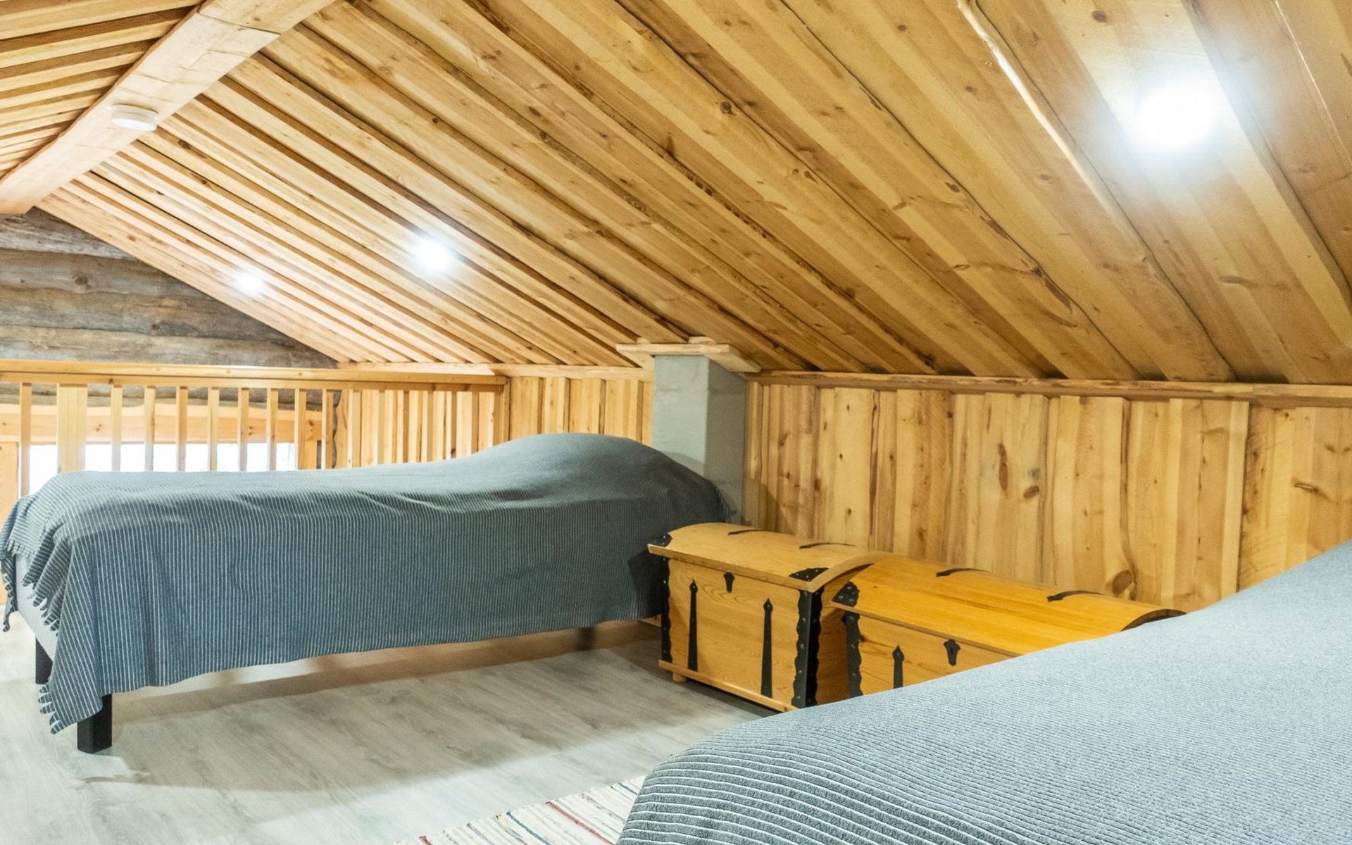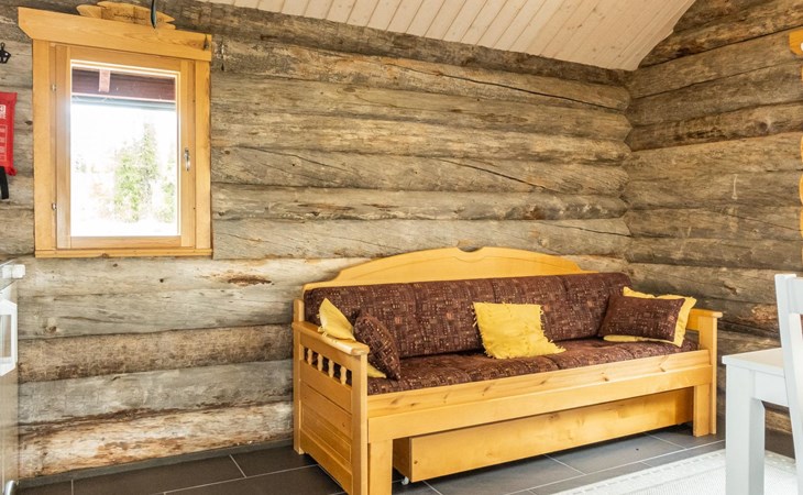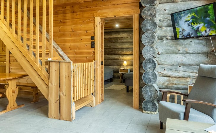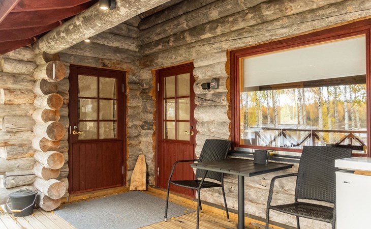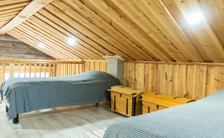 The cabin has kitchen, 2 bedrooms, both with 2 beds, loft with 2 beds (maximum room height is 175 cm), sauna, washroom, separate WC and large terrace. The cabin also has 2 additional beds that can be assembled and placed freely.