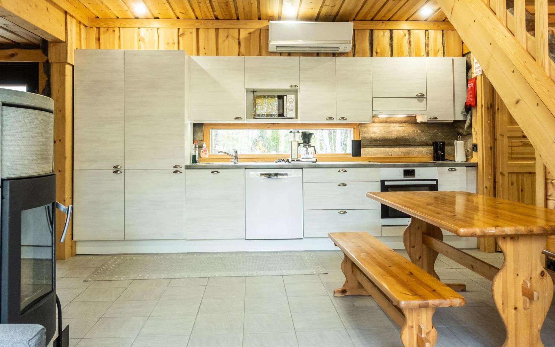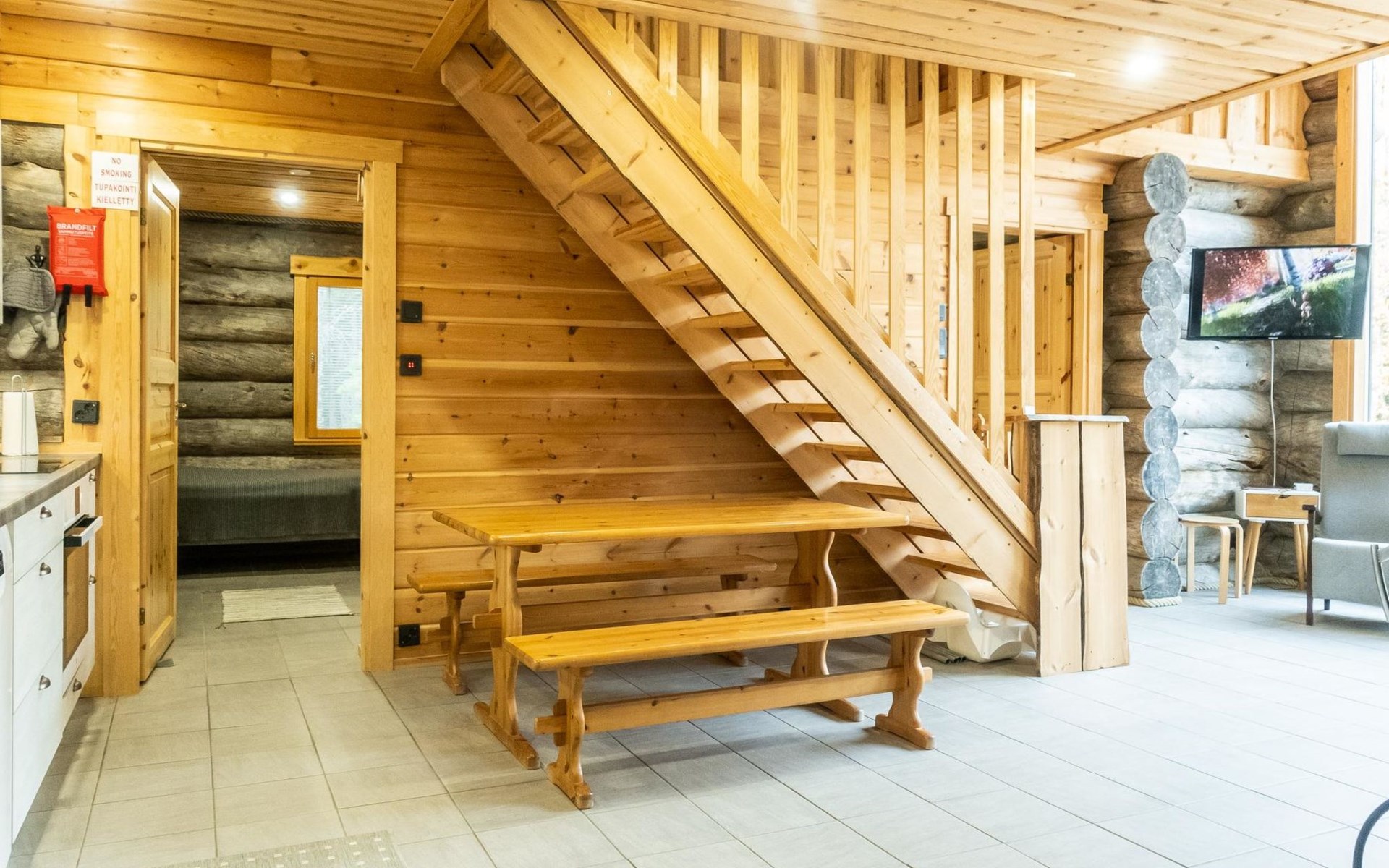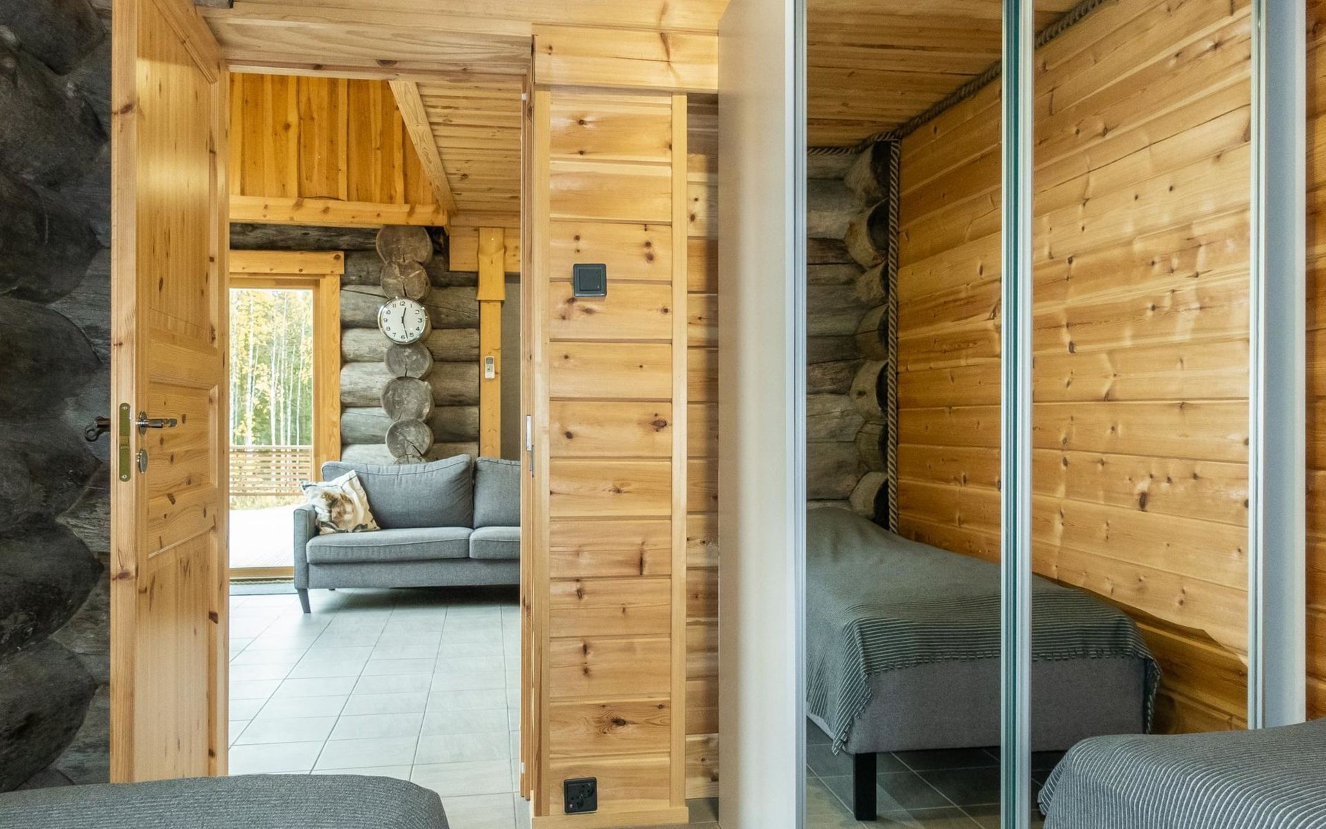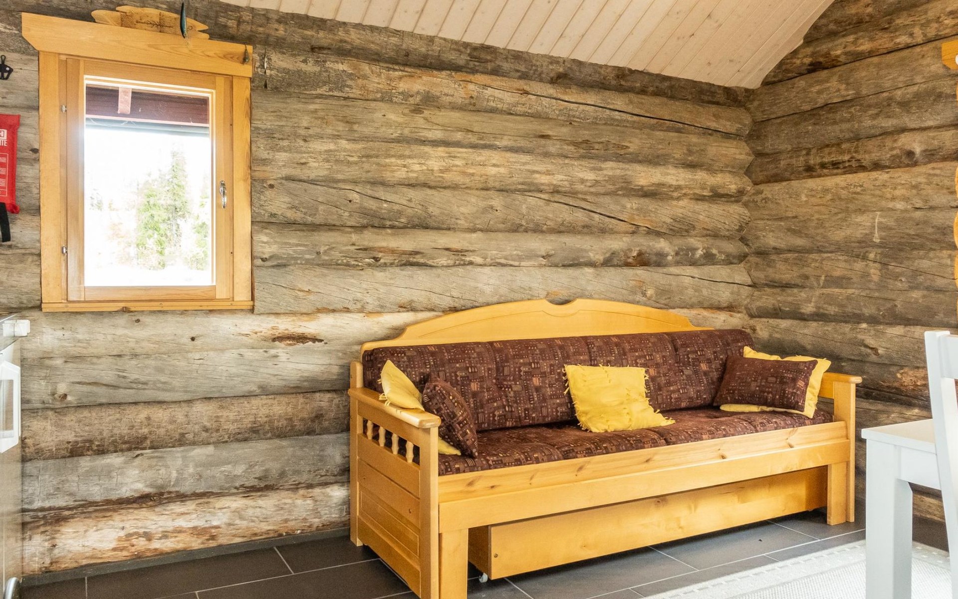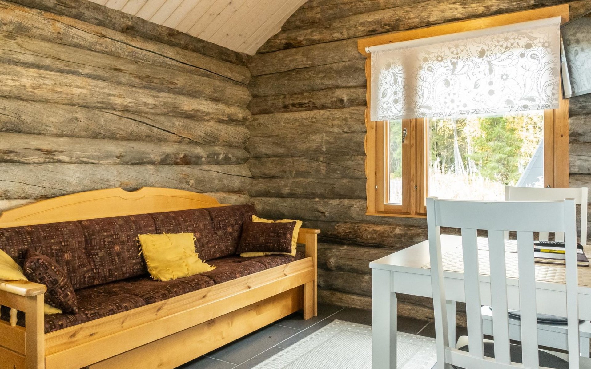 The cabin has kitchen, 2 bedrooms, both with 2 beds, loft with 2 beds (maximum room height is 175 cm), sauna, washroom, separate WC and large terrace. The cabin also has 2 additional beds that can be assembled and placed freely.