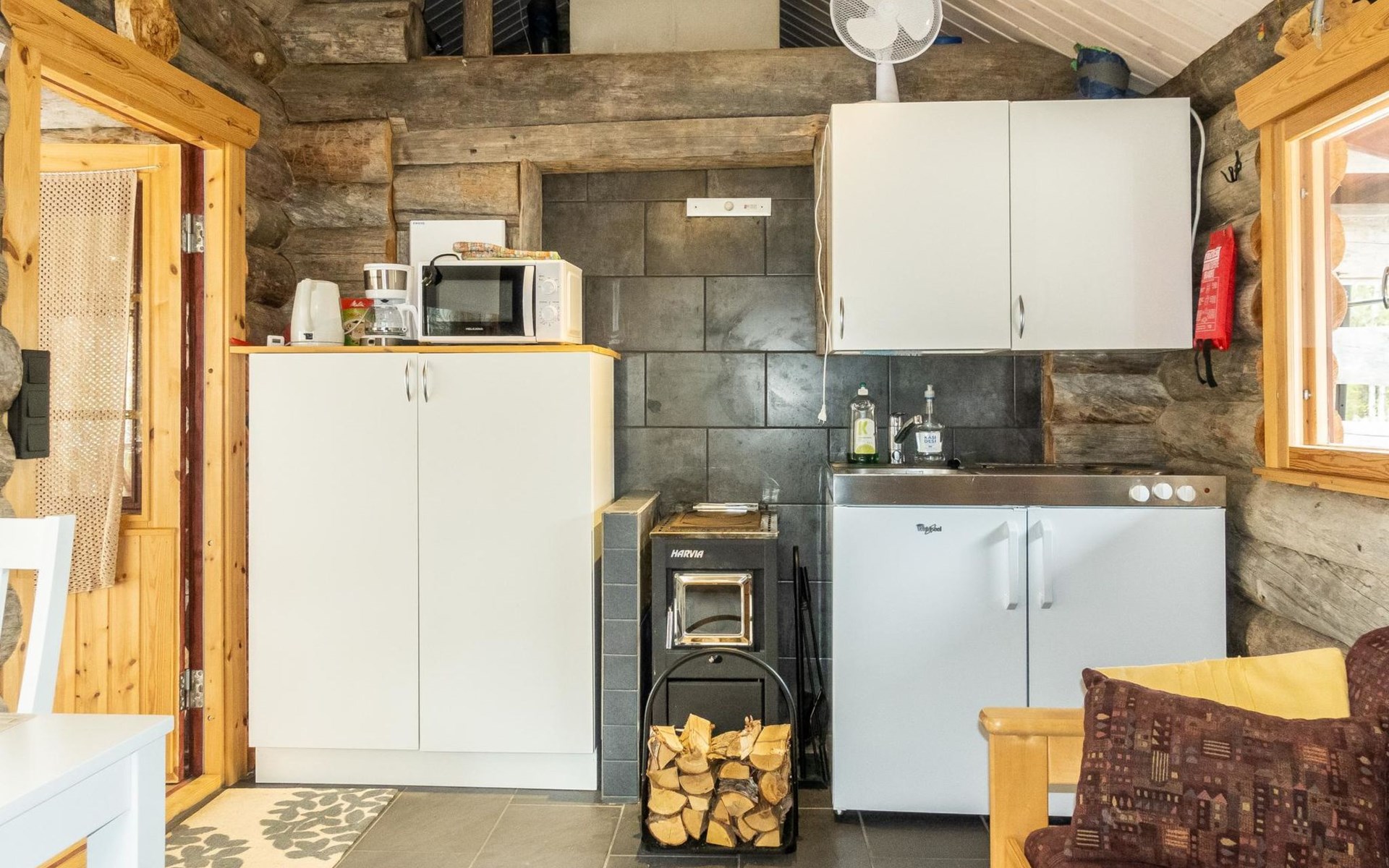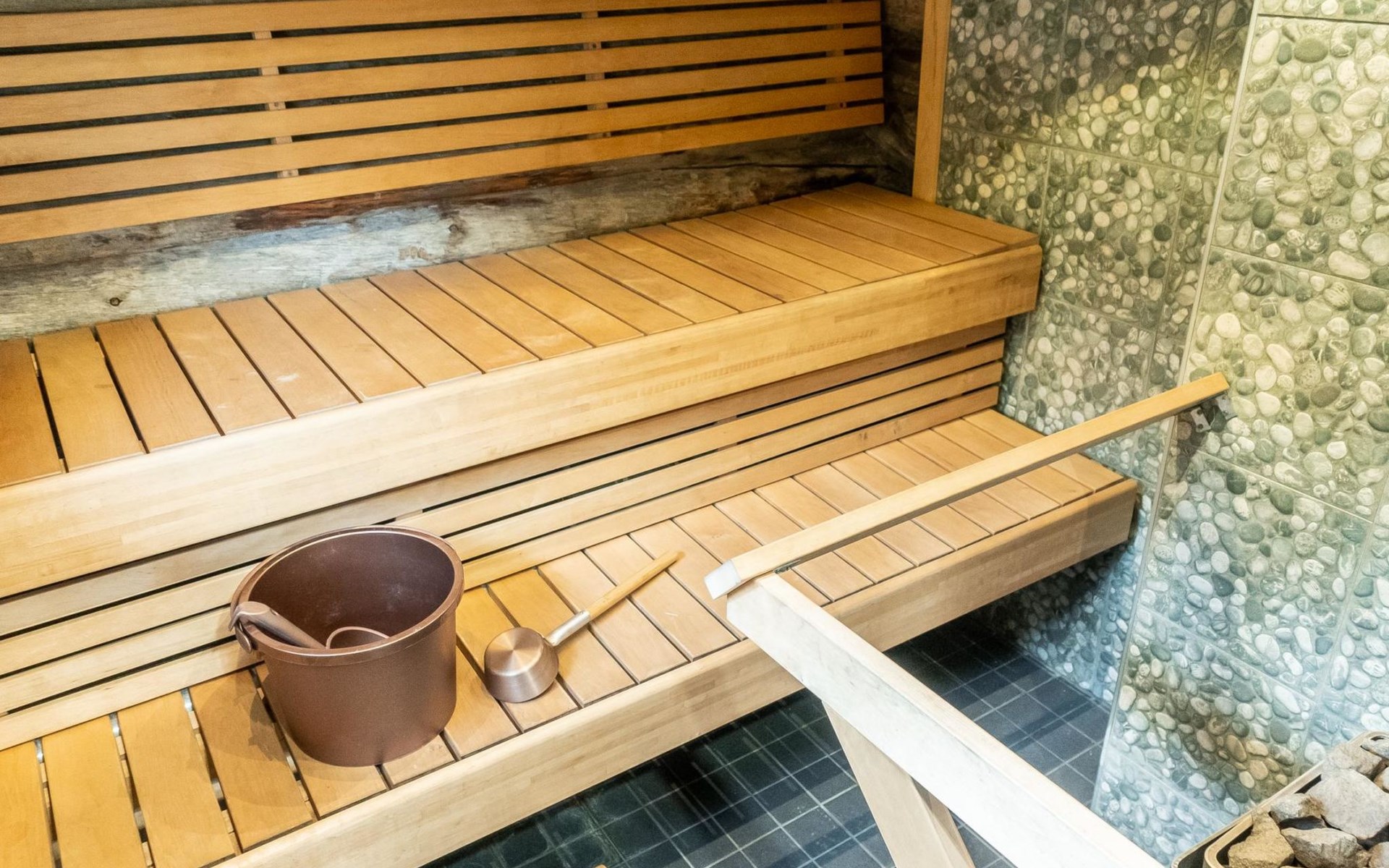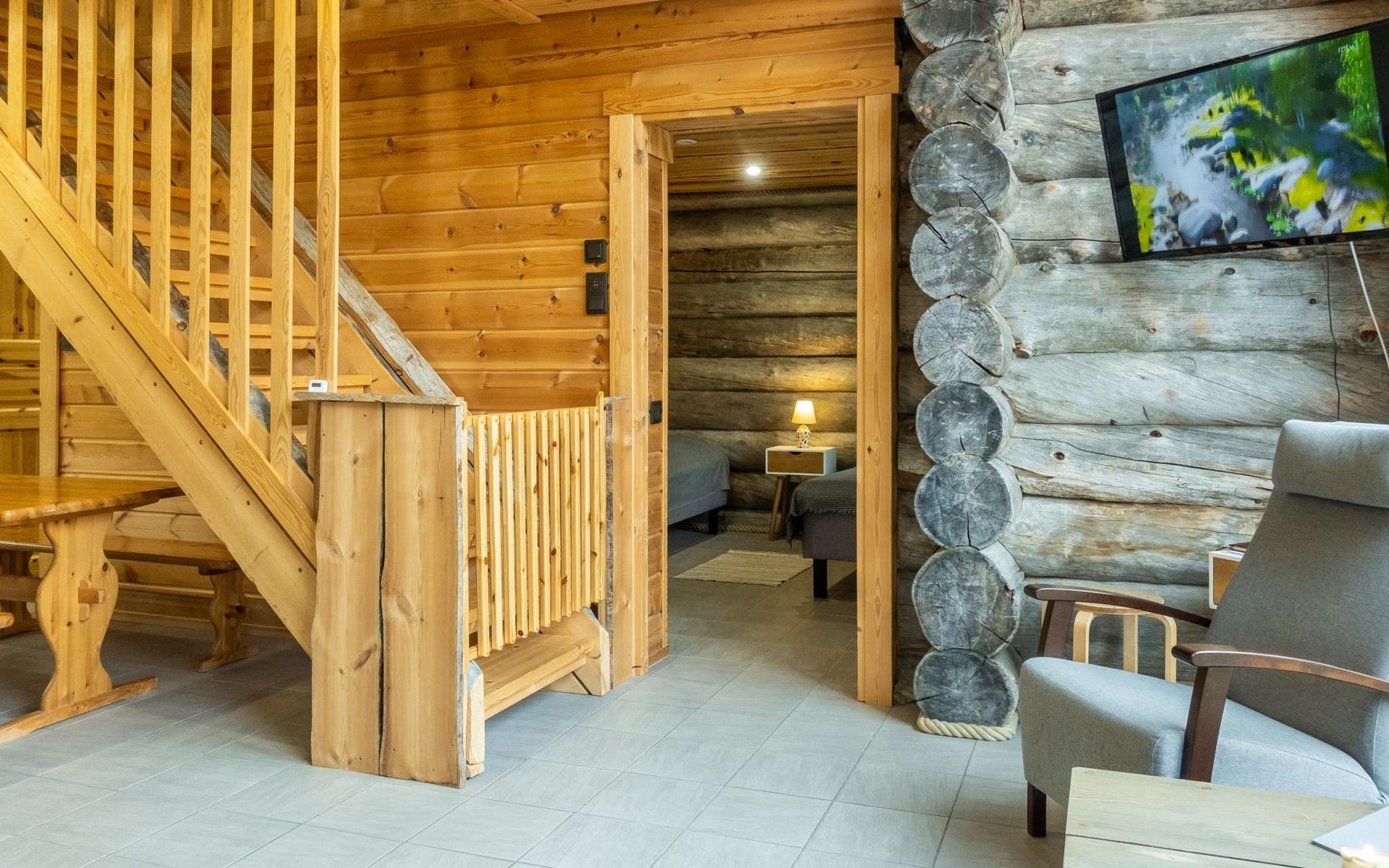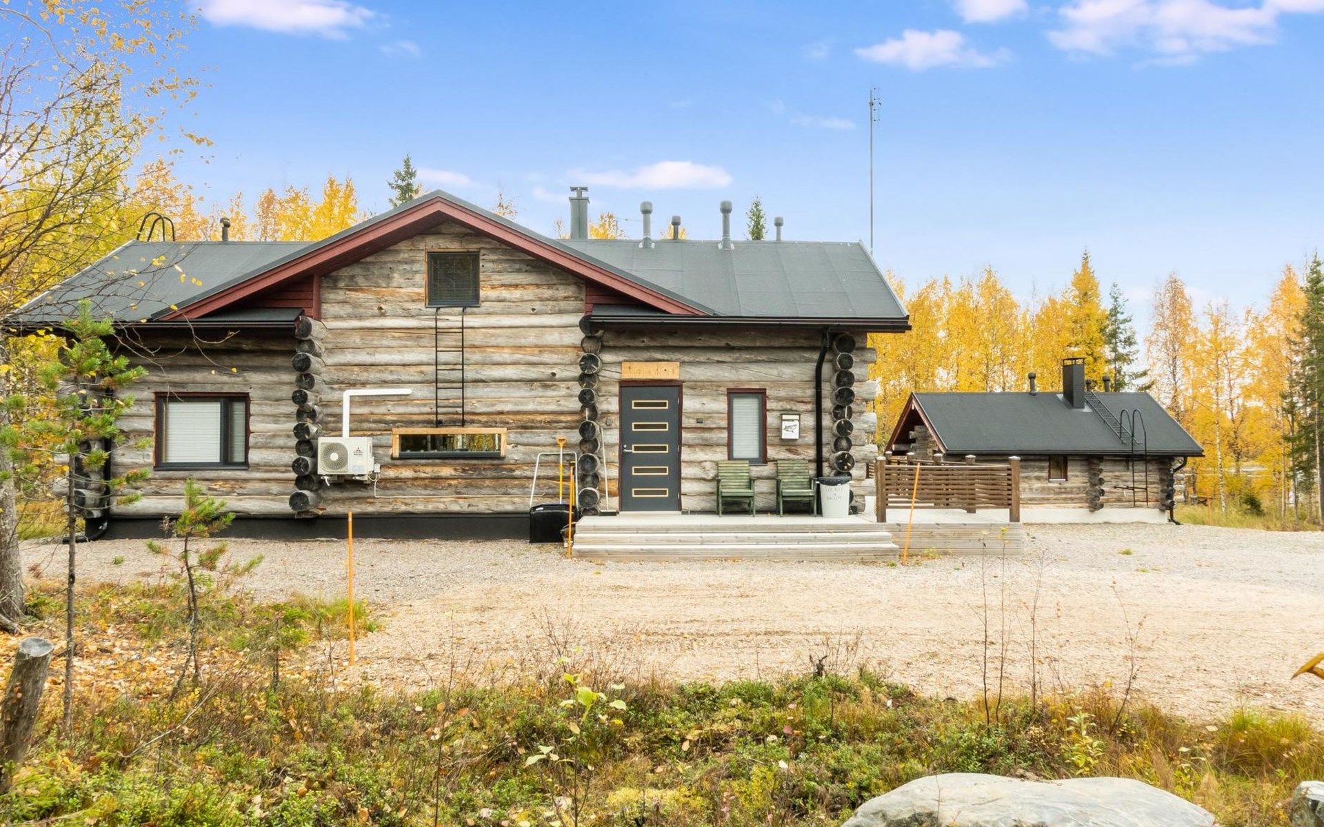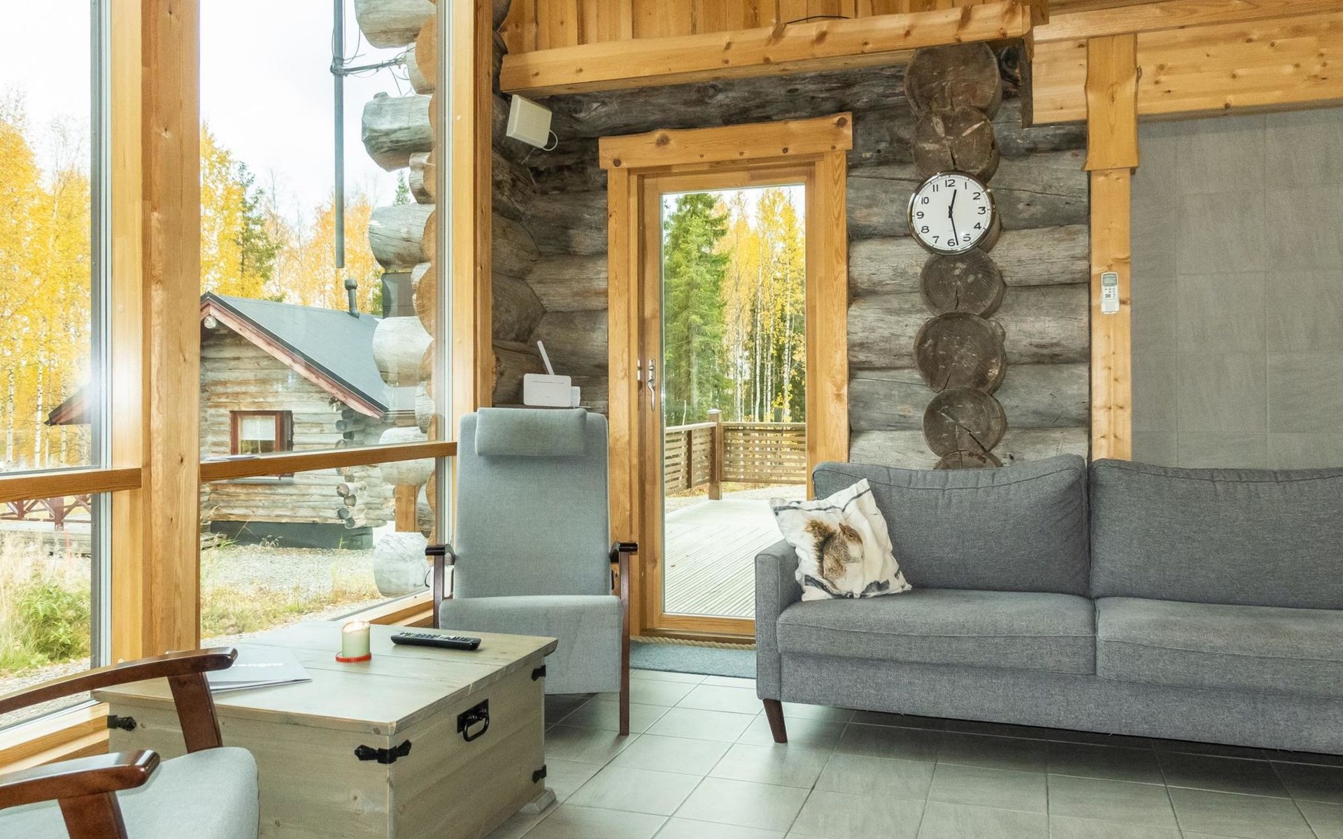 The cabin has kitchen, 2 bedrooms, both with 2 beds, loft with 2 beds (maximum room height is 175 cm), sauna, washroom, separate WC and large terrace. The cabin also has 2 additional beds that can be assembled and placed freely.