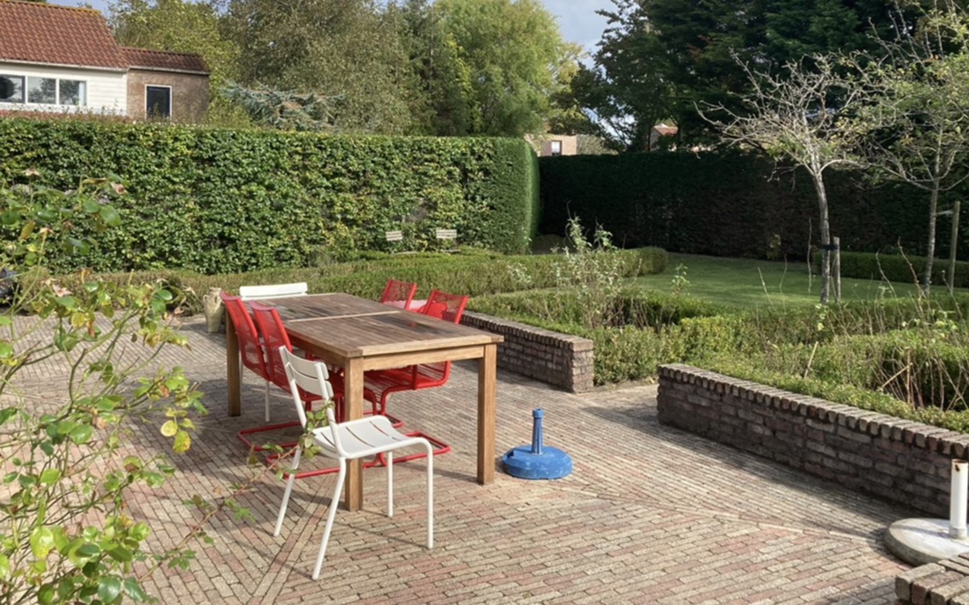 De grote, volledig omheinde tuin biedt veel privacy. Hier kunt u de hele dag van de zon genieten. De grote eettafel op het terras biedt ruimte voor heerlijke diners in de zwoele zomeravonden. Er zijn tevens ligbedden om te zonnen en er is een trampoline voor de kinderen. Uw hond is ook welkom.