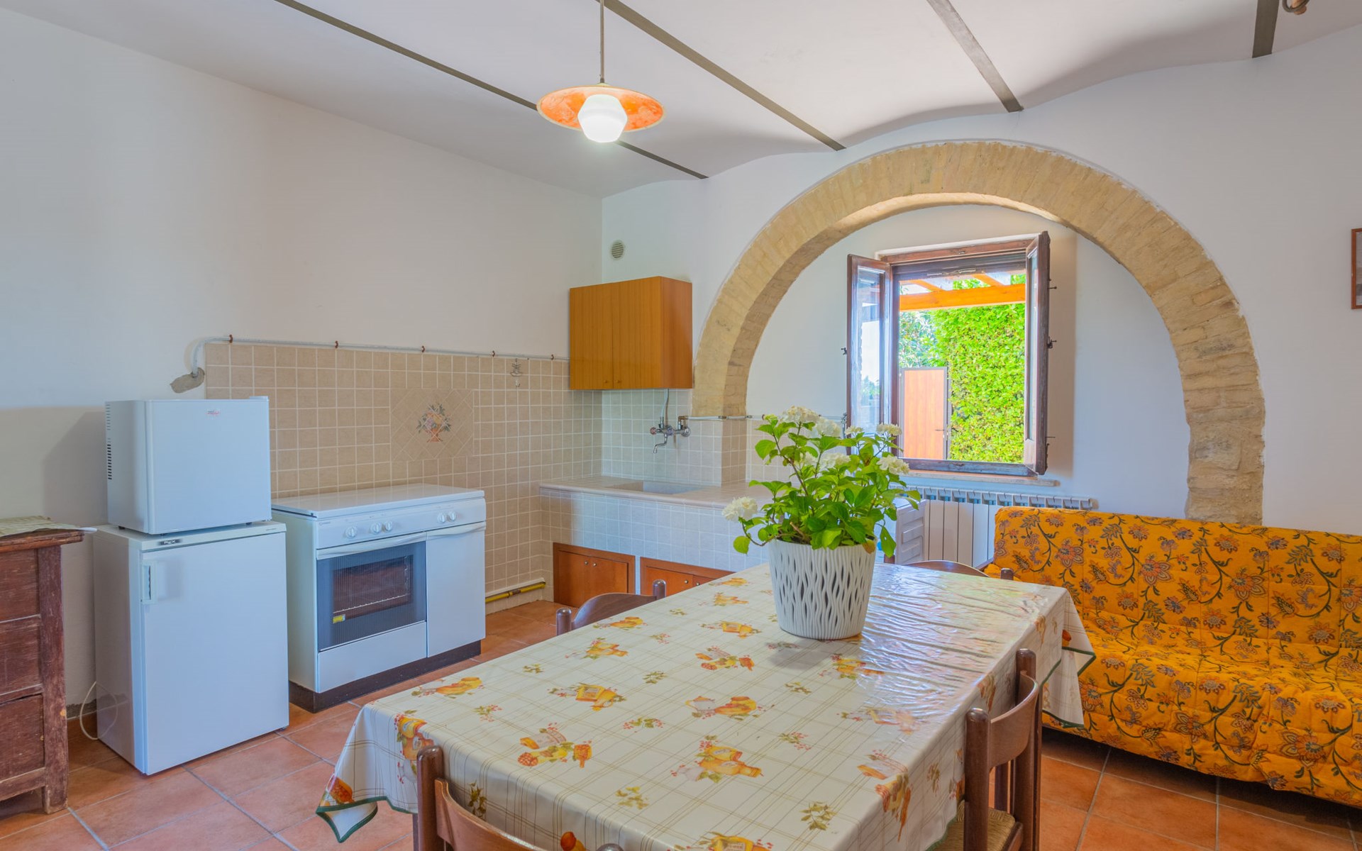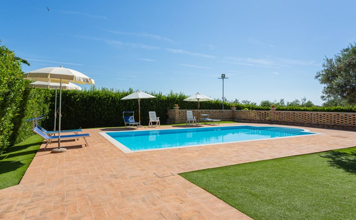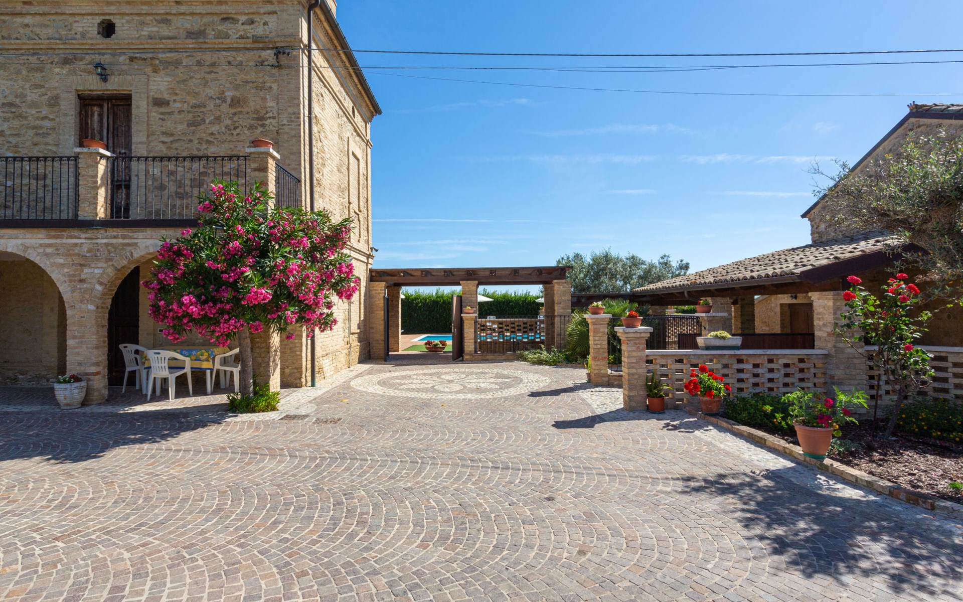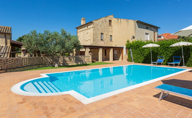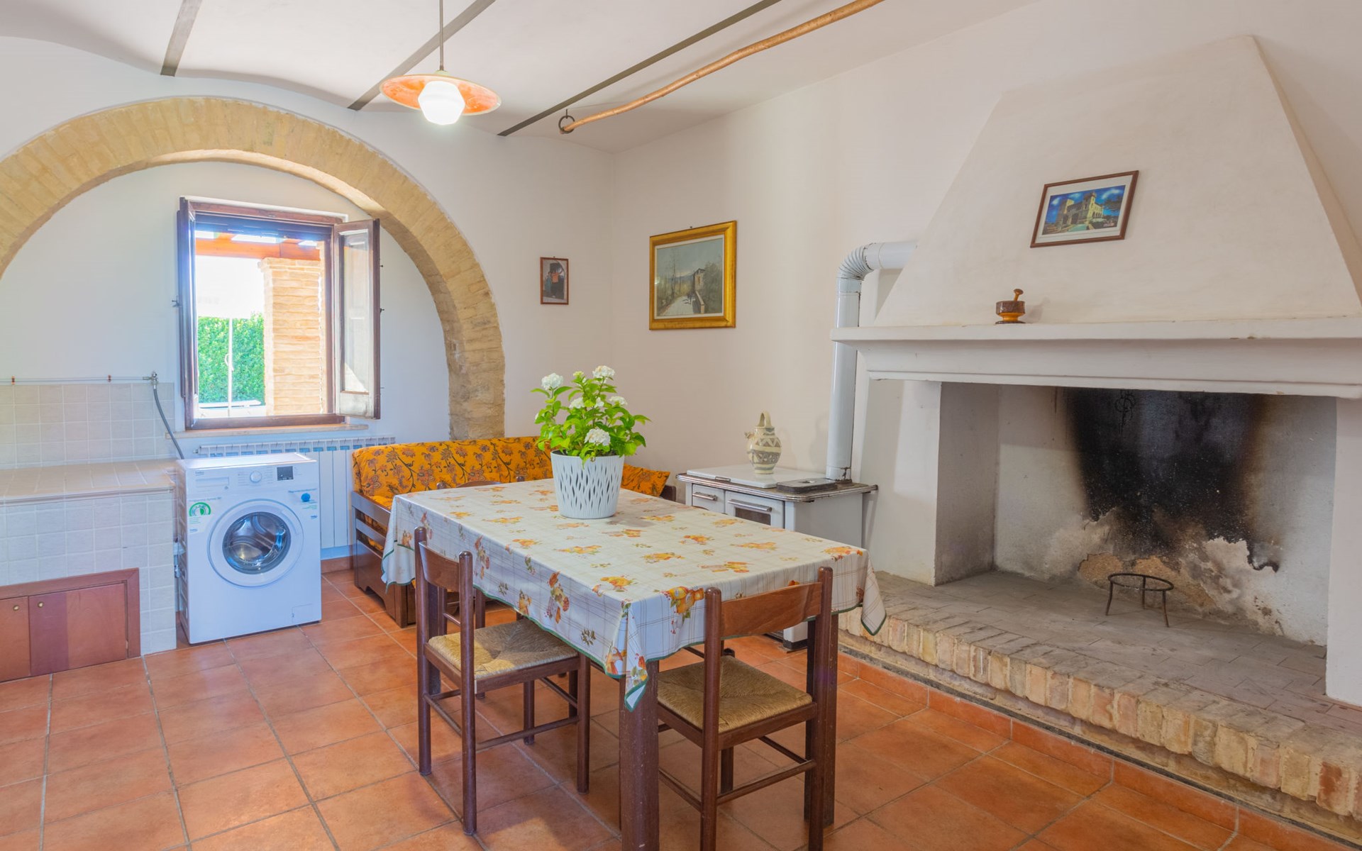 Rustieke landbouwbedrijfje "Borgo Agrituristico Il Pino", van 2 verdiepingen, vrijstaand, omgeven door velden en wijngaarden. 3 huizen in de woning. 10 km van het centrum van Ortona, 4 km van het centrum van Crecchio, 35 km van het centrum van Pescara, 12 km van zee, te midden van groen. Voor medegebruik: terrein 1.500 m2, binnenplaats, openluchtzwembad (10 x 5 m, 140 cm diepte, seizoensgebonden beschikbaarheid: 10.Mei. - 15.Sep. openingstijden zwembad: 08:00-18:00). Buitendouche, tafeltennis, barbecue. In het complex: Internet (WiFi), tafelvoetbal. Parkeerplaats op het terrein. Oplaadstation. Winkel 2 km, bushalte 3 km, treinstation "Ortona" 13 km, zandstrand 16 km kiezelstrand 14 km. Lokale verkoop van streekproducten. De eigenaar woont op hetzelfde terrein. Badmuts verplicht.
