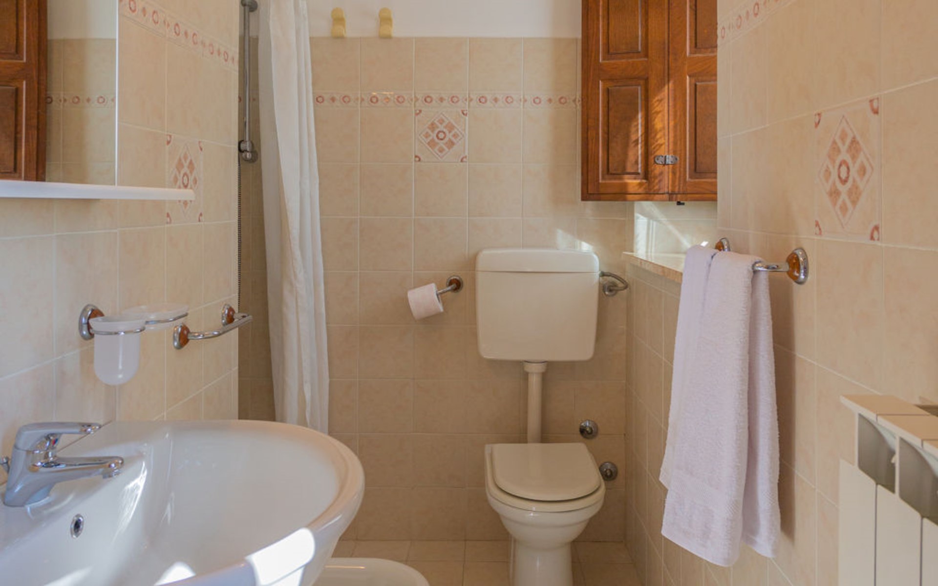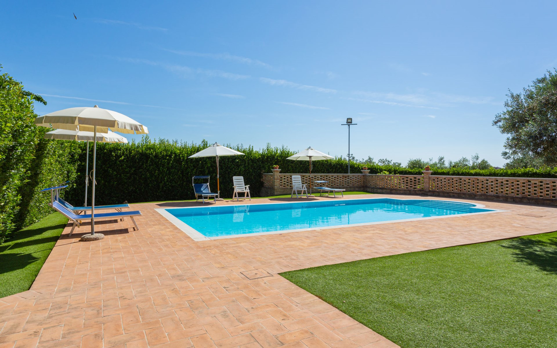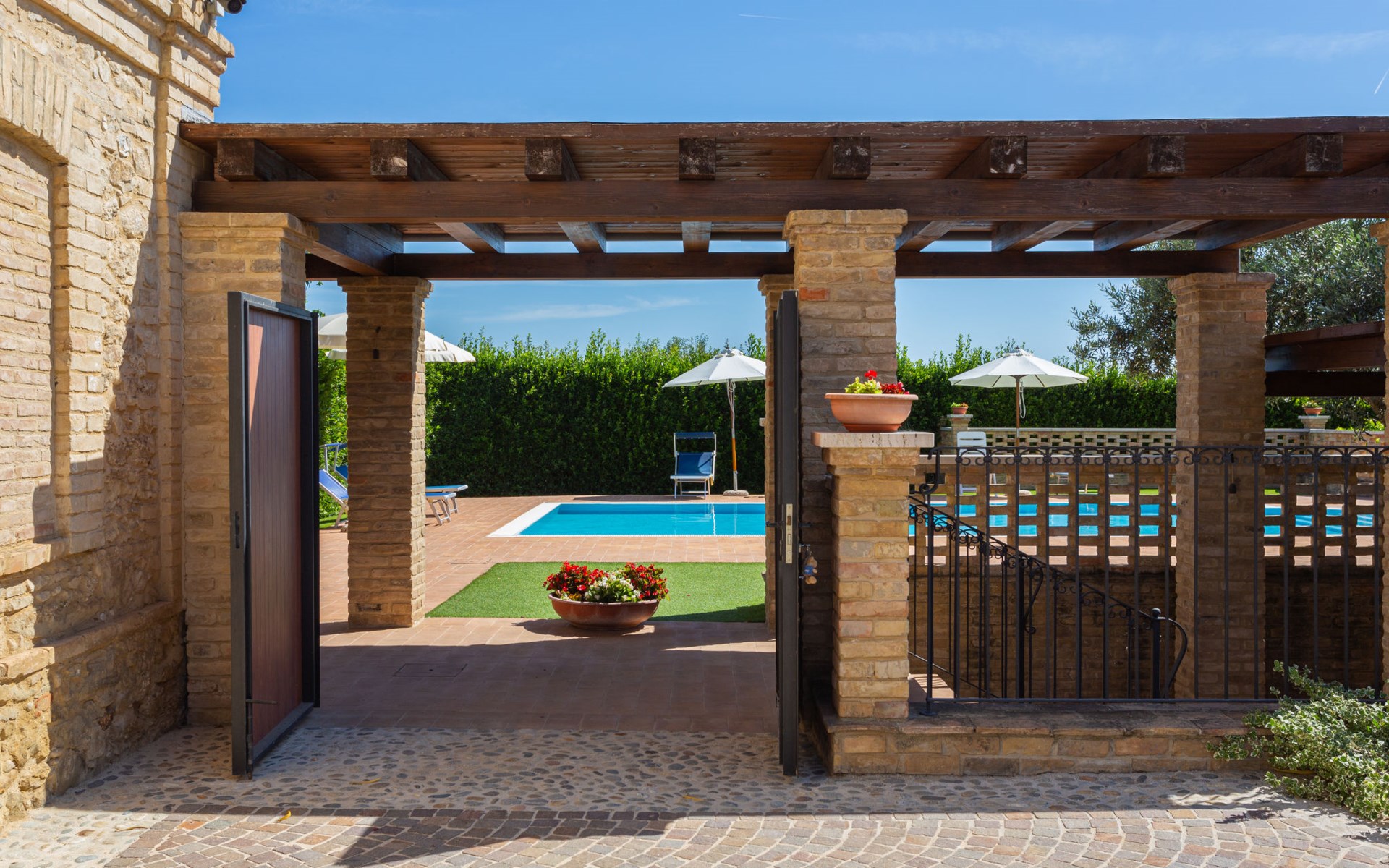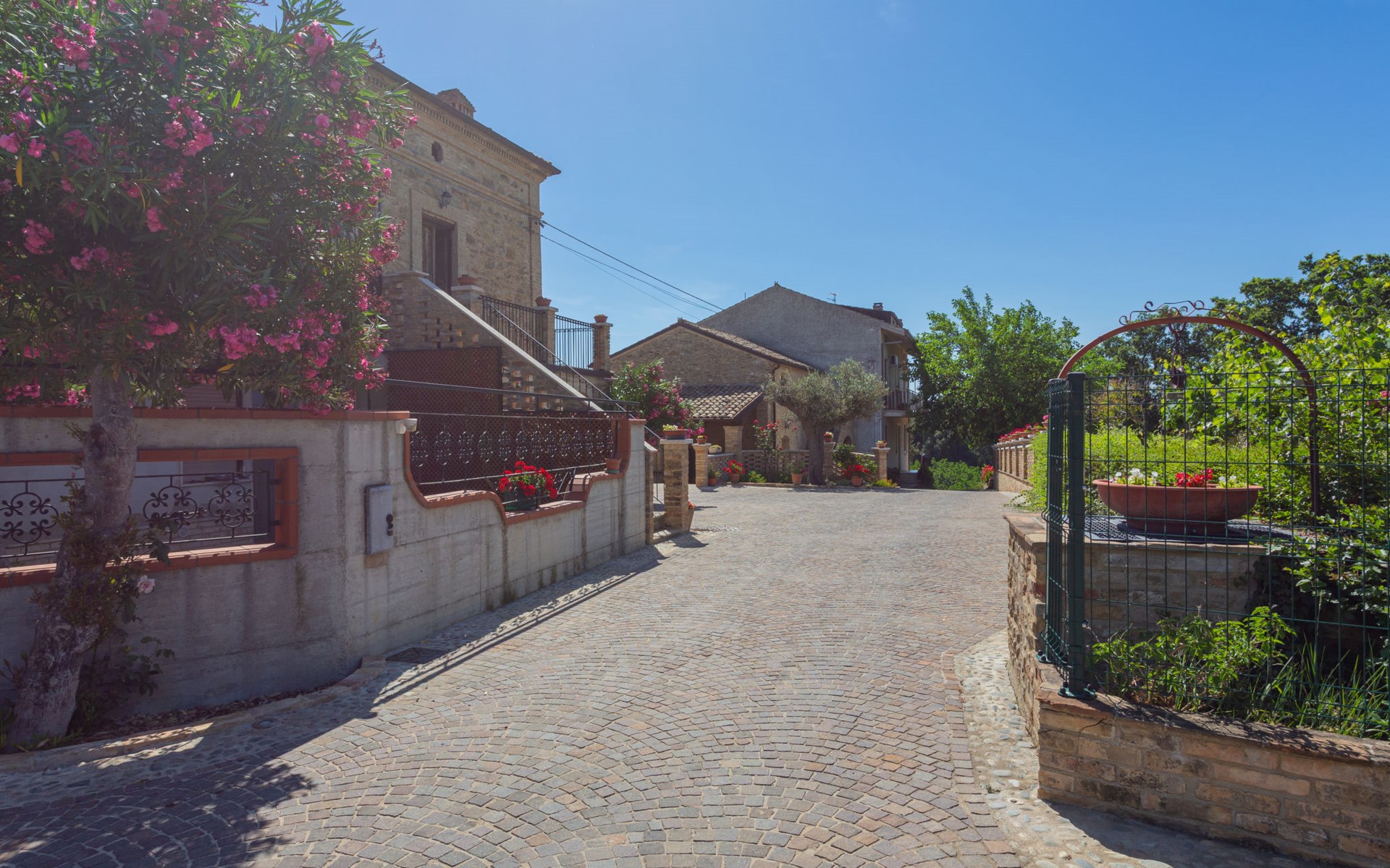 Rustieke landbouwbedrijfje "Borgo Agrituristico Il Pino", van 2 verdiepingen, vrijstaand, omgeven door velden en wijngaarden. 3 huizen in de woning. 10 km van het centrum van Ortona, 4 km van het centrum van Crecchio, 35 km van het centrum van Pescara, 12 km van zee, te midden van groen. Voor medegebruik: terrein 1.500 m2, binnenplaats, openluchtzwembad (10 x 5 m, 140 cm diepte, seizoensgebonden beschikbaarheid: 10.Mei. - 15.Sep. openingstijden zwembad: 08:00-18:00). Buitendouche, tafeltennis, barbecue. In het complex: Internet (WiFi), tafelvoetbal. Parkeerplaats op het terrein. Oplaadstation. Winkel 2 km, bushalte 3 km, treinstation "Ortona" 13 km, zandstrand 16 km kiezelstrand 14 km. Lokale verkoop van streekproducten. De eigenaar woont op hetzelfde terrein. Badmuts verplicht.
