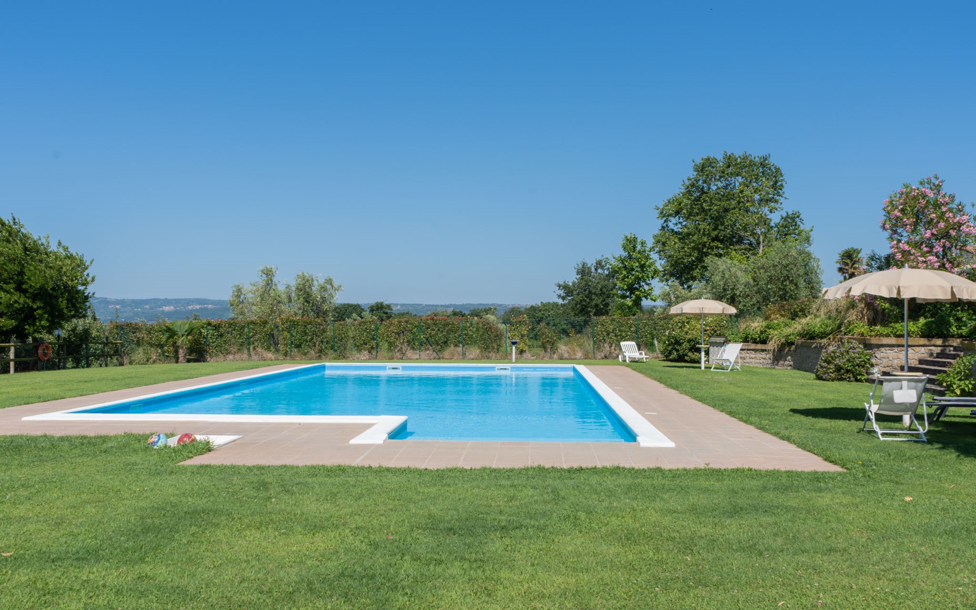 Landhuis "L'Orto e le Rose". 2 huizen in de woning. 3 appartementen in de woning. 3 km van het centrum van Bolsena, 25 km van het centrum van Orvieto, 100 km van het centrum van Roma, 900 m van het meer, te midden van groen. Voor medegebruik: terrein 2.000 m2 met gazon en bomen, boomgaard, ligweide, openluchtzwembad (16 x 8 m, 150 cm diepte, seizoensgebonden beschikbaarheid: 16.Mei. - 03.Okt.). Buitendouche, barbecue, kinderspeelplaats, overdekte parkeerplaats op het terrein. Winkel 3 km, supermarkt 4 km, bushalte 3.5 km, zandstrand "Lago di Bolsena" 900 m. Golfterrein (9 holes) 15 km. De eigenaar woont op hetzelfde terrein. Vergelijkbare accommodaties kunnen worden geboekt.