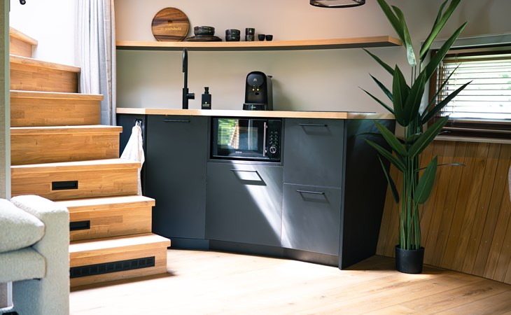 The Nutshell is ontworpen met innovatieve architectuur die naadloos opgaat in de natuurlijke omgeving en een sfeer van rust en luxe creëert. Binnen geniet je van een zorgvuldige inrichting die functionaliteit en esthetiek perfect combineert. Daarnaast zorgt de airco ervoor dat je hier het hele jaar door comfortabel kunt verblijven.