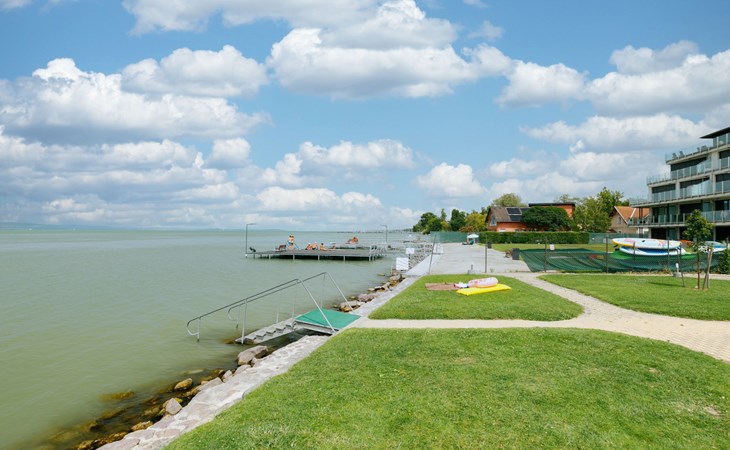 Balatonlelle 39 km van Siófok: Comfortabele residentie. In de plaats, 200 m van het meer, 150 m van het strand, directe toegang tot het strand. Voor medegebruik: terrein (omheind). In het huis: Internet (WiFi), centrale verwarming, air-conditioning. Parkeerplaats op het terrein. Supermarkt 250 m, restaurant 190 m, bakkerij 230 m, café 400 m, fietsverhuur 500 m, thermaalbad "Igal" 44 km. Jachthaven 900 m, tennis 4 km, manege 3 km, fietspad 50 m, kinderspeelplaats 700 m. Attracties in de buurt: Kis-Balaton Visitor Centre 47 km, Aquapark Siófok 41 km, Adventure Park Zamárdi 30 km, Bella Zoo Siófok 43 km, Hévíz Thermal Bath 55 km, Ferry Szántód 21 km. Baby uitrusting op aanvraag (extra). Gesloten residentie met een elektrische deur.