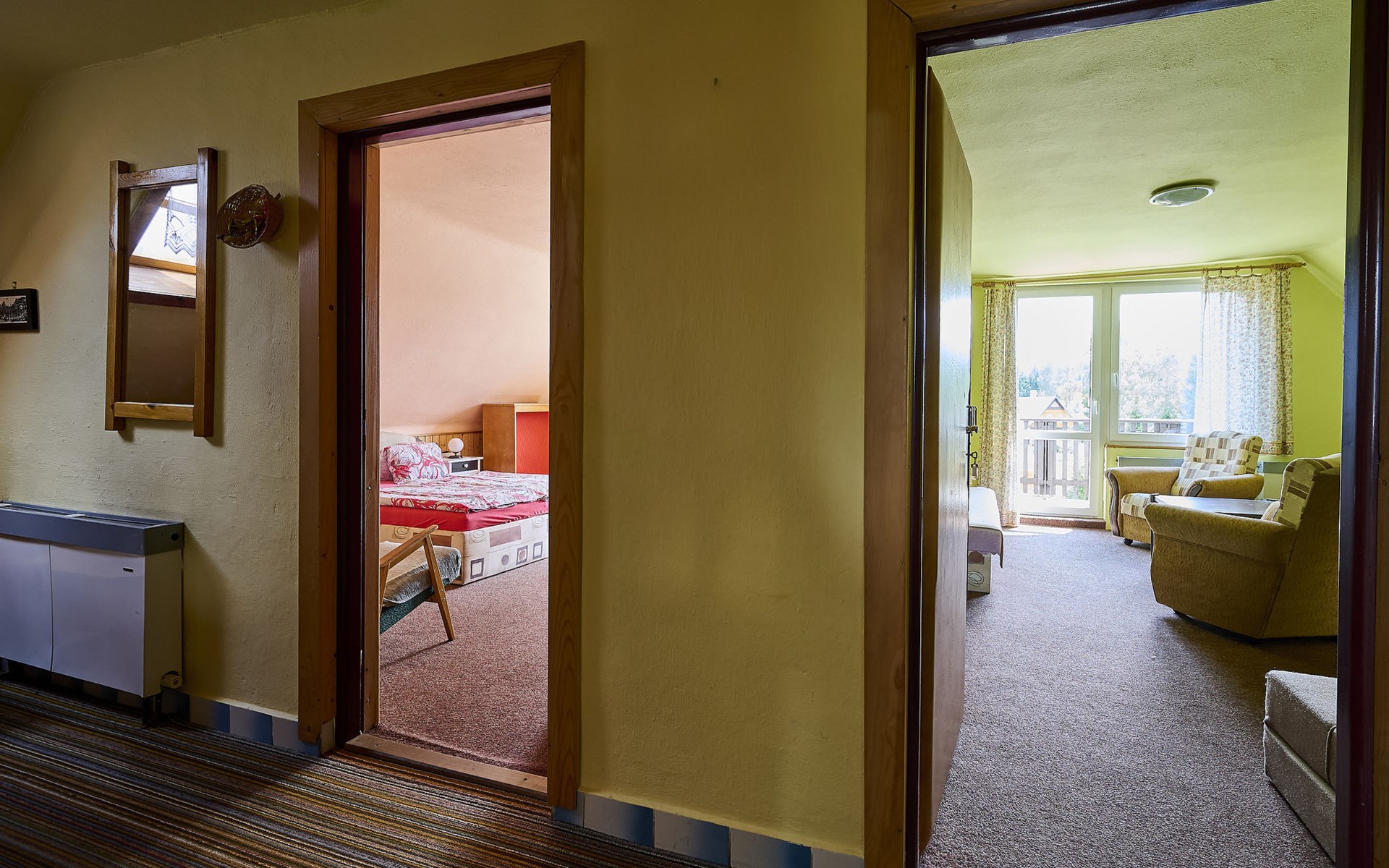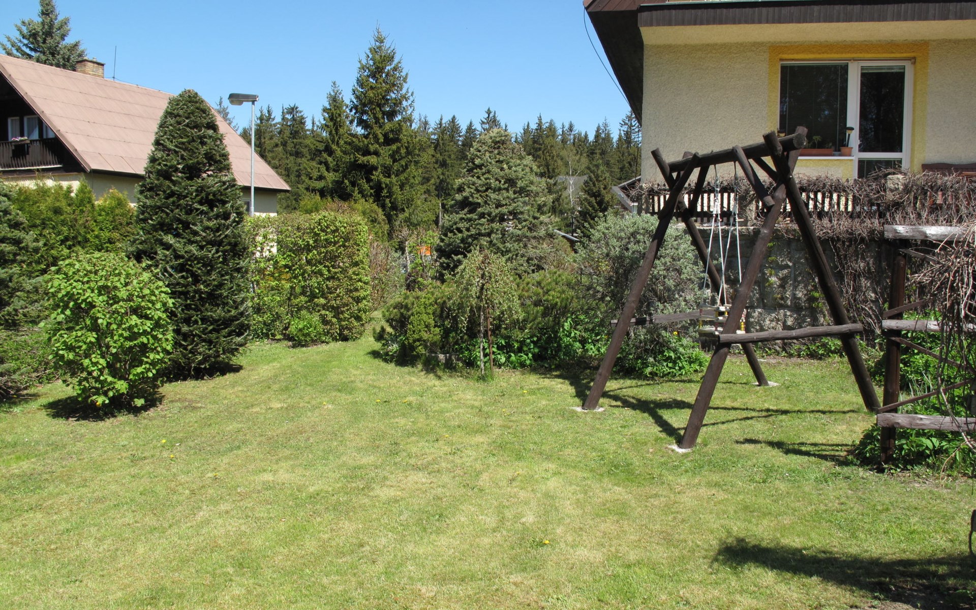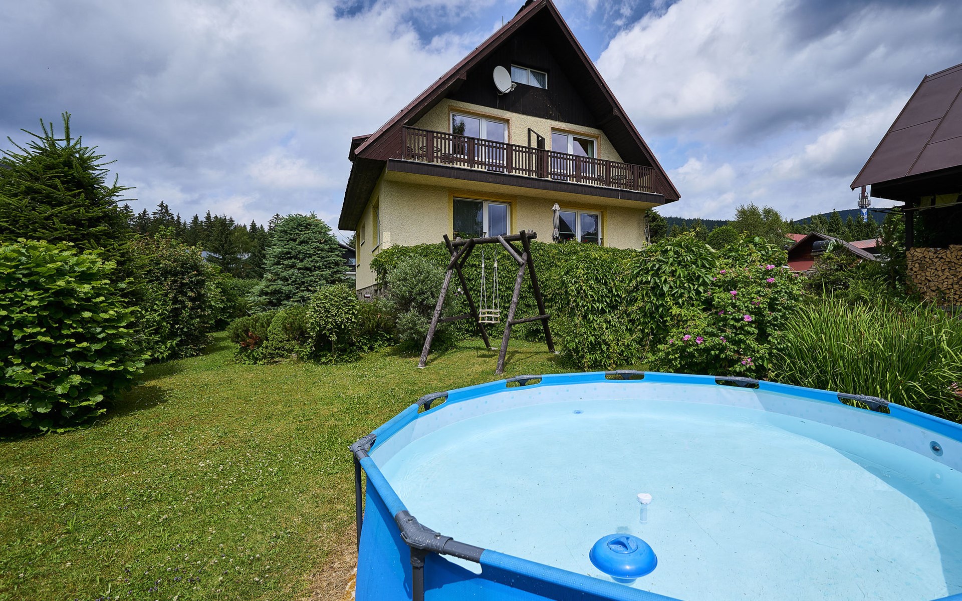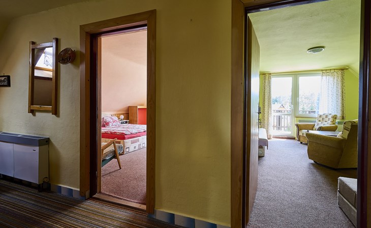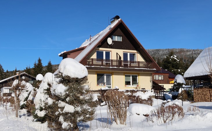 Huis met 2 woningen 700 m boven zeeniveau. 300 m van het centrum van Harrachov, 28 km van het centrum van Jablonec nad Nisou, 25 km van het meer, 1.5 km van het skigebied. Voor alleengebruik: terrein 300 m2, gazon en bomen, openluchtzwembad (3,6 m diameter, 70 cm diepte, seizoensgebonden beschikbaarheid: 01.Jun. - 30.Sep.). Patio, tuinmeubelen, barbecue, kinderspeelplaats (schommel, zandbak), parkeerplaats (voor 3 auto's) op het terrein. Winkel, supermarkt 400 m, restaurant 300 m, bushalte "Harrachov U Motejlků" 300 m, station "Harrachov, Mýtiny" 2 km, grasstrand 25 km, openluchtzwembad 1.5 km, overdekt zwembad 1.5 km. Golfterrein (18 holes) 39 km, tennis 2 km, tennishal 3 km, skilift, stoeltjeslift 1.5 km, skipisten 300 m, skischool 1.5 km, kinderskischool 1.5 km, langlaufloipe 300 m, kinderspeelplaats 300 m. Attracties in de buurt: Mumlava vodopád 2.5 km, Kořenov 8 km, Jizerka 15 km, Jablonec nad Nisou 29 km, Liberec, Ještěd 40 km, Termy Cieplickie (Pl) 30 km. Bekende skigebieden kunnen gemakkelijk worden bereikt: Harrachov 1.5 km, Příchovice 10 km, Rokytnice nad Jizerou 18 km. Wandelgebied Western City(Pl) 40 km, Karpacz Wang,Park miniatury Kowary (Pl) 44 km, Giganteria Piechowice 23km, Dinopark(Pl) 15 km. De eigenaar woont in hetzelfde huis. Eigenaar woont in apart huisgedeelte.