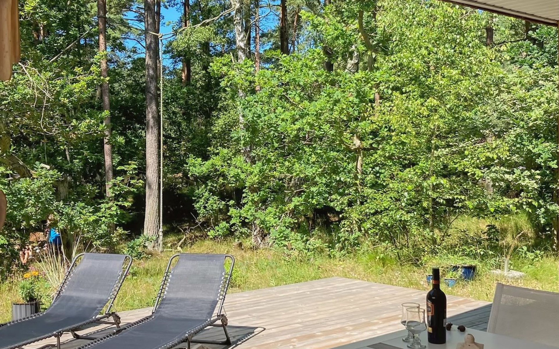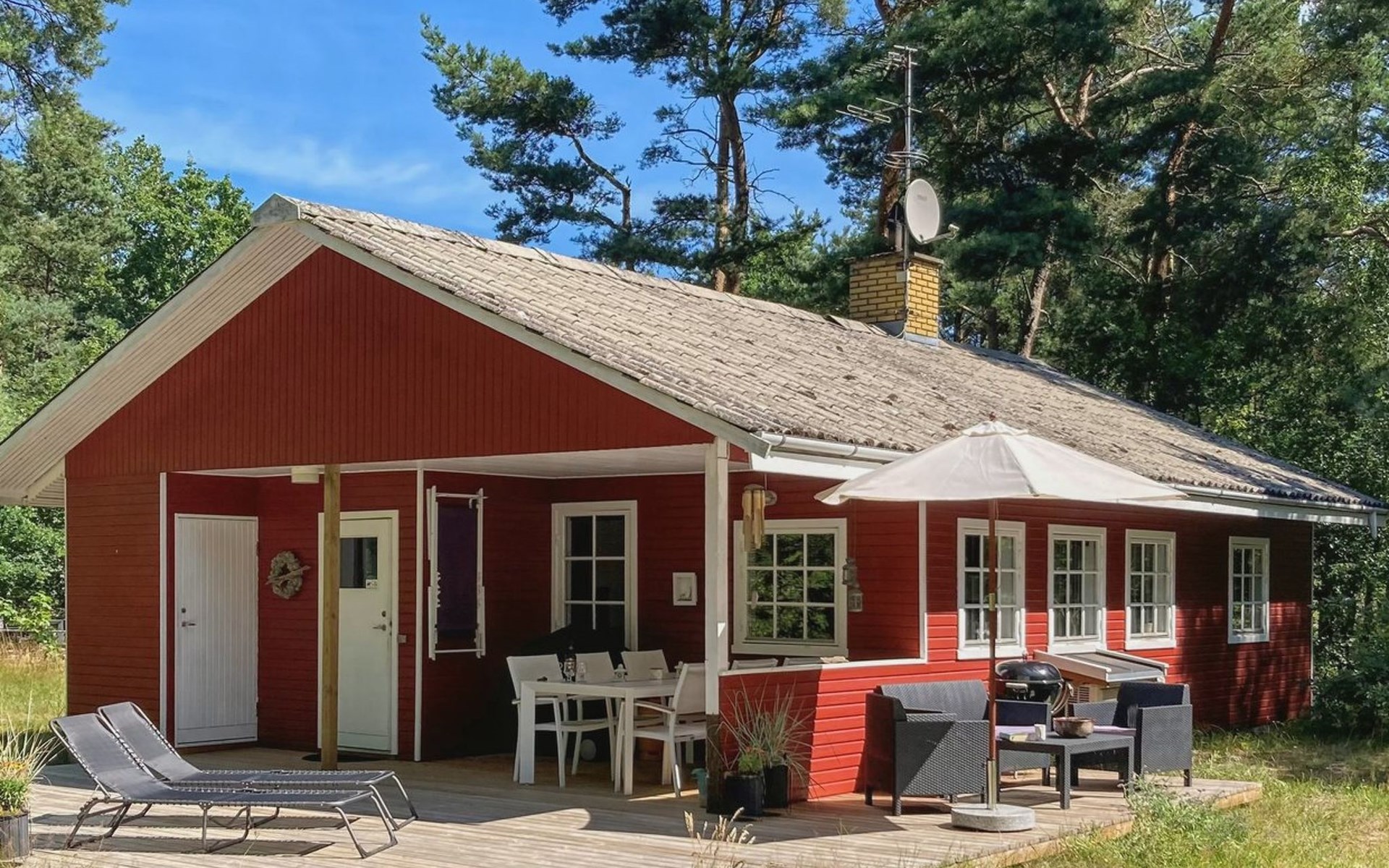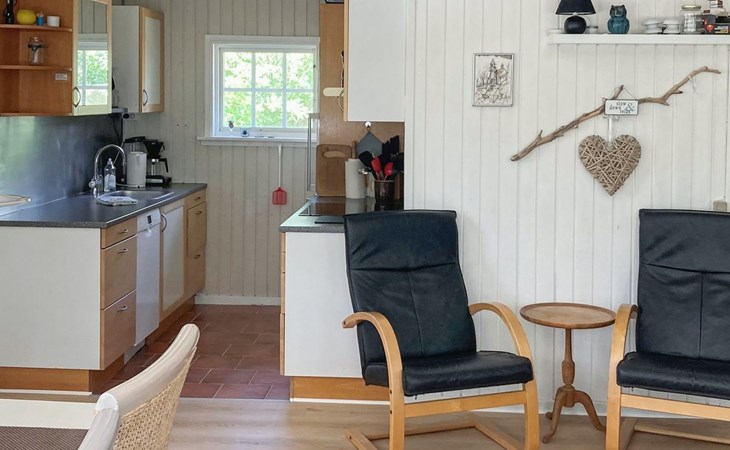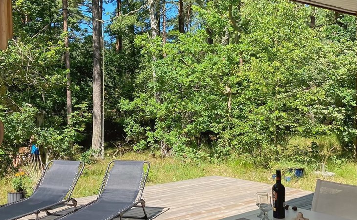 Eengezinswoning, bouwjaar 1976. 800 m van zee. Voor alleengebruik: wild terrein 2.550 m2. Terras (20 m2), kinderspeelplaats (schommel). In het huis: wasmachine. Parkeerplaats bij het huis. Carport. Levensmiddelenwinkel 3 km. Golfterrein 6 km. De eigenaar accepteert geen jeugdgroepen.
