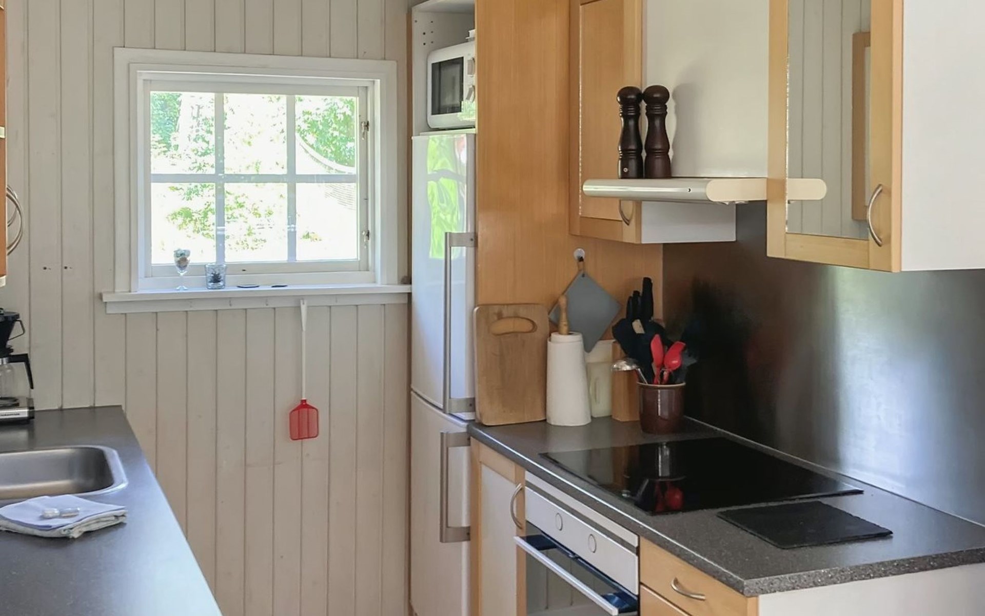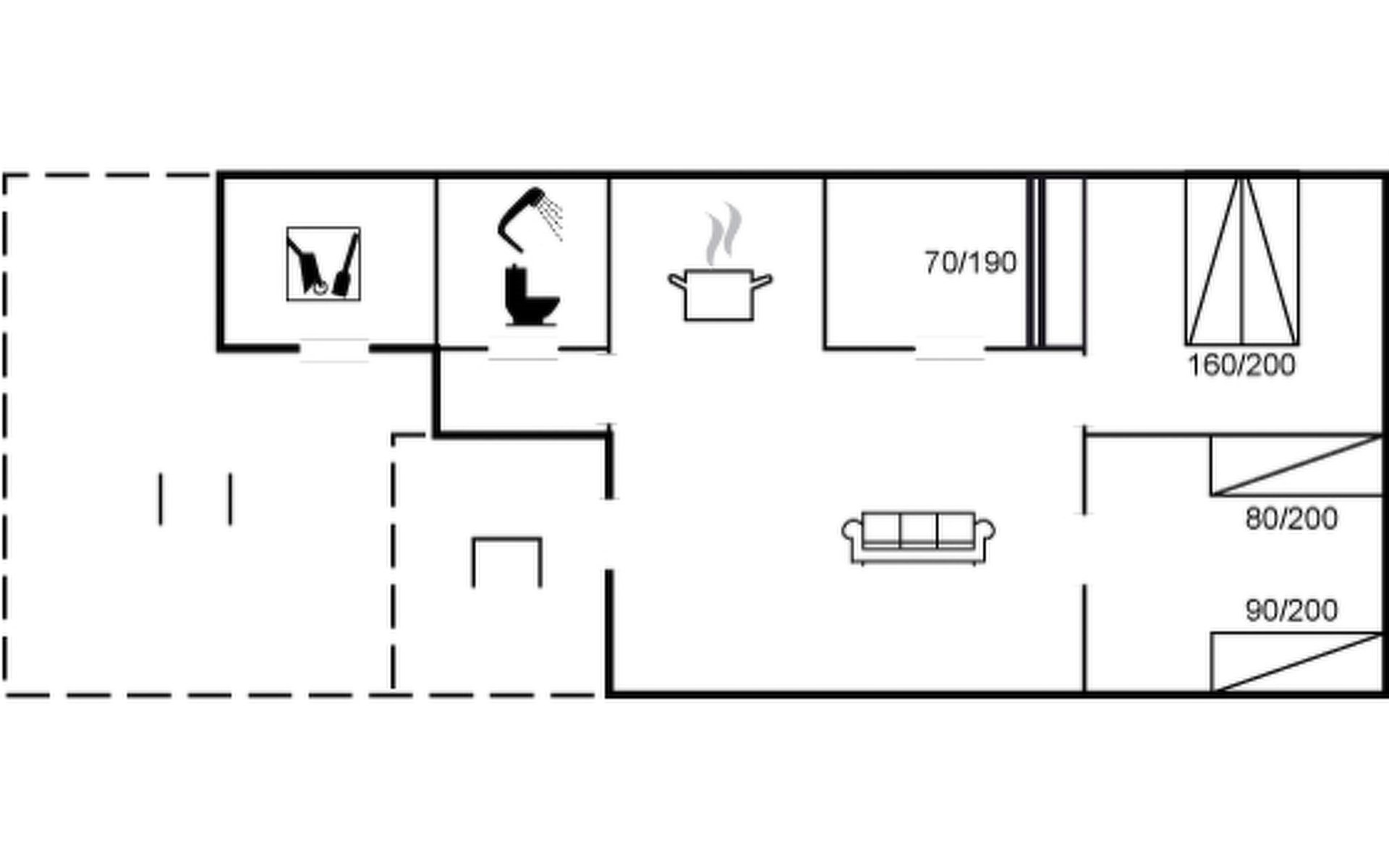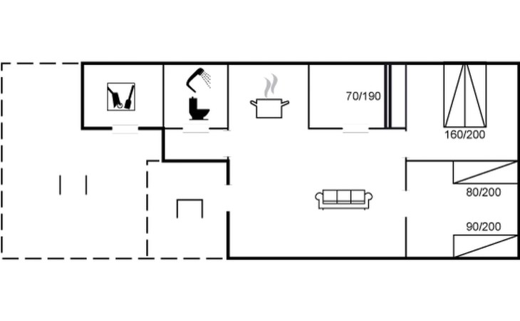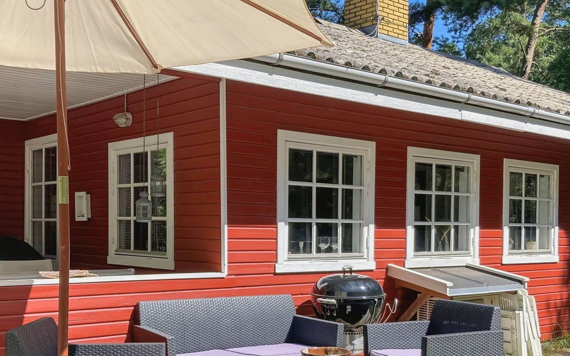 Eengezinswoning, bouwjaar 1976. 800 m van zee. Voor alleengebruik: wild terrein 2.550 m2. Terras (20 m2), kinderspeelplaats (schommel). In het huis: wasmachine. Parkeerplaats bij het huis. Carport. Levensmiddelenwinkel 3 km. Golfterrein 6 km. De eigenaar accepteert geen jeugdgroepen.