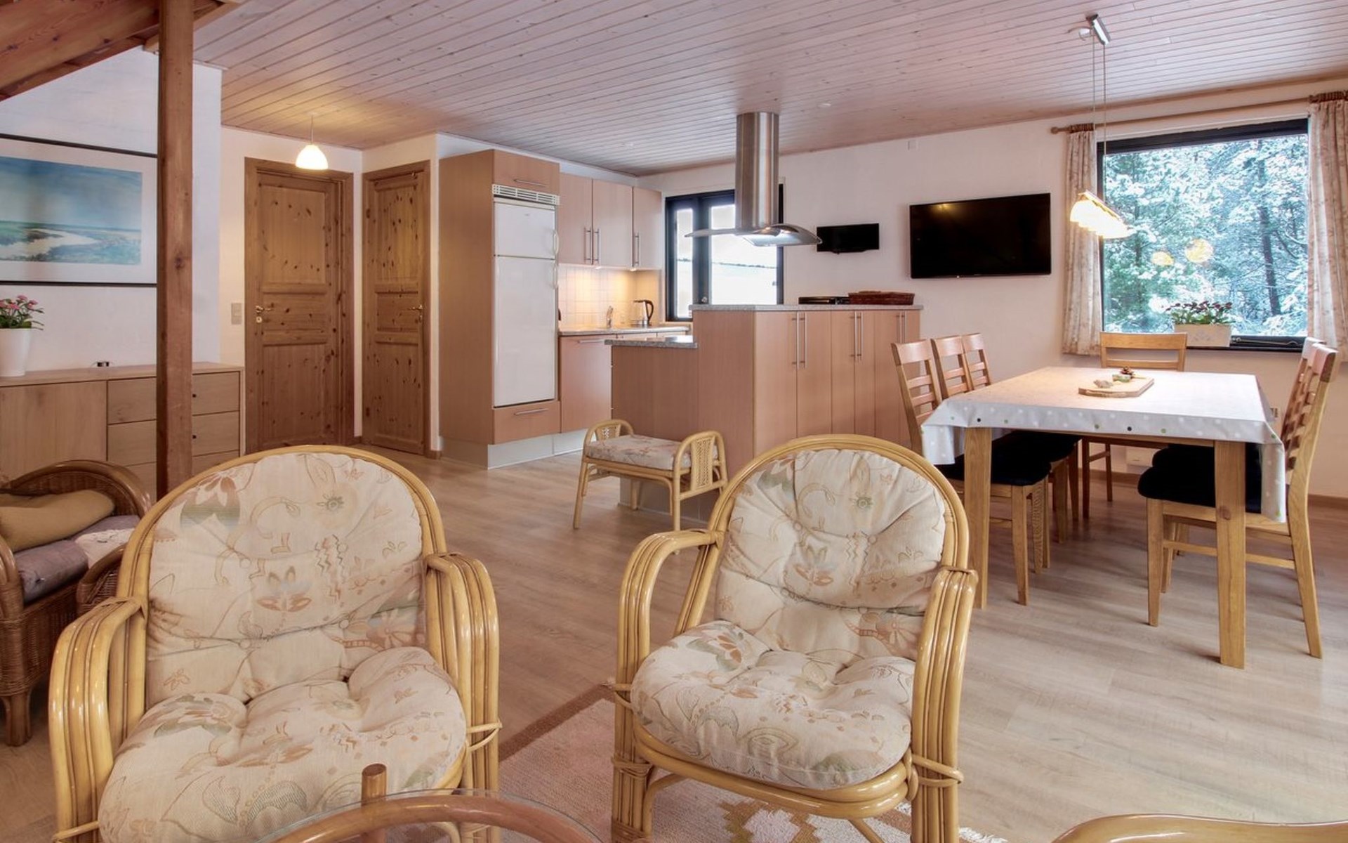 Eengezinswoning, bouwjaar 1969. 2.5 km van zee. Voor alleengebruik: wild terrein 2.285 m2. Barbecue, kinderspeelplaats (glijbaan, schommel). In het huis: sauna, trampoline, wasmachine, droger. Parkeerplaats bij het huis. Oplaadstation. Levensmiddelenwinkel 2 km. Golfterrein 7 km. De eigenaar accepteert geen jeugdgroepen.