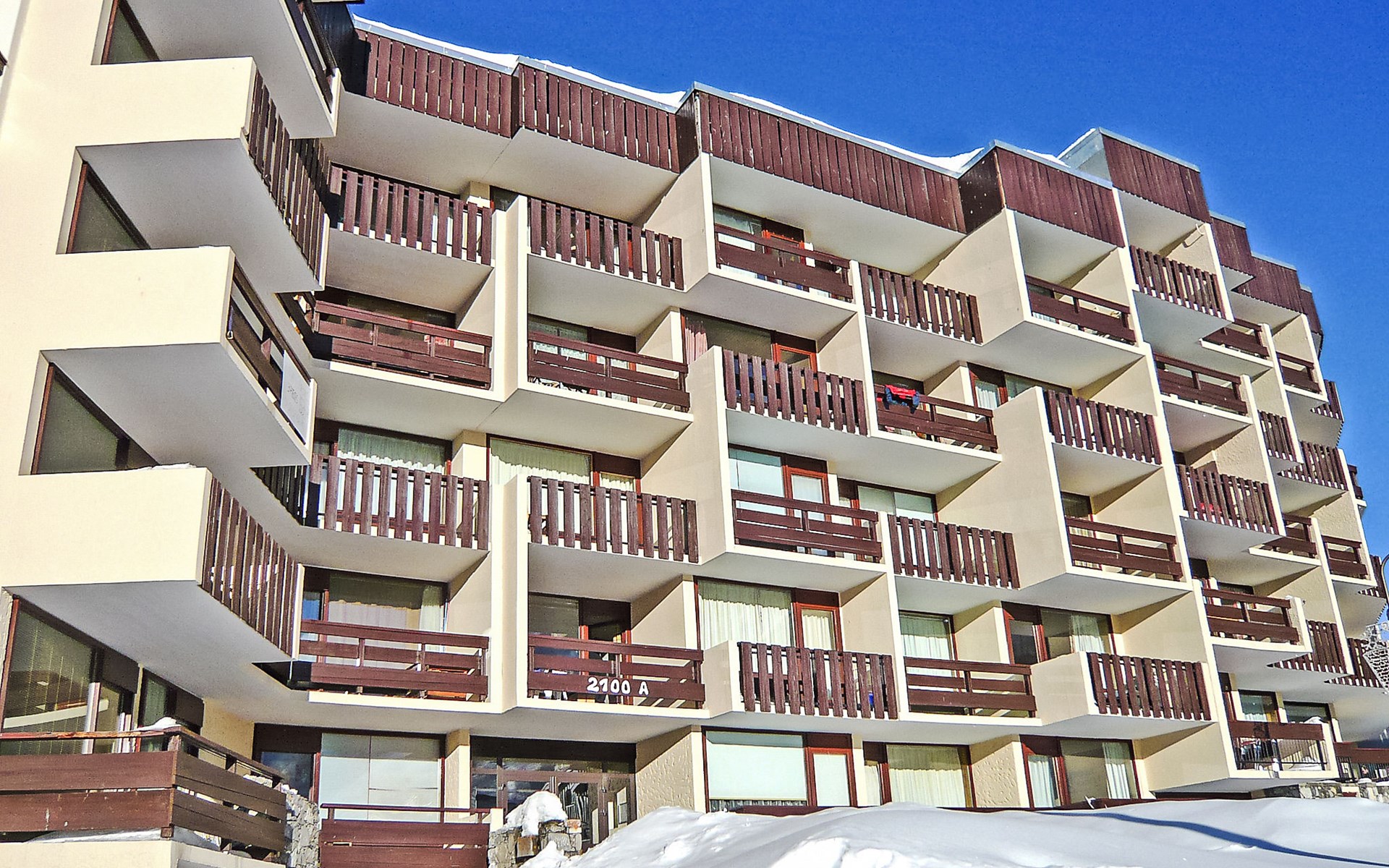 Tignes Lavachet: Flatgebouw "Le 2100 A et B (Lavachet)". Rustige ligging in een woonwijk, 150 m van het skigebied. In het huis: lift, berging voor ski's, centrale verwarming. Winkel, supermarkt, restaurant, bakkerij 100 m, centrum te voet bereikbaar in 5 minuten, bushalte 100 m. Ski faciliteiten 200 m. Bekende skigebieden kunnen gemakkelijk worden bereikt: TIGNES VAL D'ISERE 200 m. De sleuteloverdracht vindt plaats bij het agentschap Interhome in Tignes le Lac. Vergelijkbare accommodaties kunnen worden geboekt.